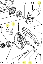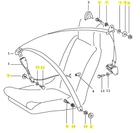 1. Lock Cylinders (ignition, front trunk release, glove box, rear trunk). I'm just interested in scavenging the individual plates inside to rekey other locks. 2. Odometer Reset Cable - Comes out of the back of the speedo, and connects under the dash. 3. Brake Lines - If you can pull original brake lines out without bending them, they're handy for when I have a car in and one of the ends strips out (happens too often). 4. Headlight Pivots/'Washers' - The actual pivots and the 'plate' that the bolts go through. 5. Third Seat Belt Plugs - Early cars had the bolt holes for a center third seat belt and shipped with large black plastic screw in plugs. 6. Brake Fluid Feed Line Grommets - Under the tank, the two grommets from the reservoir to the M/C. 7. OE Door Mount Bolts - Original bolts have a pointed tip. These are always handy for a restoration. 8. Plastic Plugs - The holes in the transmission mount bar as well as the suspension bolt holes in the front trunk shipped with white plastic plugs in them. If you're not familiar with these, I'll send a picture with arrows. There are three on top and two on the bottom, plus two in the front trunk, IIRC. 9. Seat Belt Bolts - Bolts, washers, plastic rings. I like having spares of these. Image Numbers: 5, 6, 7, 8, 9, 12, 13, 14 10. Seat Rail Washer/Plate - The bolts that hold the seat rails to the floor had a plate with two holes in it. 11. Underheadlight Plastic Edging - The brace under the headlight bucket (two large holes) had a plastic strip to protect the wiring from getting cut. 12. Bumper Hole Plugs - Behind the front bumper, the plastic plugs. 13. Center Tunnel Covers - The two small plates that cover the access holes in the center tunnel. 14. Heater Tube Grommets - The rubber rings that seal around the heater tubes as they pass from the passenger compartment into the front trunk area. 15. Headlight Motor Knobs - If you're tossing the headlight motors, I'll take any top knobs that are there. 16. Hell Hole Drains - Black plastic drains in the engine shelf on either side. (white arrow) 17. Oil Line Hole Plug - White plastic plug for the hole used in six cylinder cars. (blue arrow)