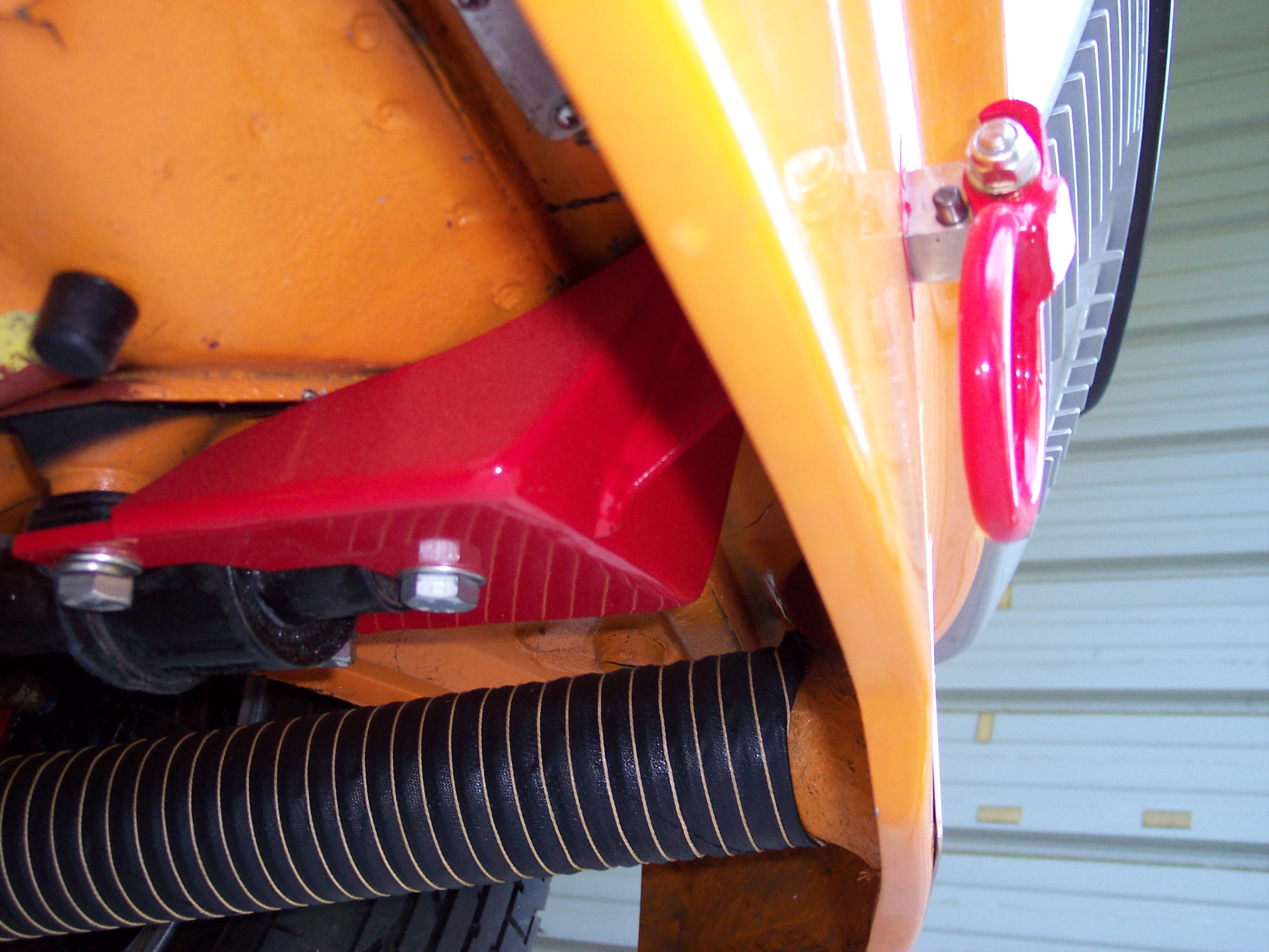 A while back,I posteed pics of my towhooks,and a lot of people chided me about them being what I would describe as eye candy and not really functional. Well,I had the front end of my car in the air working on the fuel pump and decided to pop off a couple of pics of the mounting brackets. I've done lift tests on this car with these brackets,and I ain't skeered when it comes to using these hooks. Ron Attached thumbnail(s)
