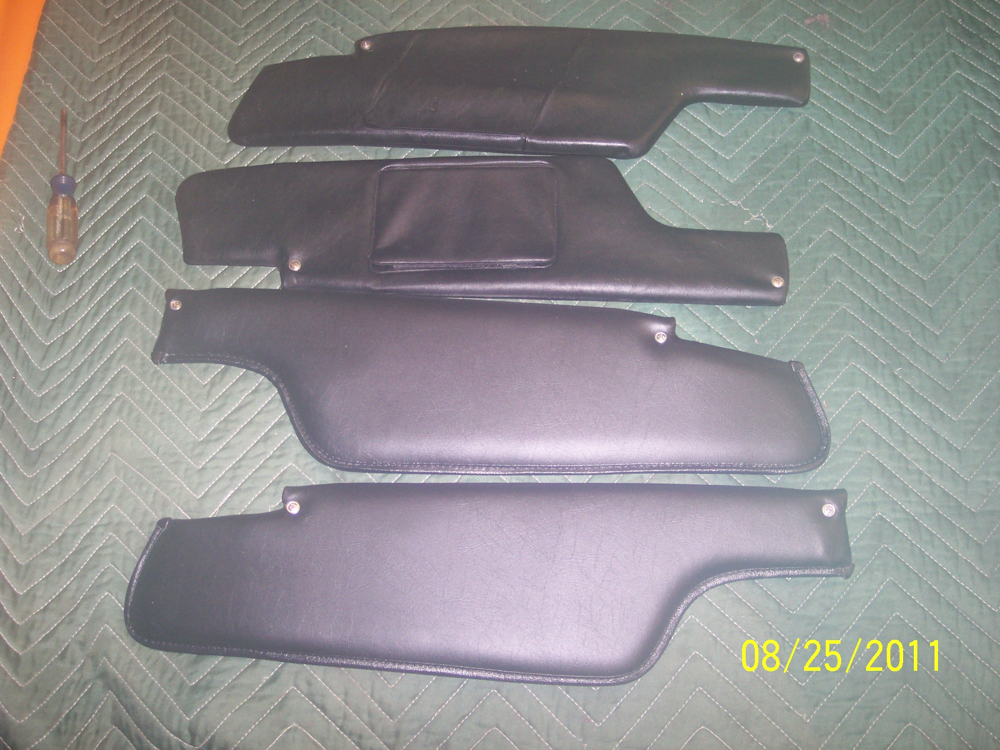 I took my original visors off and sent them up to Vinyl Specialties in NY. Now granted they are not original looking in appearance, but they do look muchhh muchhhh better than what they looked like before I sent them. I did send them some original style vinyl to recover, but in the end, the cost only came to $70.00 including the shipping. Not bad, They did a good job considering our visors were originally heat sealed from the factory. I'm satisfied, and I thought I'd share the results of their work with anyone looking at their own visors and are wondering what they can do to improve the look. Ron Attached thumbnail(s) Entries on Sunday 12th June 2011