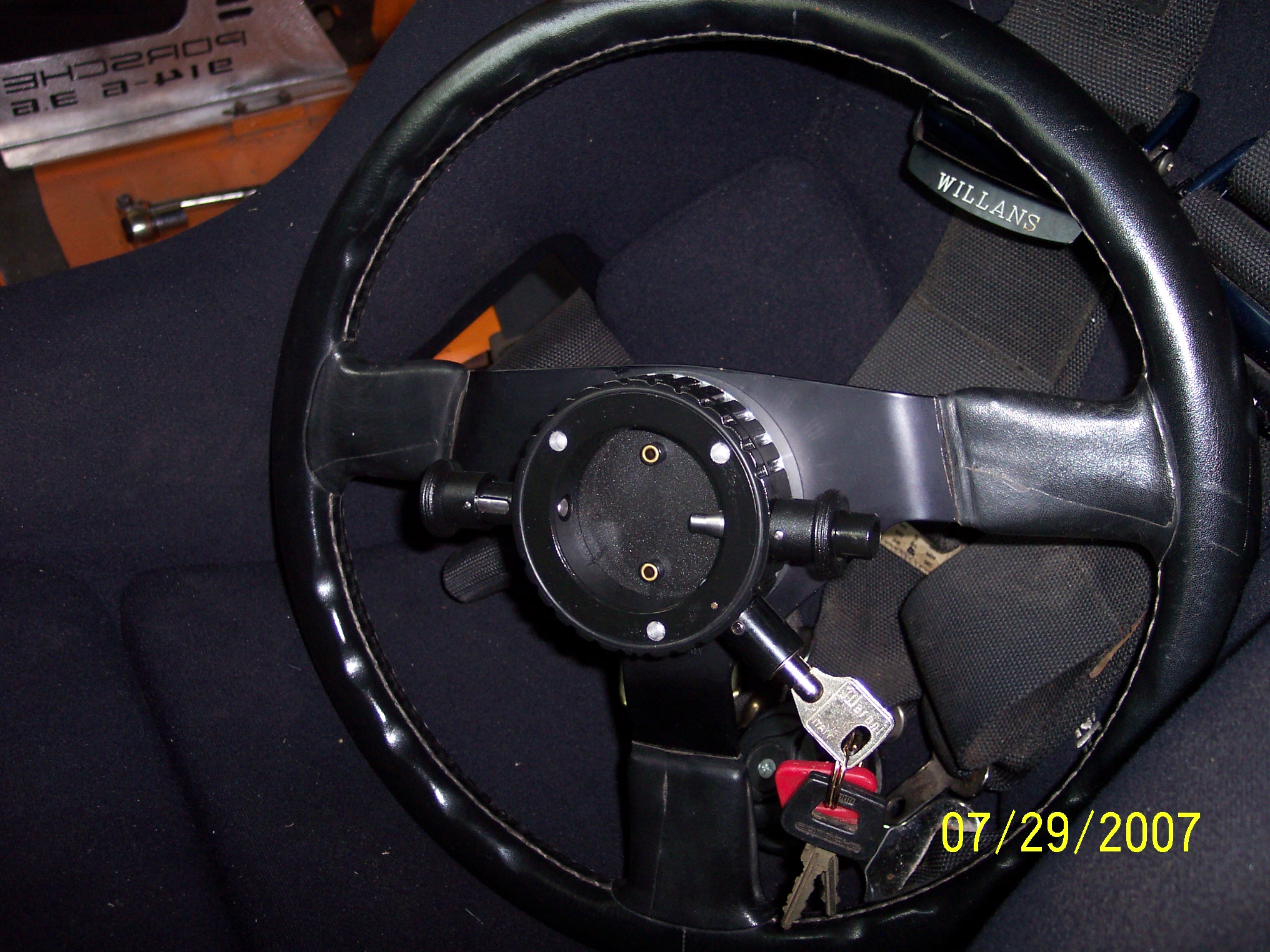 I bought this quick disconnect hub kit last week from a place called Tekniq outa Canada. I wanted one so as to make it easier to climb into and outa the Sparco seat on the drivers side. Easy install,horn still works. It comes with a lock. The whole thing was less than 200.00 The kit comes pre-setup for Nardi-Personal wheel patterns,and since I already had a Personal wheel on the car,I didn't need any adapter. The kit only adds about 3/4''of spacing to the steering wheel. Pretty cool. Ron Attached thumbnail(s) |