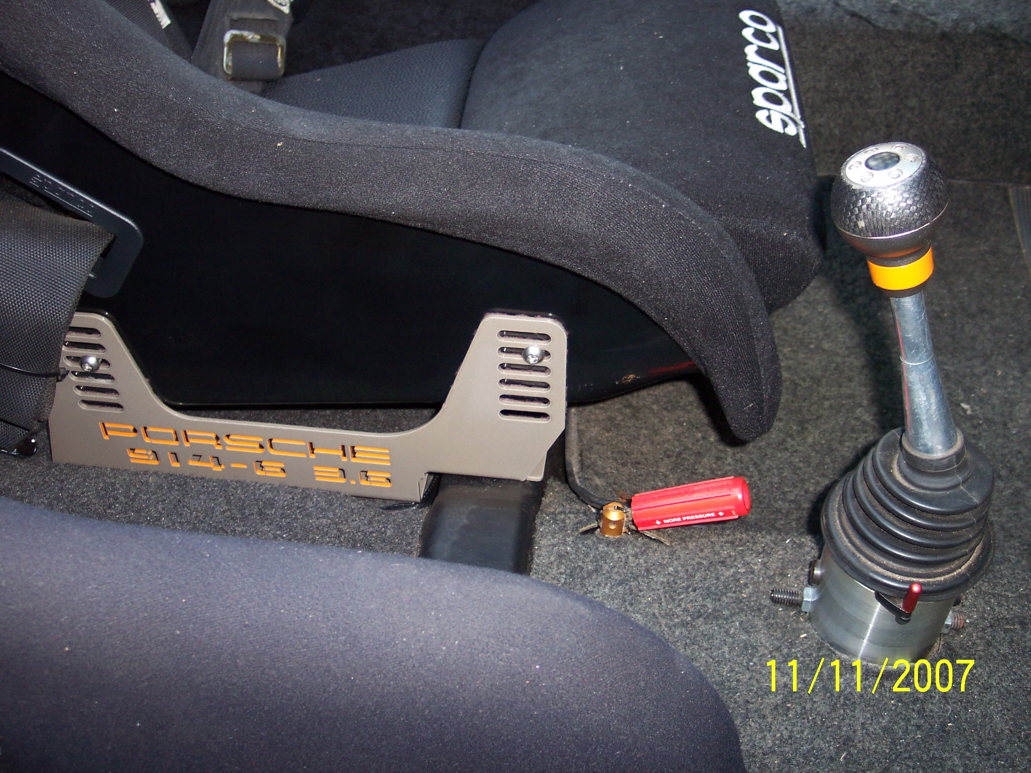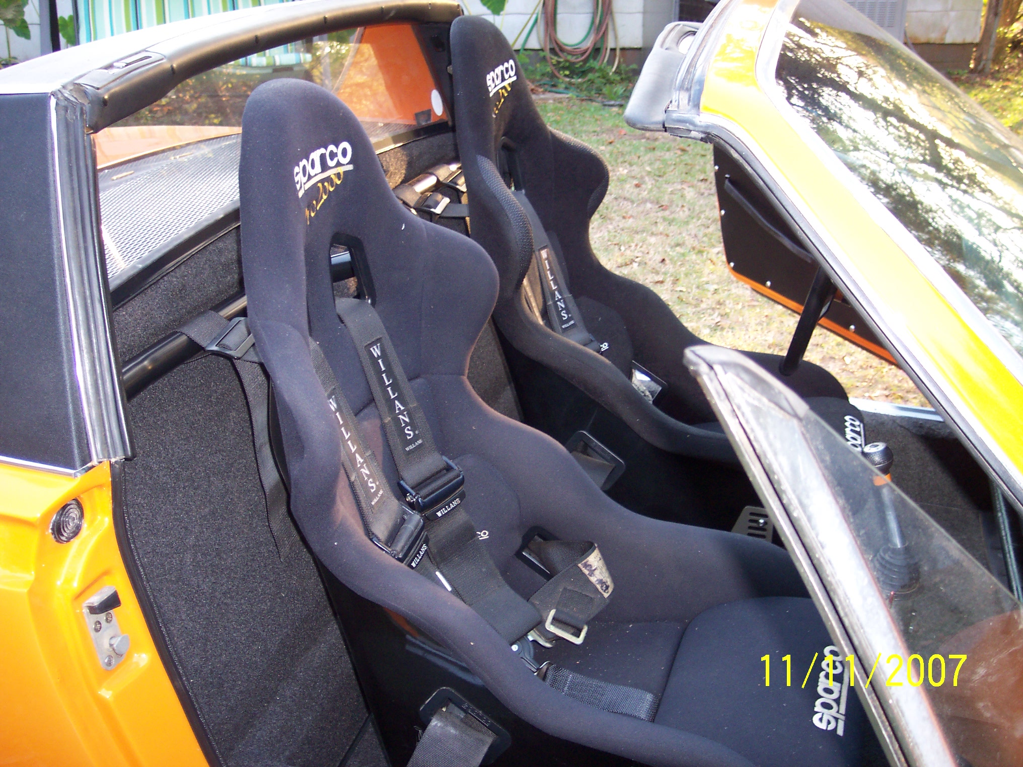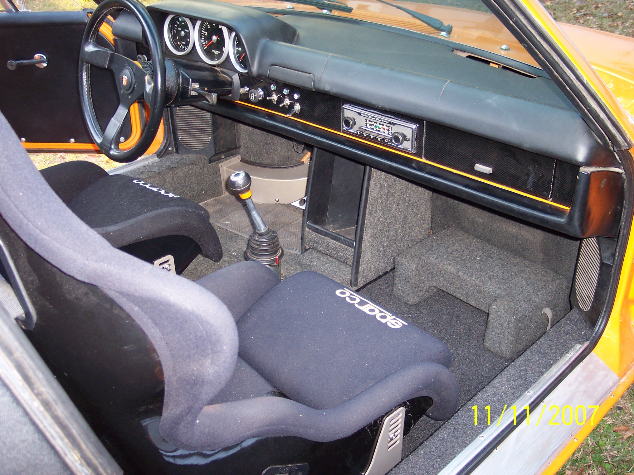 I haven't posted in a while,but I have still have been working on the teener. Latest mods have been to add a pair of Sparco Pro 2000 seats. I added an access hole to the engine fan belt.I removed the back pad and lined the firewall in German perlon. I made my own custom seat brackets,had them powder coated in Titanium color,and then high lighted the lettering cutouts in signal orange. I also painted a few interior pieces signal orange to give the interior some contrast.Specifically the lower dash trim. Ron biggrin.gif Attached thumbnail(s) Entries on Monday 10th September 2007