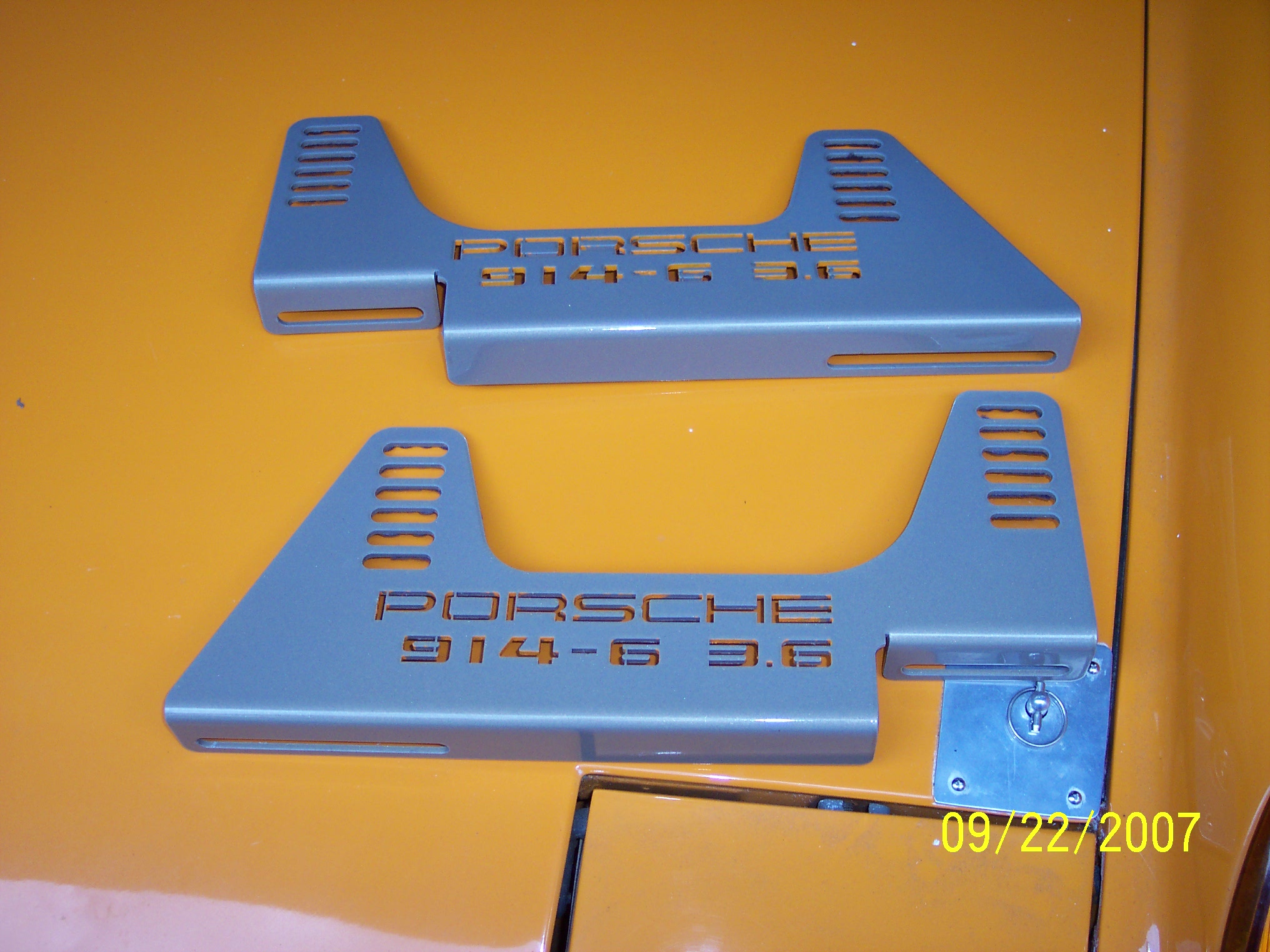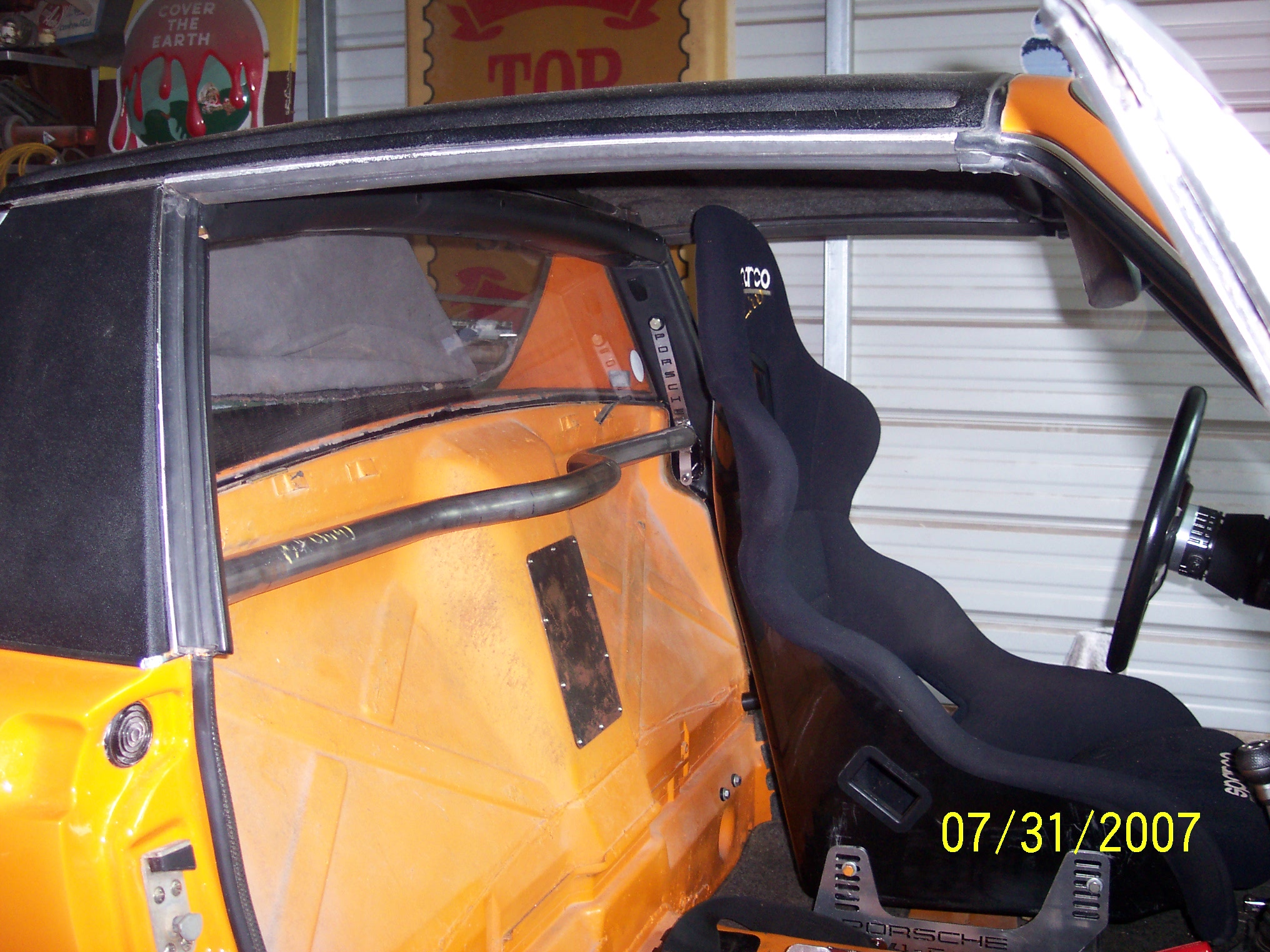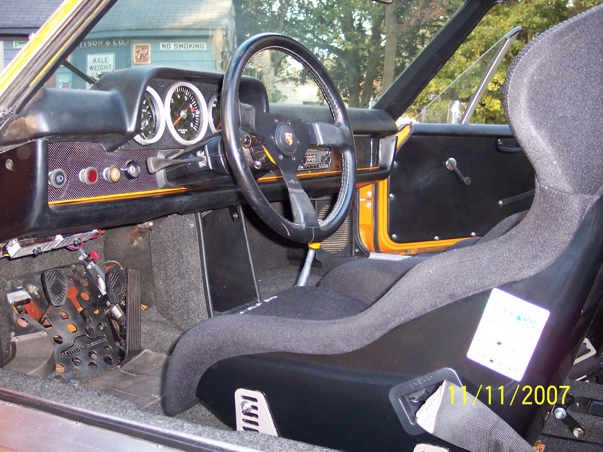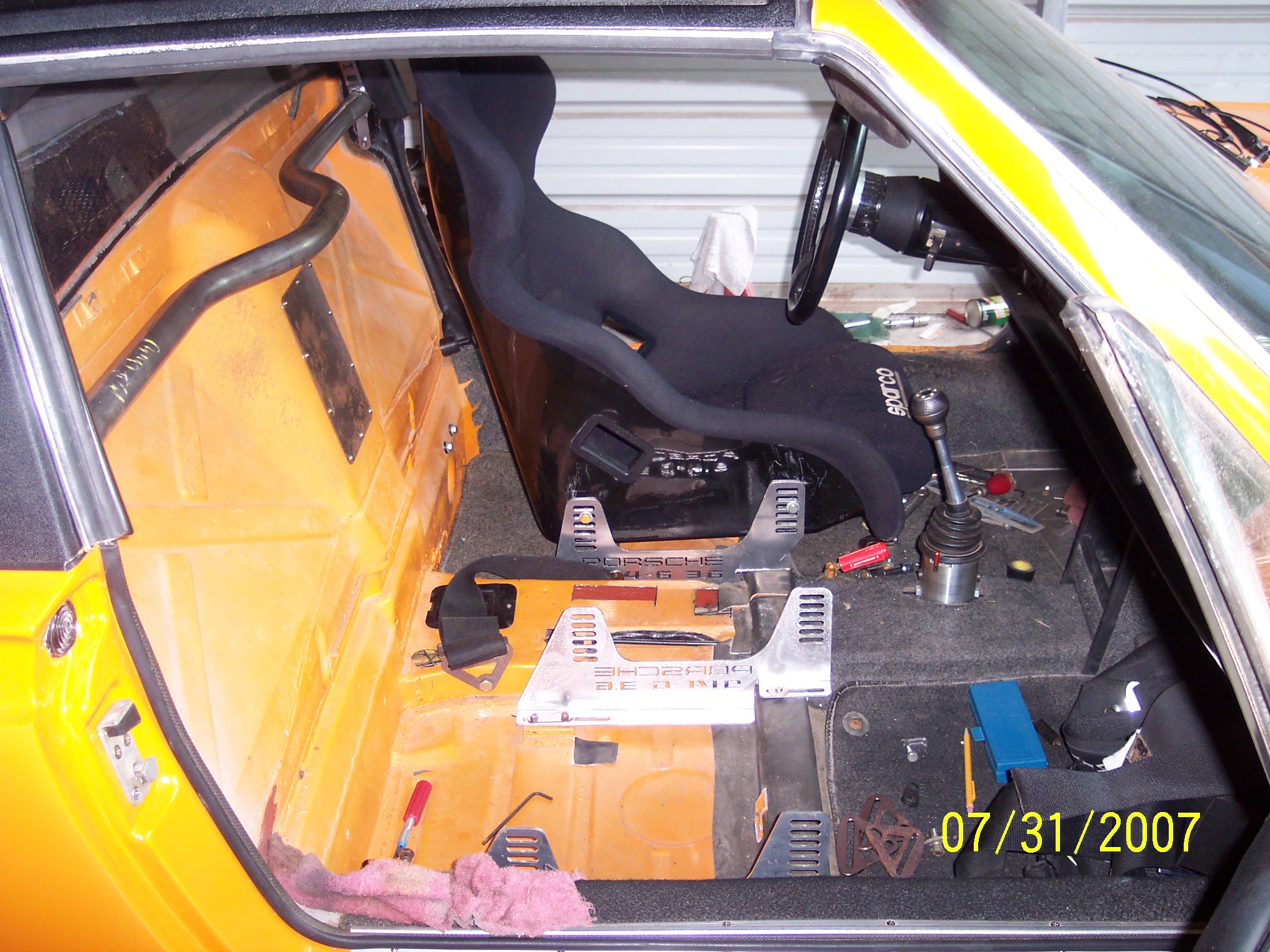 I haven't posted in a while,but I have still have been working on the teener. Latest mods have been to add a pair of Sparco Pro 2000 seats. I added an access hole to the engine fan belt.I removed the back pad and lined the firewall in German perlon. I made my own custom seat brackets,had them powder coated in Titanium color,and then high lighted the lettering cutouts in signal orange. I also painted a few interior pieces signal orange to give the interior some contrast.Specifically the lower dash trim. Ron biggrin.gif Attached thumbnail(s) Entries on Monday 10th September 2007