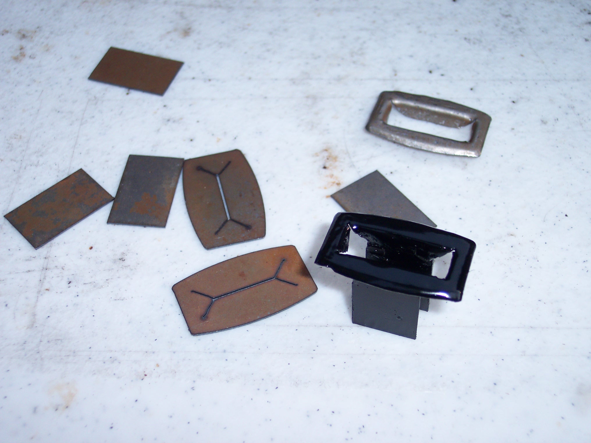 As I show in the previuos blog,I fab'd up my own set of bezels from the pics on AJ's site. These 3 pics show the blank,blank formed,and the additional mat'l that needs to be added to the tabs. Everything is pretty straight forward until the extra mat'l needs to be added. So far,there's no room to spot weld.I tried tig'n,metal is so thin it burns thru,lastly,I mig'd ea part in 2 or 3 spots to secure them.That is what I did on mine. Last shot shows the finised bezel with a heavy coat of semi-gloss black.It hides a lotta sins. Ron Attached thumbnail(s) |