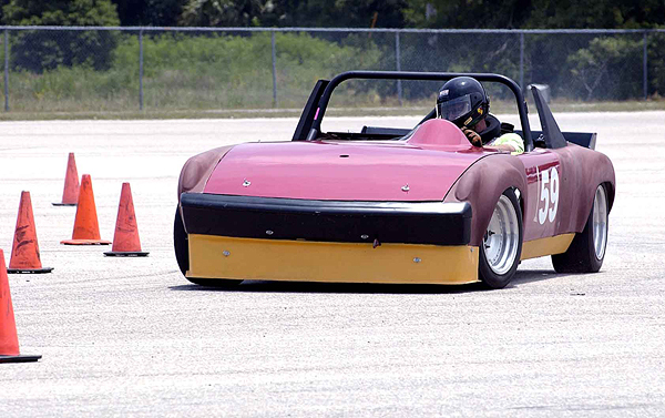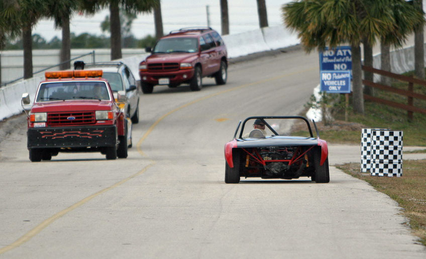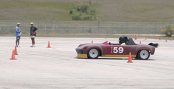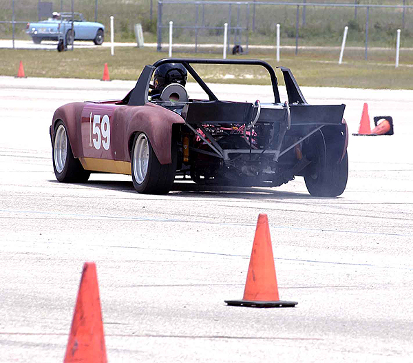 Ran an Autocross today. First run: Clutch slipping like crazy. Only needed adjustment. Second run: Damn thing wouldn't start. The little battery wouldn't turn my new engine over, too much compression. Gotta change back to the other battery. So some guys push started me. Clutch better but still some slipping. Clean run no cones. Third run: Clutch is really hooking up and I was flying. Than at about the 3/4 mark, the gas pedal goes to the floor and the engine dies. I check it out and the bracket at the cable and the gas pedal has bent and the ball/socket has come off. I don't have a "stop" behind my gas pedal and when I pushed the pedal too far it bent the bracket. So I need to fab a bracket for a gas pedal stop. If I had the stock floor board that goes behind the pedal, it wouldn't have happened. I'll make it so the stop is a bolt that can be adjusted in or out so the pedal stops when the carb linkage is fully open. BTW, my second run with the slipping clutch was good enough for the 3rd overall quickest time.