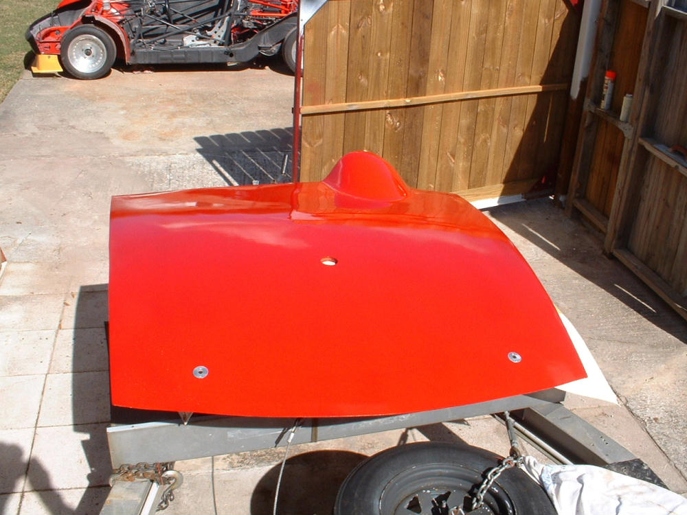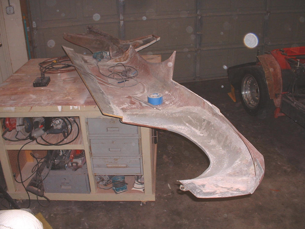 I'm progressing on getting it ready to paint and one item that I need to finish is the "tonneau cover" over the passenger seat area. I decided to add these two NACA ducts that I have been carrying around with me for 15 years. They are fiberglass and will mold in to the cover real easy. I don't know if they will really do anything but they may suck some air down into the engine. I'll tape some 3" hoses to them and stick the discharge end into the cooling fan.