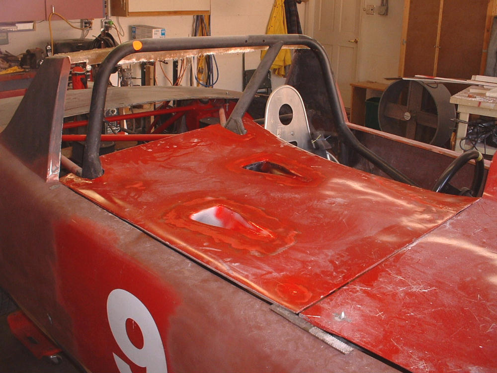 I have to change the cover because I changed the roll bar supports. I used to have a big bar going to the top of the main hoop but that was changed and lowered to the center. This required the cover to be changed. It now can be molded to match the left side radius and I'm adding a 3/8" edge flange for strength. I'm kinda going for the 908-3 look. Attached thumbnail(s)