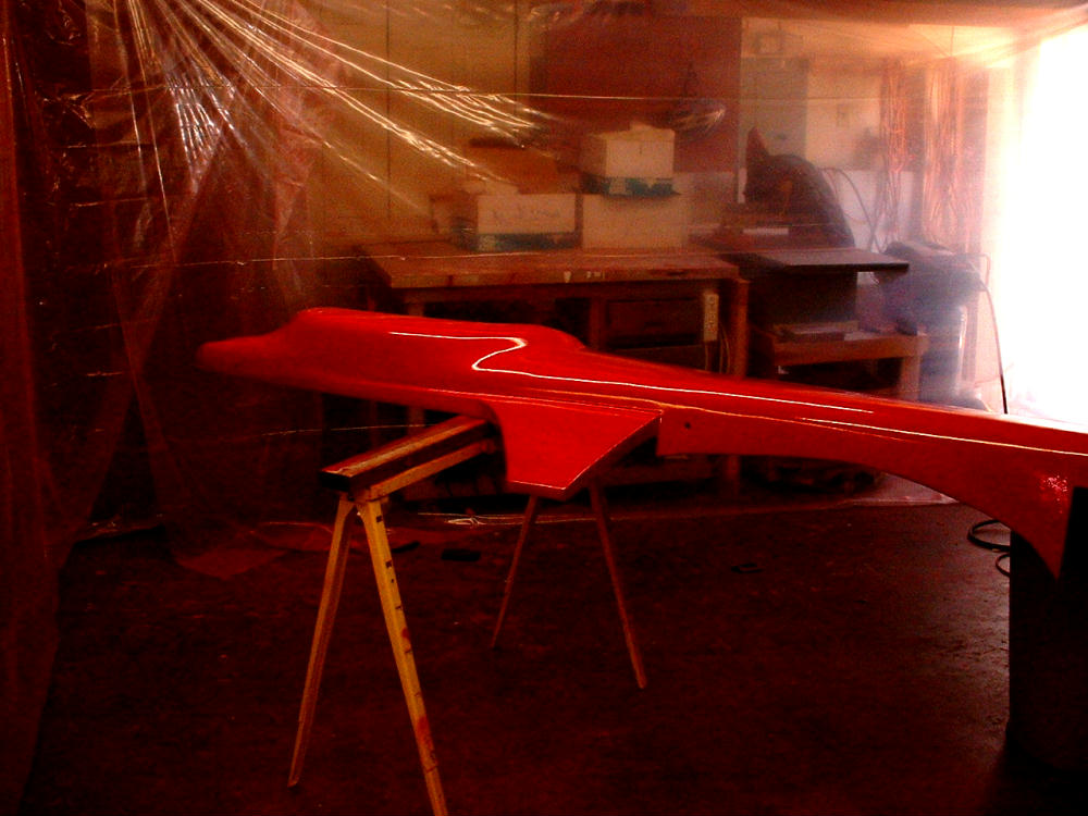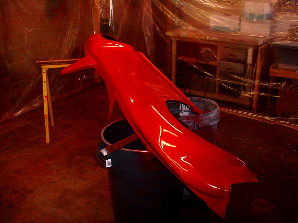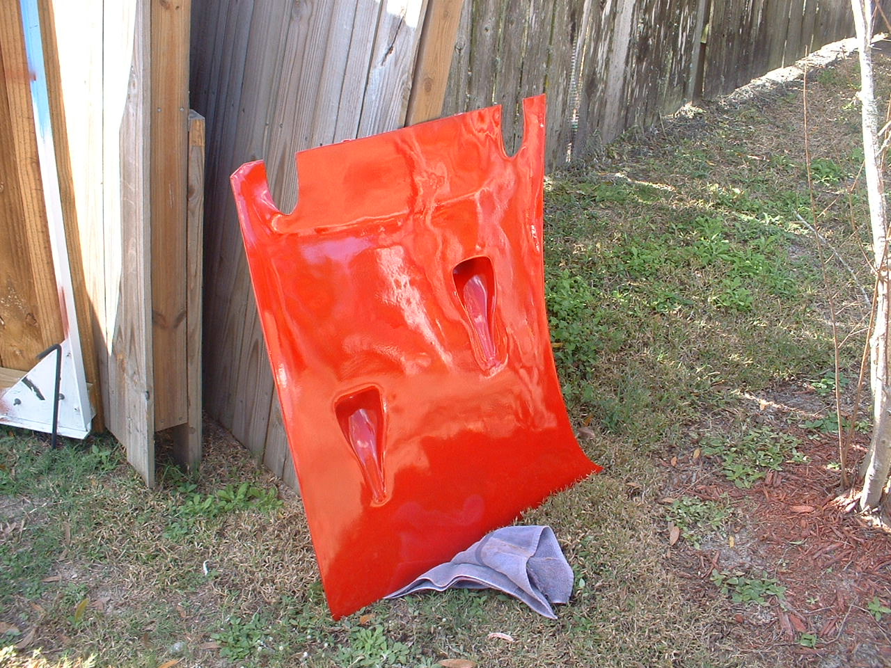 Super Bowl Sunday...PAINT! PAINT! PAINT! Last night I painted the front hood, the tonnaeu cover and both one-piece sides. Results: from best to worst... Tonnaeu cover: Paint is thin but no orange peel, I'll keep it. Front hood: Orange peel, but only a few thin spots. I'll keep it as is. Left side: a few sags and orange peel, but no thin spots. Repaint it. Right side: OMG! Did I do this with my eyes shut? Sigs all over, thin spots where you can see the primer and orange peel llike 30 grit samd paper. Complete sand and repaint required. I reshot the left side this morning. Much better job. But I'll have to spend a few nights working on the right side before being able to reshoot it. Attached thumbnail(s)