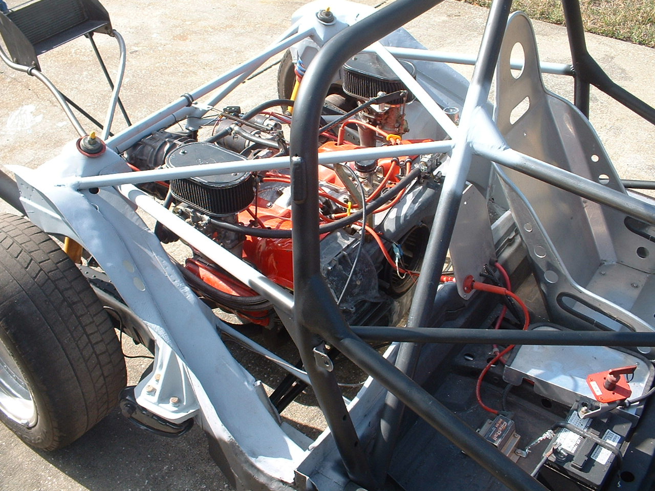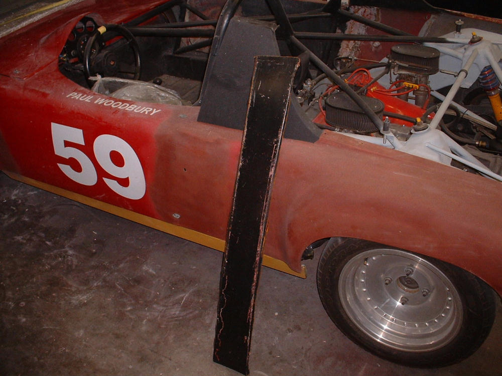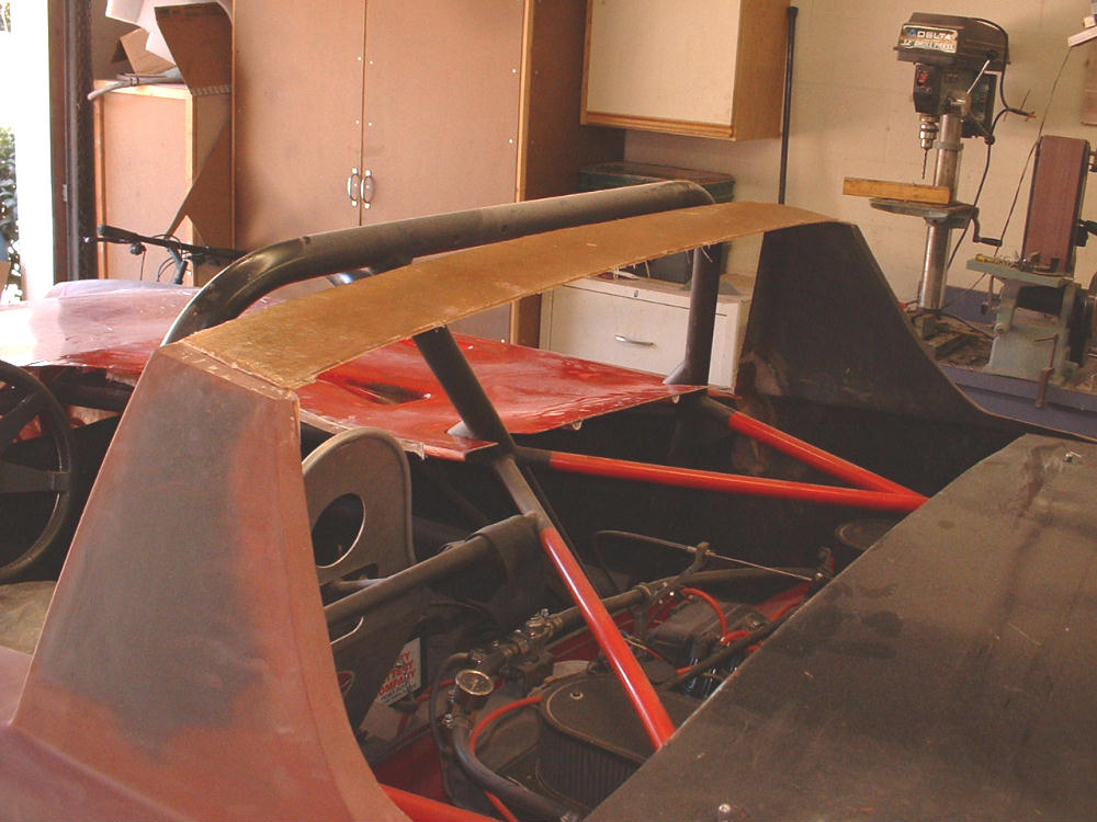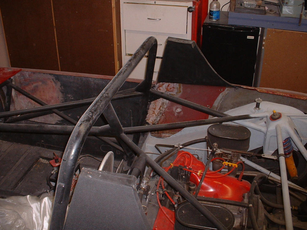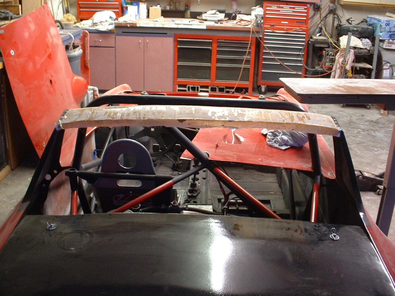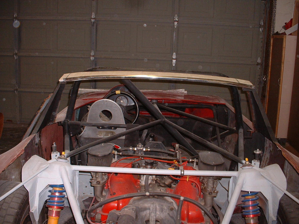 I need to: Next thing to do: 1. Complete the wing. 2. 3. 4. 5. Future: 1. 2. Cut some holes in the front wheel wells. (no hurry) 3. Clean up the underside. (no hurry) 4. Mallory Dizzy 5. Rebuild the Konis 6. RennShift! 7. Done: Pull the engine and weld in the 3/4" tube to the inner ear to the firewall. (DONE) Complete the installation of the shoulder belt bar than install the belts. (DONE) Grind/cut off the old tabs on the upper roll bar where it connected to the targa bar. (DONE) Install a reduction gear starter and save 7-10 pounds! (DONE) Grind/clean up the welds on the bars. (DONE) Patch over the drivers side jack hole. (DONE) Rework the tonneu cover to fit the new bar layout. (DONE) Weld in the main hoop at the floor and remove the bolts. (One side DONE) Attach a bracket to the back of the seat for support. (DONE) Move the sub belt to under the seat. (DONE) Make the body panels fit. (DONE) Remove the dust covers from the front struts. (DONE) PAINT! (Done) Need to mount slicks Weld gusset to right side door bars Move the electical kill switch to the top for access Polish and paint wheels Attached thumbnail(s)