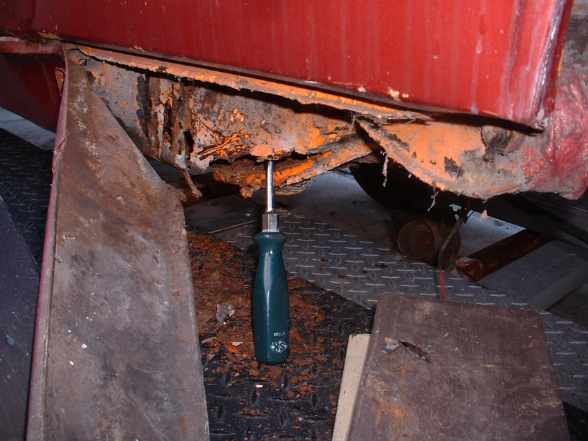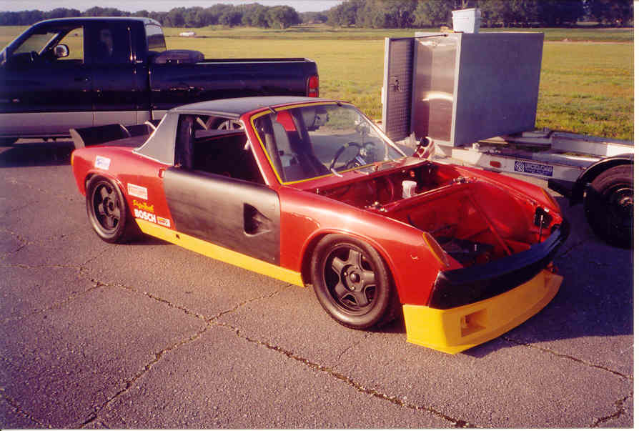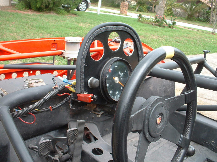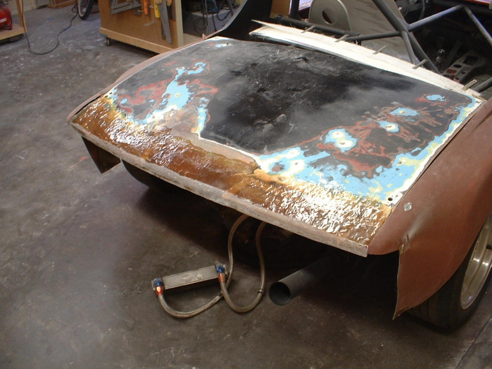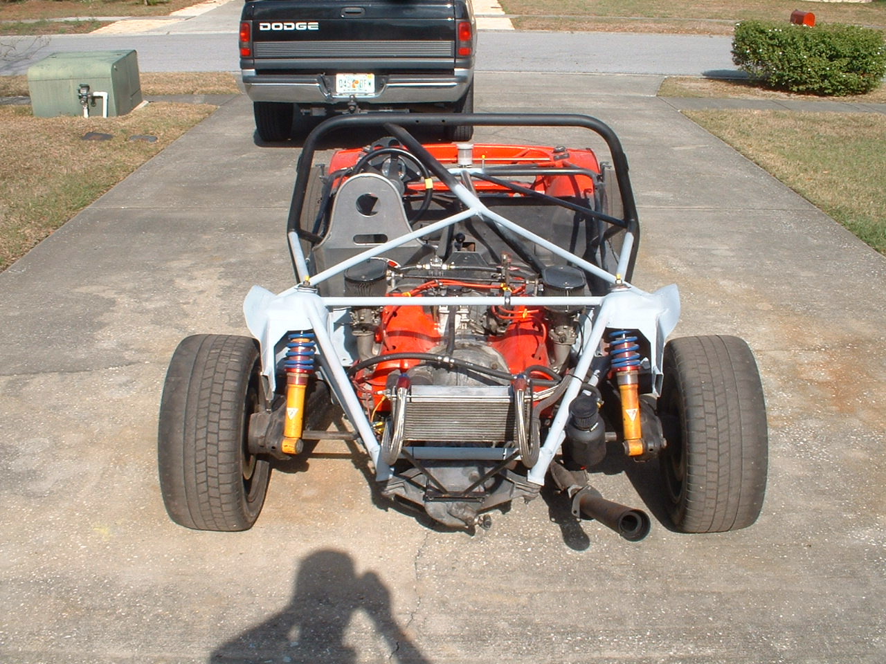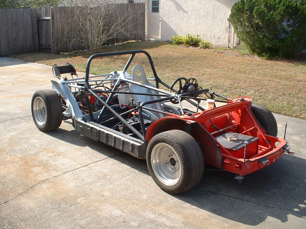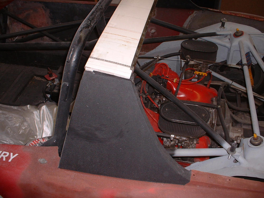 I need to: Next thing to do: 1. Complete the wing. 2. 3. 4. 5. Future: 1. 2. Cut some holes in the front wheel wells. (no hurry) 3. Clean up the underside. (no hurry) 4. Mallory Dizzy 5. Rebuild the Konis 6. RennShift! 7. Done: Pull the engine and weld in the 3/4" tube to the inner ear to the firewall. (DONE) Complete the installation of the shoulder belt bar than install the belts. (DONE) Grind/cut off the old tabs on the upper roll bar where it connected to the targa bar. (DONE) Install a reduction gear starter and save 7-10 pounds! (DONE) Grind/clean up the welds on the bars. (DONE) Patch over the drivers side jack hole. (DONE) Rework the tonneu cover to fit the new bar layout. (DONE) Weld in the main hoop at the floor and remove the bolts. (One side DONE) Attach a bracket to the back of the seat for support. (DONE) Move the sub belt to under the seat. (DONE) Make the body panels fit. (DONE) Remove the dust covers from the front struts. (DONE) PAINT! (Done) Need to mount slicks Weld gusset to right side door bars Move the electical kill switch to the top for access Polish and paint wheels Attached thumbnail(s)