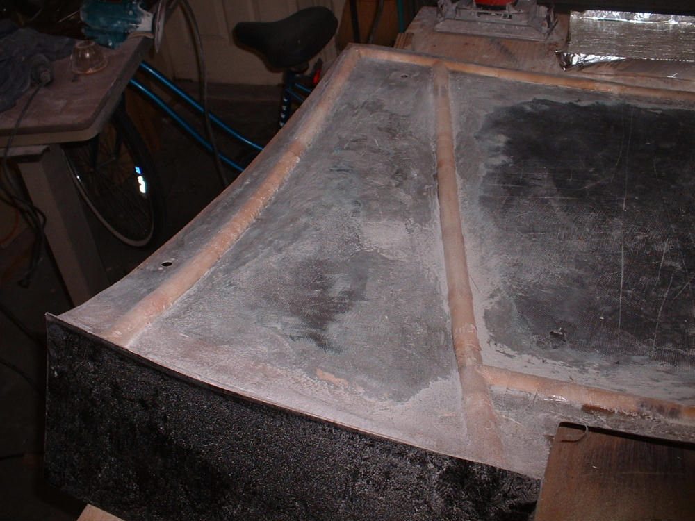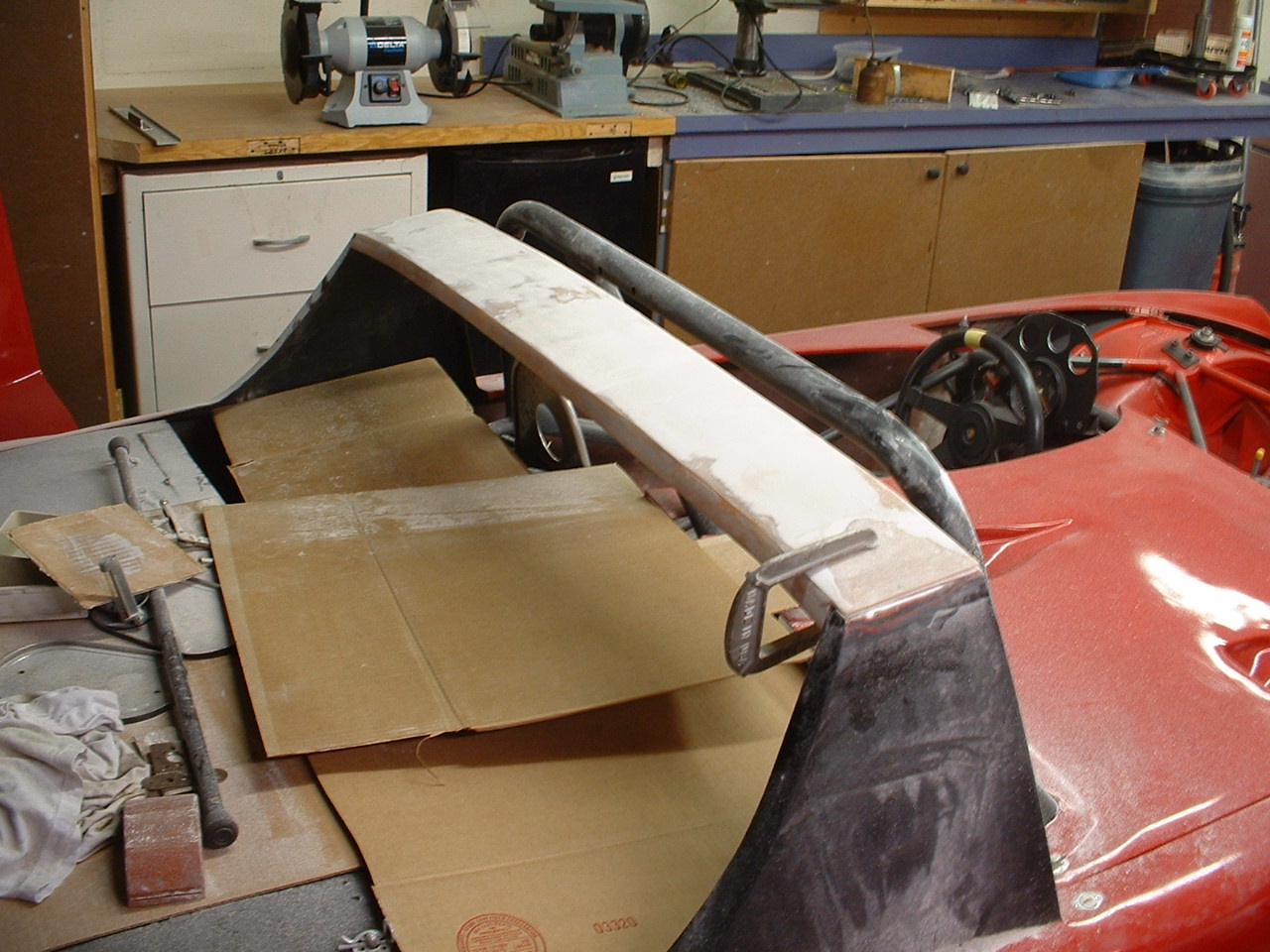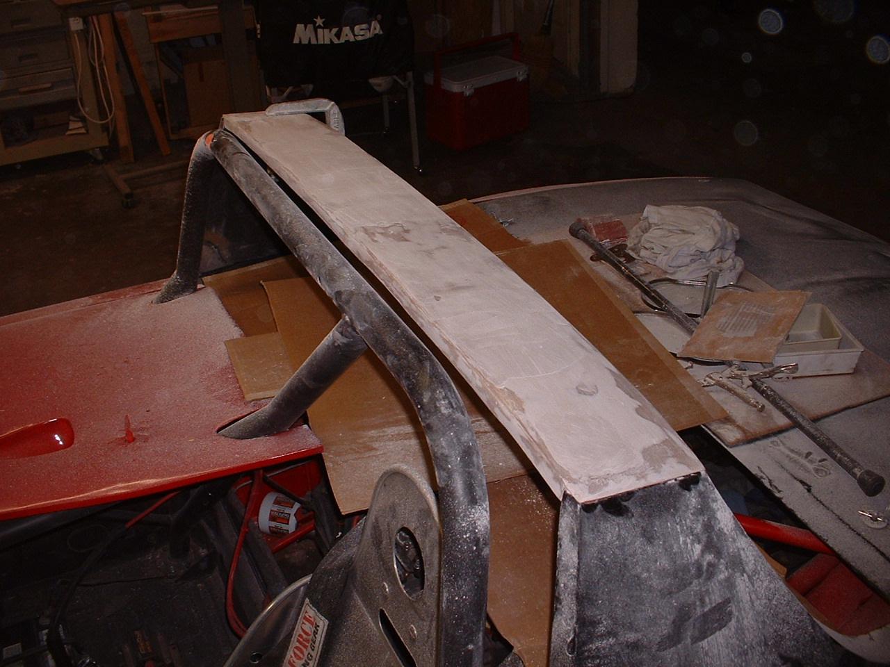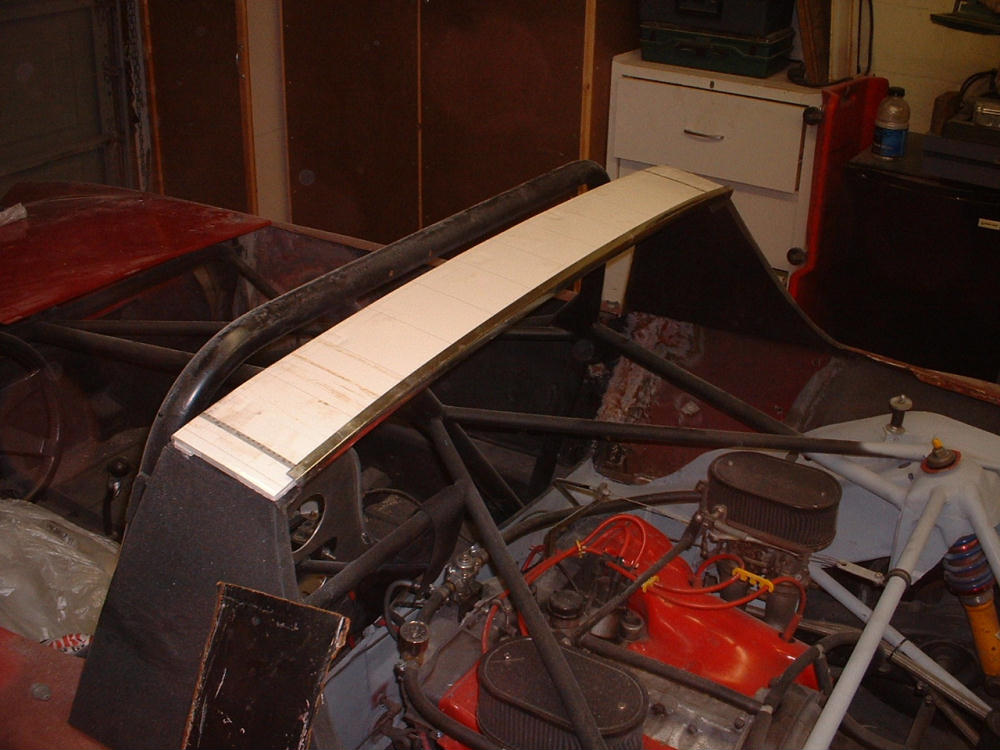 I also have to make a targa bar as the stock one just had to go. When I cut it off it bent like hell so there is no using it for a mold for a fiberglass piece. So I started thinking I also plan on mounting it on top of the existing sail panels. This will allow it to be at the same height as the roll bar. So it is not be below the roll bar but behind it and not out in the wind. Also opens up the area above the engine a little bit. Unless you really know to look for it I don't think anyone will notice. UPDATE 4-4-06: This is what it looks like now (look at the last three pictures below) BTW this is more work than I thought but isn't it always. Attached thumbnail(s)