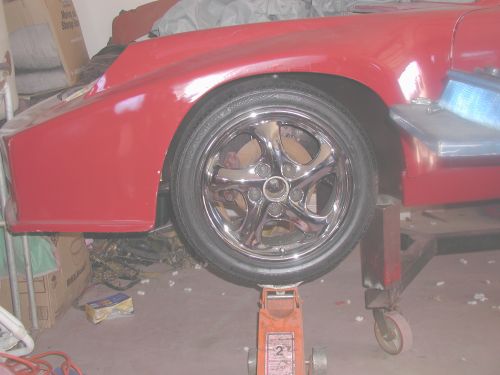 These are the wheels I plan on running. 18 X 10 rears and 17 X 8.5 fronts. The car is still on the work stand in the photo of the wheel on the car thats why it doesnt look like it fits to well. I will need about a 1.5 inch spacer in front and about 2 inches in the rear.