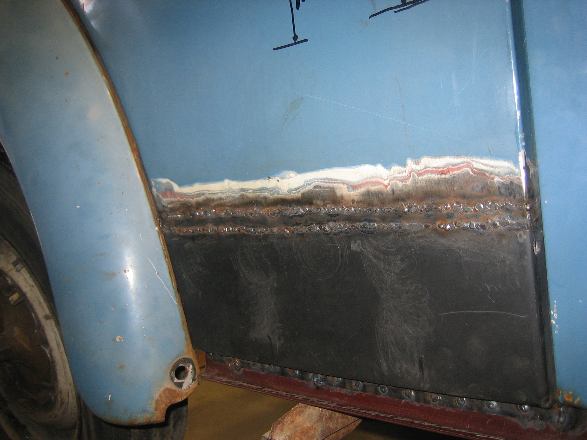 Last weekend I used the welder for the first time, that was pretty sweet I can tell ya, I was burning holes through sheetmetal like crazy This weekend I practiced some more and my the hole burning skill developed in actually bonding two pieces of metal together, it was time to switch to the beetle and start burning holes in there. Eventualy I succeeded in getting some sheetmetal in, definately not the pretiest of welds but wit a lot of dressing with a grinder they will come out OK at the end. But man I'm so proud of myself.. except for the little miscalculation of the piece behind the door... cut it one cm short, so had to fill it with a small strip But the doorgaps are perfect, doors fit and close, with a new door rubber installed so thats good Enjoy the horror of my first welds Attached thumbnail(s)