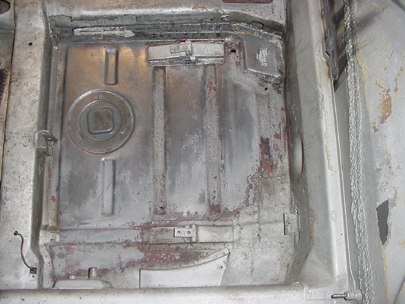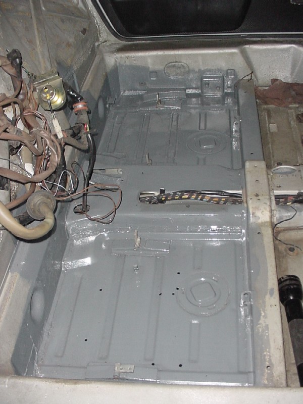 I painted the lower firewall areas in the engine compartment and the areas where the 4-cyl engine mounts were. I also painted the rear portion of the floor. I used POR paint and will topcoat. I started to strip the front portions of the floor (I want to fix any rust in the floors now instead of later...) Attached thumbnail(s)