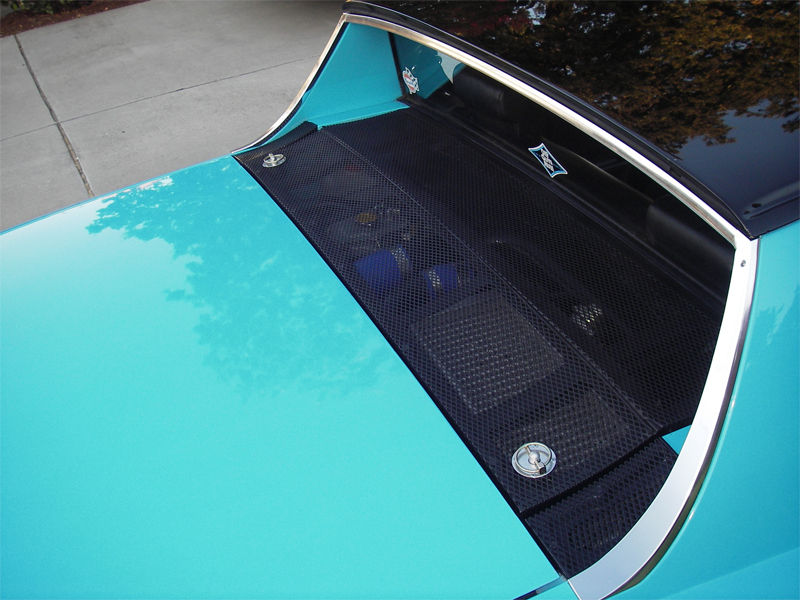 Finally got the car back from JWE! I put on the new graphics yesterday. What do you think? Also note the new hood crest, engine cover pins, new look to shifter boot and new screens in front storage. New YouTube video coming soon.