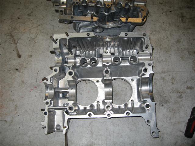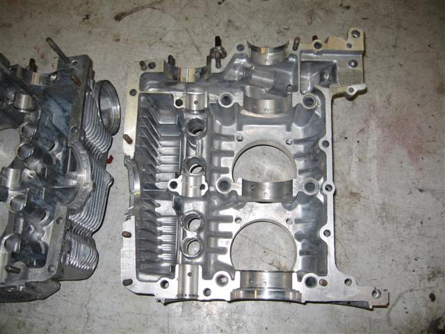 I have a friend whose garage that I've been using to disassemble my engine and get a few things on the engine straightened out on the engine. First thing is that the case need to have some work done on it. The beginning of Nov. I send a case off to Calif. to have some work done on it. My friend has a friend that he use to work with at a Porsche dealership 30 years ago, they keep in touch once in a while. So last week my friend calls me and tells me he had heard from an old friend of his that he use to work with at the porsche dealership. My friend tells this guy that he's helping a friend of his with his 914 and tells him about having to send a case off to Calif. to have some work done it. This guys tells my friend that he has a new Porsche 914 case in his garage and has had it for over 30 years and has never been used. Long story short, he brought the case over to my friends garage and I bought it for 50 bucks, thats all he was asking for it. Its a GA case with the duel oil pressure relief valves. So now I have an unused GA case to build a motor. I'm a lucky dog for finding this. This guys tells my friend that he has some more new parts and will bring them over for me to take a look at. Can't wait to see what else this guys has. How many new cases ya think would be out there hiding somewhere.