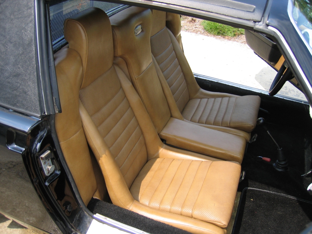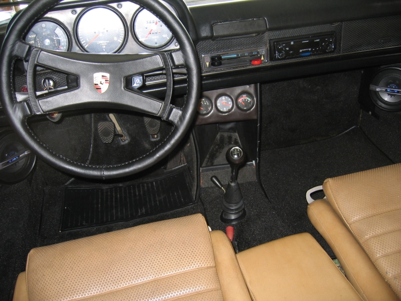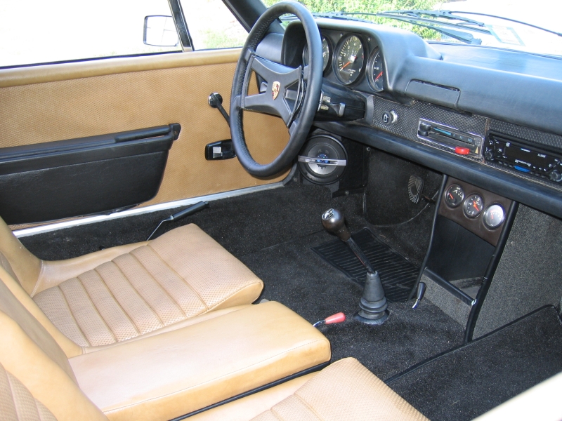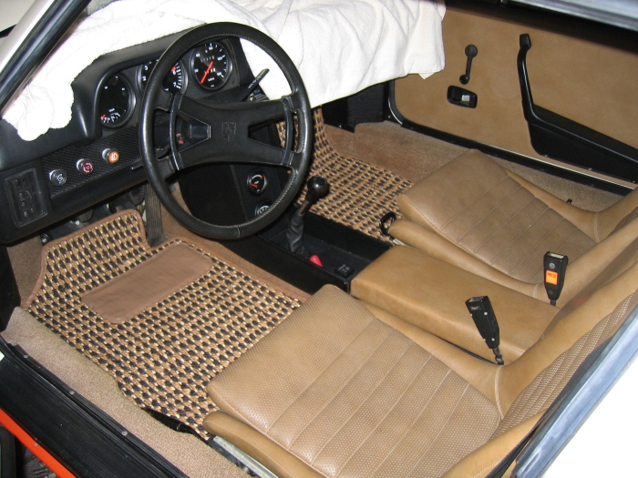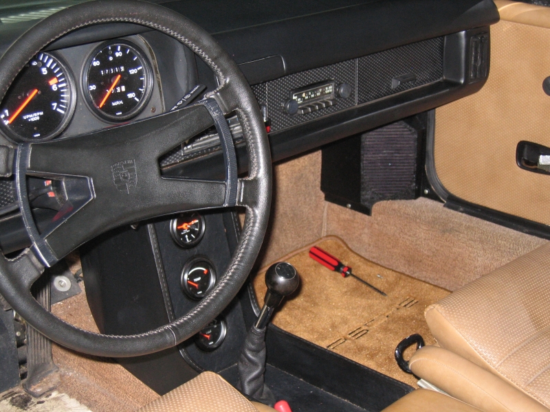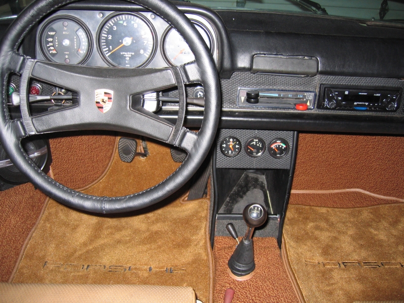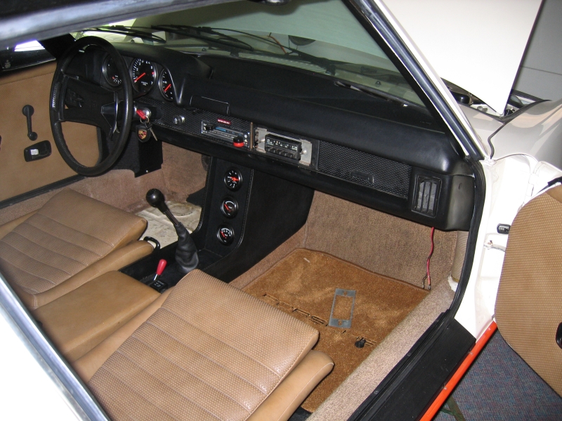I scored a 74 LE Cinnamon Leatherette interior & put it in the six for the classic "Black & Tan" look. I could not wait to put it in, so I had to recently remove it all to install Tan carpeting to complete the look. I love modifying, but I call myself a renegade purist because I like to play with OEM parts. My Scirocco, S-15 & Civic are all this way. I can't touch the LE, so the six lets me fulfill this silly need of mine to play & build. Guess I spent too much time building models in my youth & wound up playing in 1/1 scale now Here are 3 shots that show the progession of the interior- "before" The right half of the floor in the six has been replaced with a factory half pan & never finished right inside. So I pulled everything, POR all over the inside to cover up the last of the Irish Green. Ordered & installed one of Engmans' aluminium floor plates. Rebuilt the center console- not wired right/falling apart/ugly instrument face plate. Now it's wired right, lights work & made a new faceplate & covered it w/ dash material. Used contact cement & new joint fabric underneath to shore it up better. Had to add a power wire for the passenger compartment light between the seats, since the original seems to have vanished The 4th shot