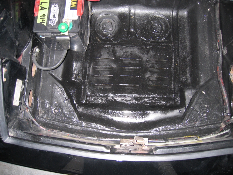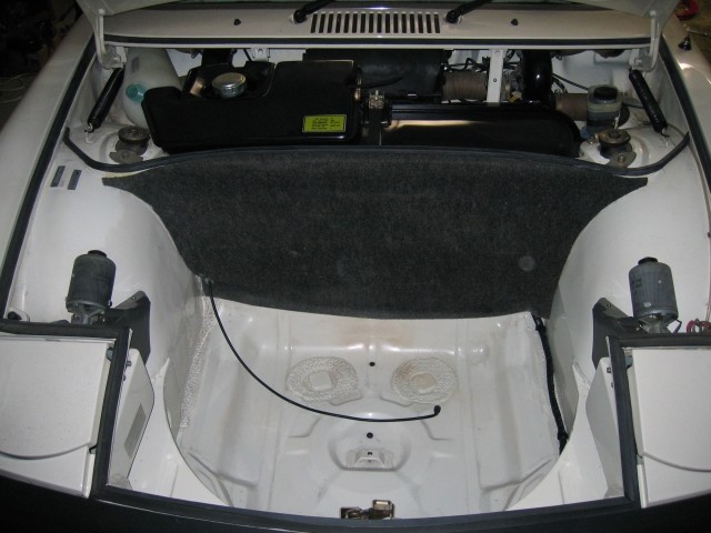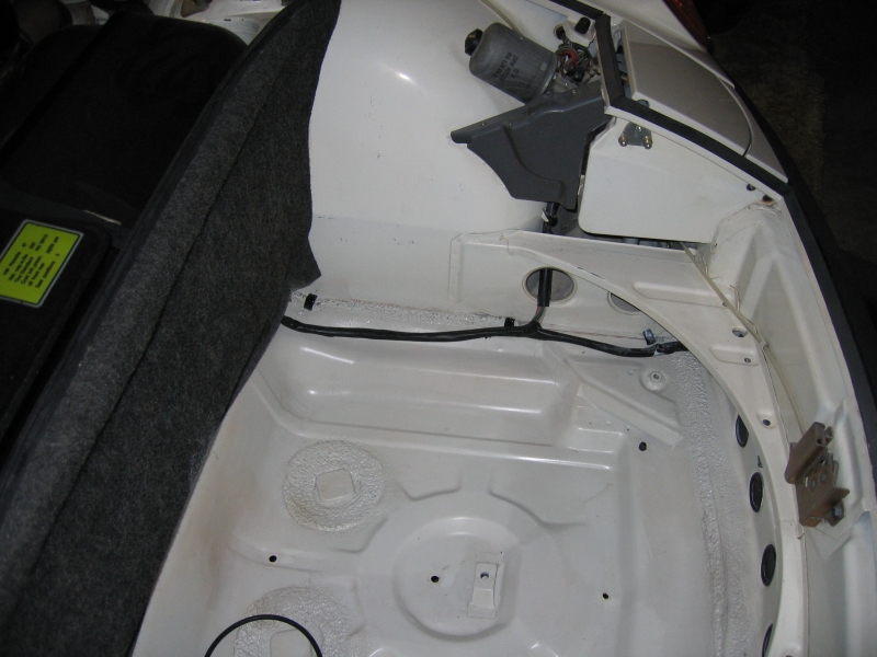 So I needed a new sheath for the front trunk release cable in the six. I got one & figured it was a quick install. Jackass. Fortunately, I had to cut a hole in the front trunk anyway- need an exit for the oil cooler. Cut a hole in the floor of the front trunk of a six, Attached thumbnail(s)