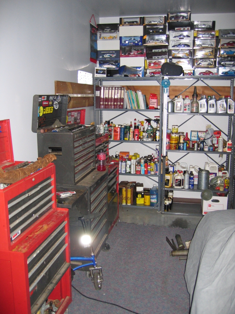 I remembered that this blog is an attempt to document the construction/assembly of my 914 room. So after hauling a bunch of loads from storage I got lucky & managed to shoot some photos today after taking a shower & drinking some coffee. Somehow all this clutter is progress. Now if I can find the keys to my tool chests Attached thumbnail(s)