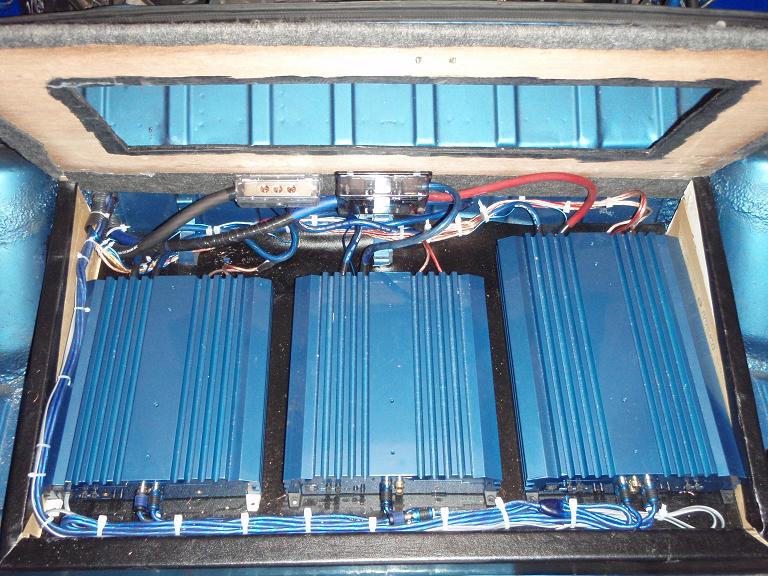 Here is the list of what i got: > CDA 9887 Headunit w/ 4volt preamp output X 3 (im gonna use 2) > Phoenix PLD1 Line Driver will feed the 2 bass amps > Phoenix EQ215i Equalizer w/ 15 adjustable frequency controlls for each channel to feed the mid/high amp > Phoenix XS2500 Amplifier X 2 I will be running one of these for each 12" woofer Bridged into 1 Channel @ 2 Ohms rated at 300 watts X 1 Continuous output I also have the LPL44 remote bass knob to control both amps you need adjustment with the top on vs off > Phoenix XS 4600 Amplifier This will be for the component set Bridged into 2 Channels @ 4 Ohms rated at 150 watts X 2 > Phoenix DD5 Desmazes Delayeator This little Baby turns on and off each amplifier and processor it has adjustable delayed fused circuits for the remote and power wires to eliminate any noises when components are turned on or off. (very cool) > Phoenix RSDC122 12inch Woofers X 2 Each woofer has dual 2ohm voice coils Rated at 600w Rms / 1200w Peak > Phoenix RSD 6.5ds Component Speakers 6.5 inch component w/ tweets Rated at 120w Peak The Plan: Headunit goes into the stock position. PLD1 goes in passenger footwell, hidden under carpet. DD5 goes into center console. EQ goes between seats, hidden under center cushion. LPL44 Remote knob mounts to new center console. 3 Amplifiers in rear trunk desigend by Me 6.5 drivers go into fiberglass kicks. Tweets go on the pillars or dash. Woofers go in front trunk w/ another wood/glass enclosure. All of it completely hidden from view. Attached thumbnail(s)