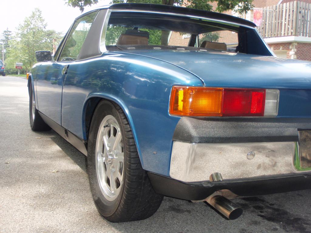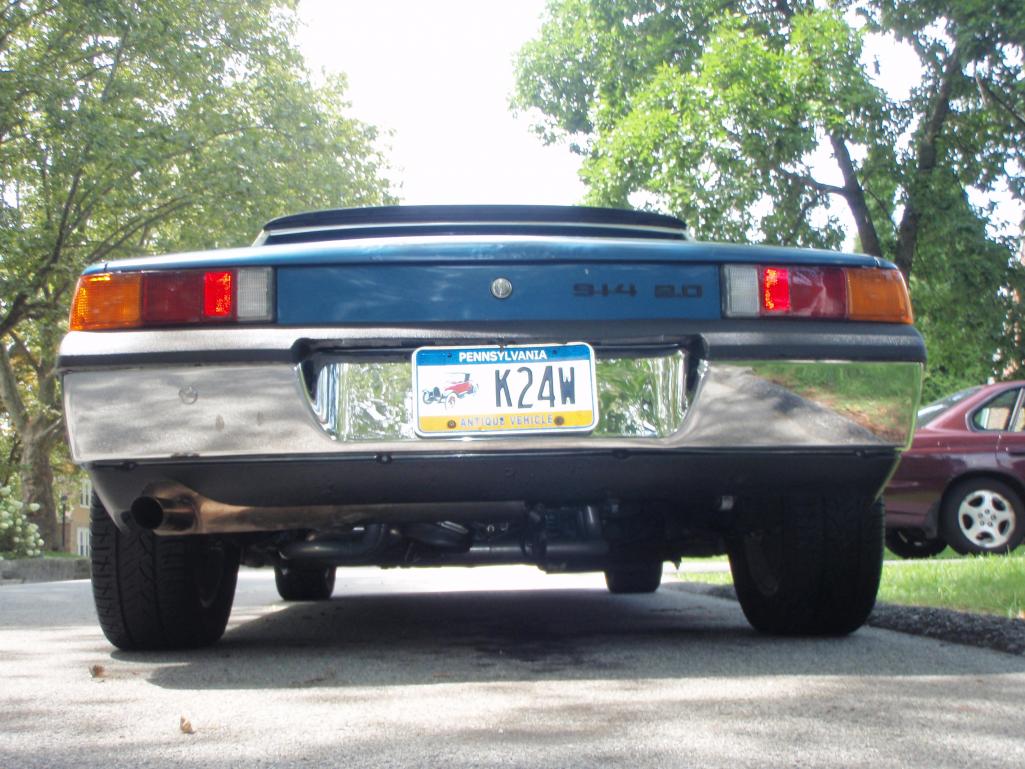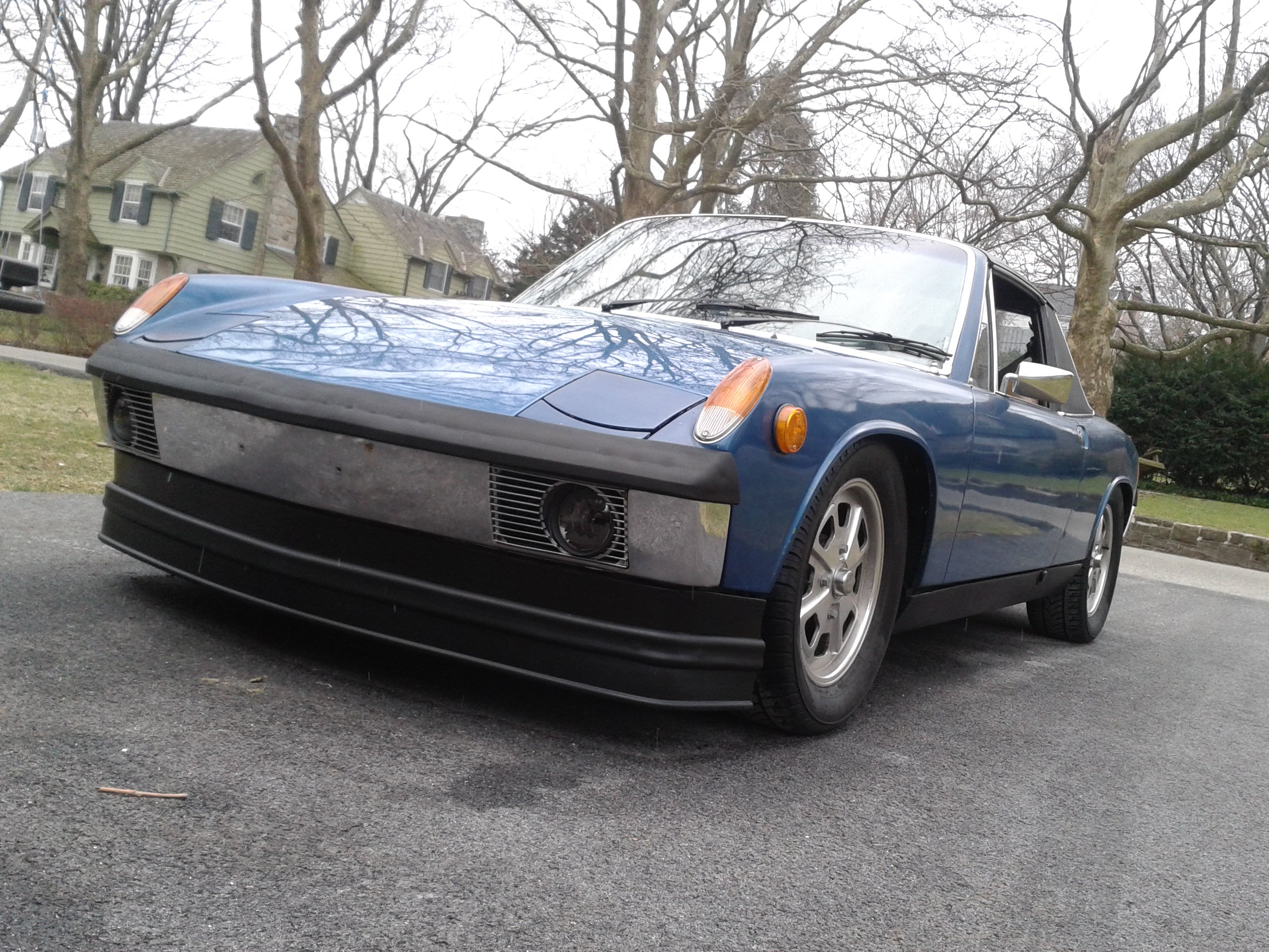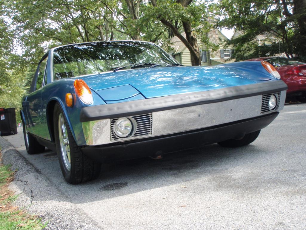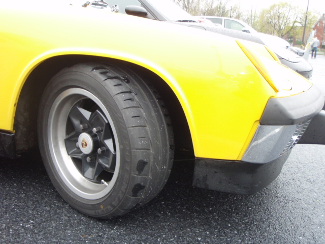 I orderd some wheel spacers to get the front wheels pushed out to fill in the wheel wells. The front track on the 914 is actually about 1.5 inches narrower than the rear. Finding 4 bolt spacers was not easy, but the hubcentric ones I found are absolutly awesome. I had to get some custom bolts that were 20mm longer than the 38mm stock bolts. The spacers are 20mm each. The front track is now the same as the rear, and it looks bitchin Attached thumbnail(s)