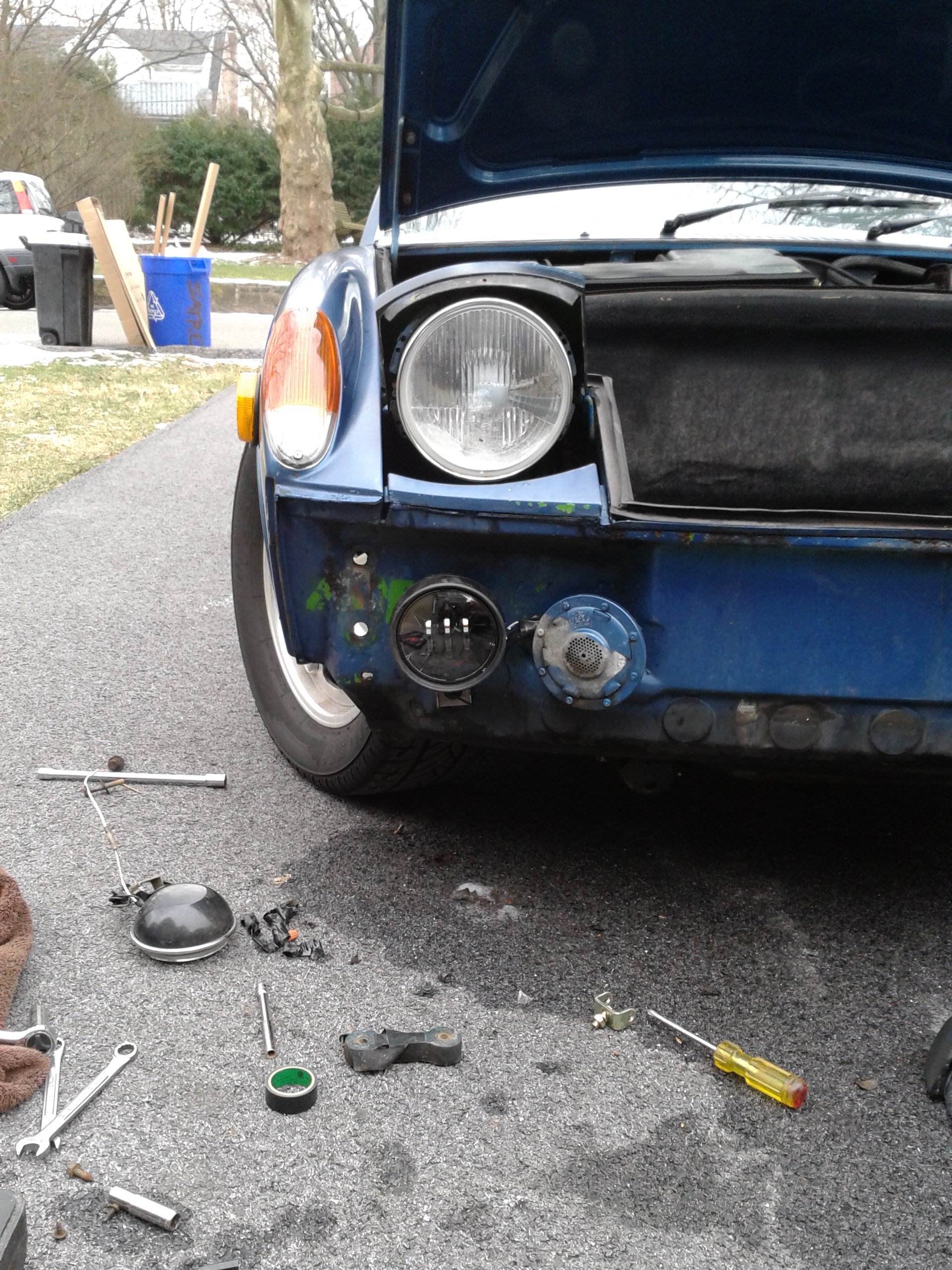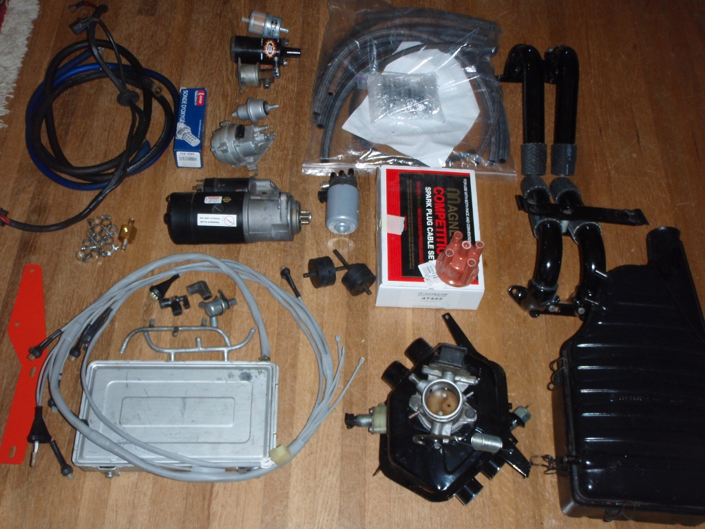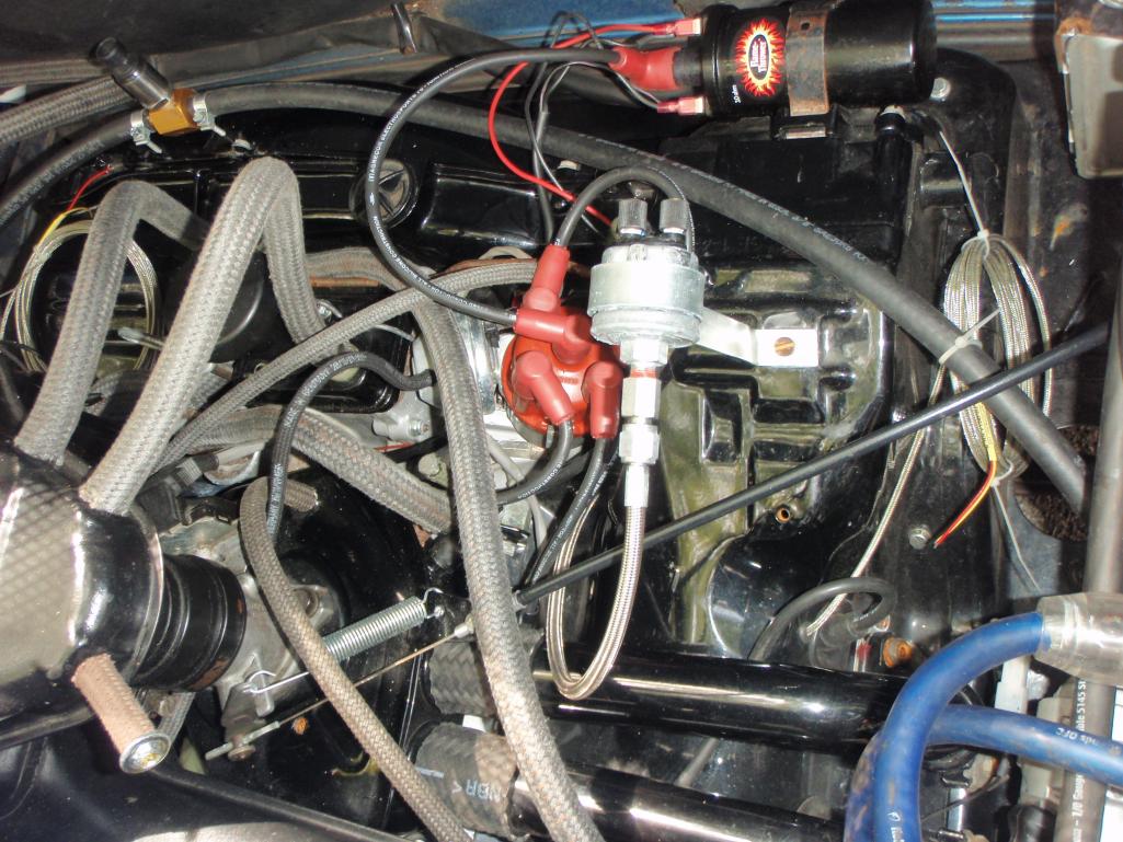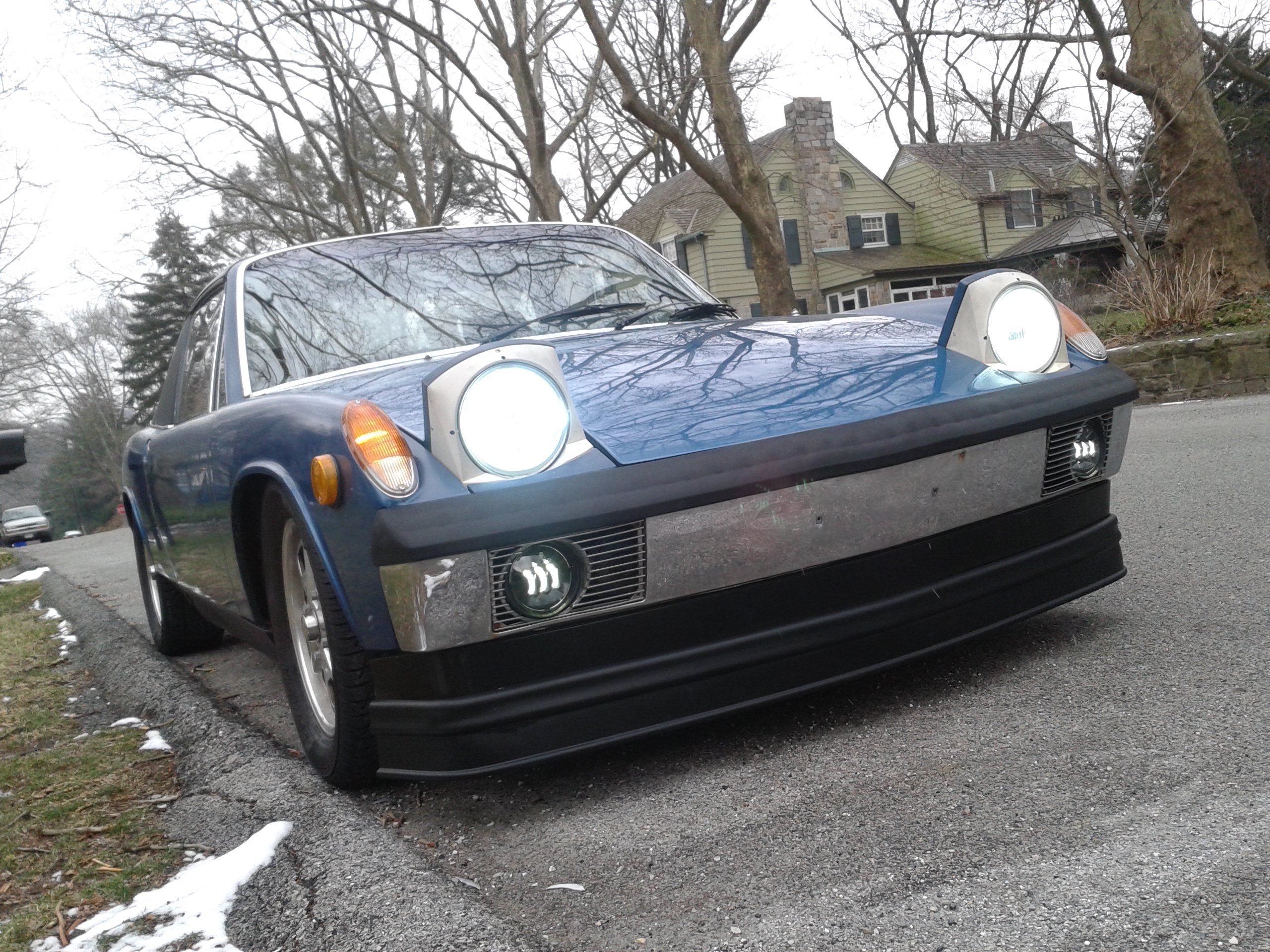 I orderd some wheel spacers to get the front wheels pushed out to fill in the wheel wells. The front track on the 914 is actually about 1.5 inches narrower than the rear. Finding 4 bolt spacers was not easy, but the hubcentric ones I found are absolutly awesome. I had to get some custom bolts that were 20mm longer than the 38mm stock bolts. The spacers are 20mm each. The front track is now the same as the rear, and it looks bitchin Attached thumbnail(s)