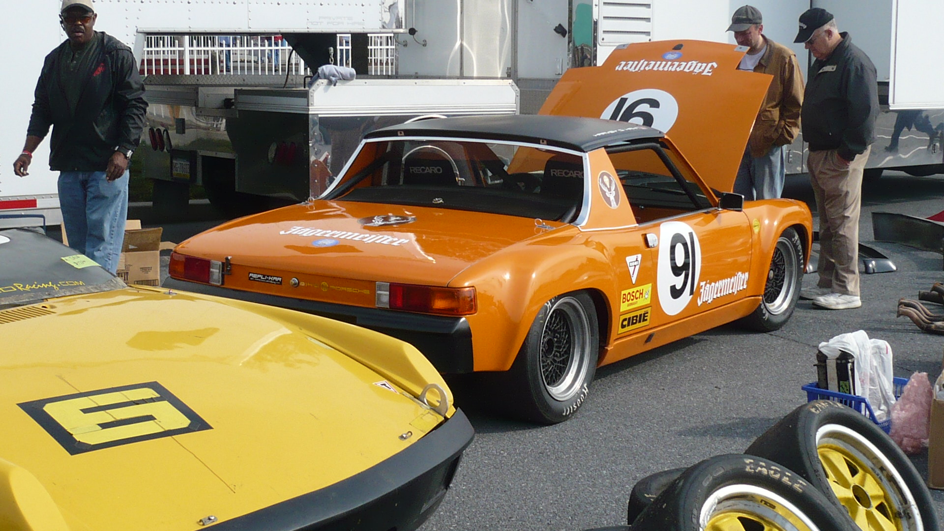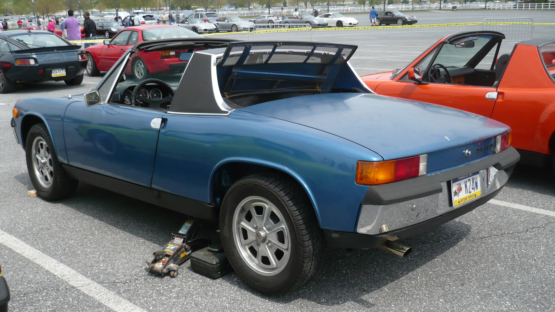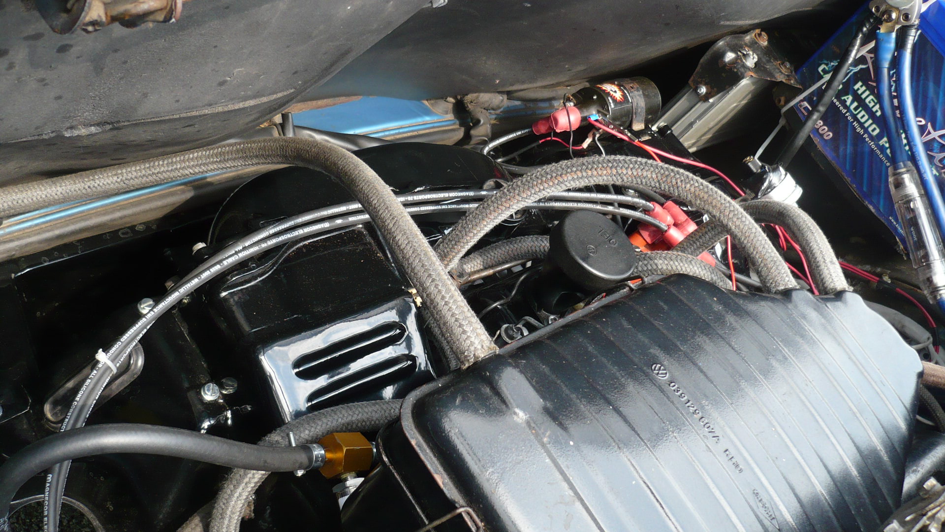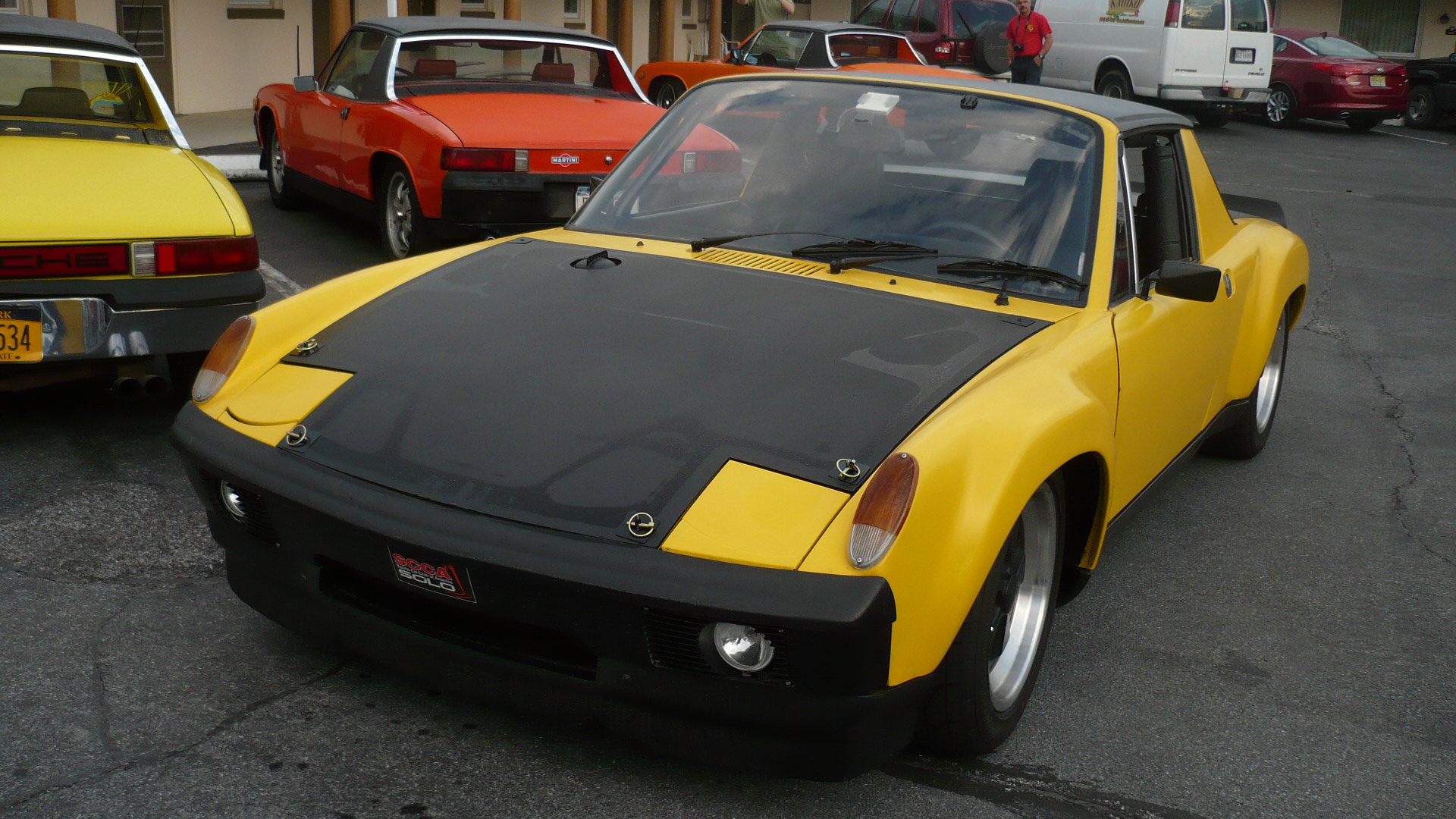 I orderd some wheel spacers to get the front wheels pushed out to fill in the wheel wells. The front track on the 914 is actually about 1.5 inches narrower than the rear. Finding 4 bolt spacers was not easy, but the hubcentric ones I found are absolutly awesome. I had to get some custom bolts that were 20mm longer than the 38mm stock bolts. The spacers are 20mm each. The front track is now the same as the rear, and it looks bitchin Attached thumbnail(s)