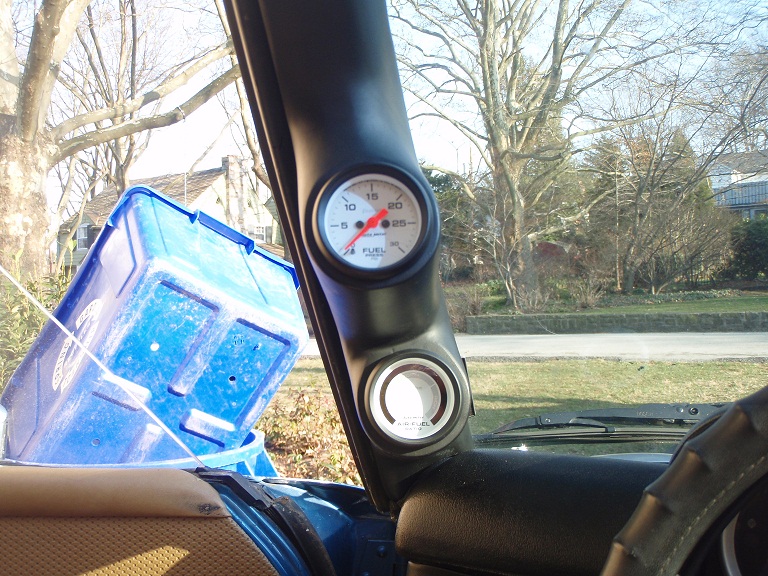 I went ahead and added some gauges to the teener today. (3) to be exact. I got rid of the clock and replaced it with an oil pressure gauge. It is smaller than the stock gauge, so I used a bit of superglue and managed to get my aluminum ring to fit pretty well. I didnt want to loose the uniform look with the trim rings I purchased. The other 2 went on the pillar, a fuel pressure gauge to monitor the D-Jet, and a Air Fuel gauge to keep in tune. biggrin.gif I did not want to install the pillar at first, but bit the bullet when i saw the alternatives. I actually really like it Attached thumbnail(s)