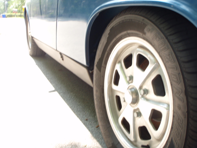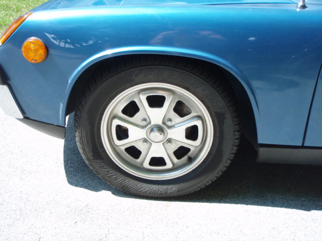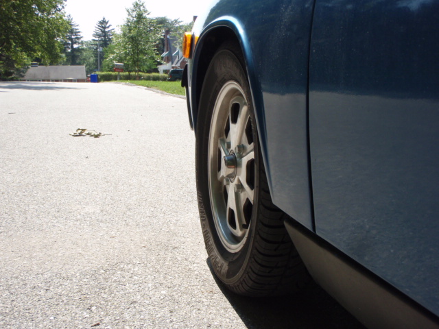 I orderd some wheel spacers to get the front wheels pushed out to fill in the wheel wells. The front track on the 914 is actually about 1.5 inches narrower than the rear. Finding 4 bolt spacers was not easy, but the hubcentric ones I found are absolutly awesome. I had to get some custom bolts that were 20mm longer than the 38mm stock bolts. The spacers are 20mm each. The front track is now the same as the rear, and it looks bitchin Attached thumbnail(s)