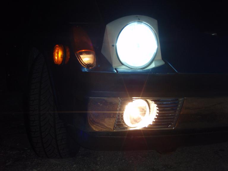H.I.D. kit took about 2hours to install. Used a pair of Hella H4 E code lens and a hid kit with a temp of 6000k (daylight) the harness on the kit plugs right into the stock plug but I had to add 2 holes between the trunk and headlight for the additional high voltage wiring. The kit draws about 8amps on startup and a constant 3amps. The systems is rated at 35 watts. Look at the difference between the headlight color and the fogs. The fogs used to match the Silverstar headlights that i removed. I love the look, and i will soon be upgrading my stock fogs to H3. Attached thumbnail(s)