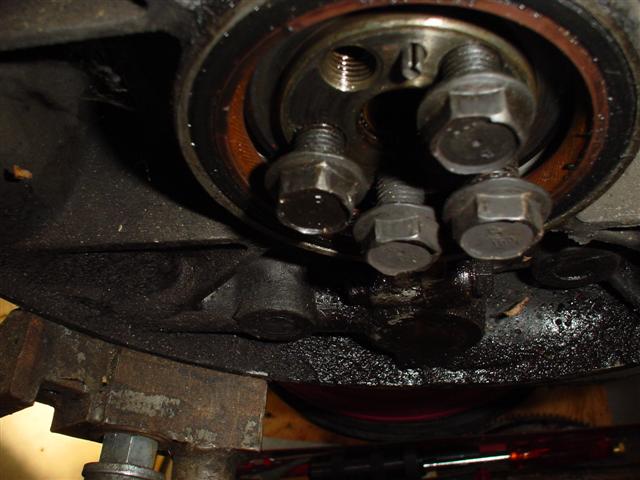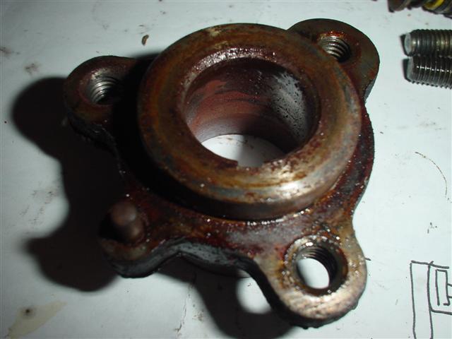 The hub finally came off with a surprising amount of energy in the release. The hub bolt and washer were turned in (but not enough to tighten against the hub) in case the hub sprang off with enough energy to shoot it as a projectile, this acted like a teather and there was an audible "tink" when the hub popped off. |
