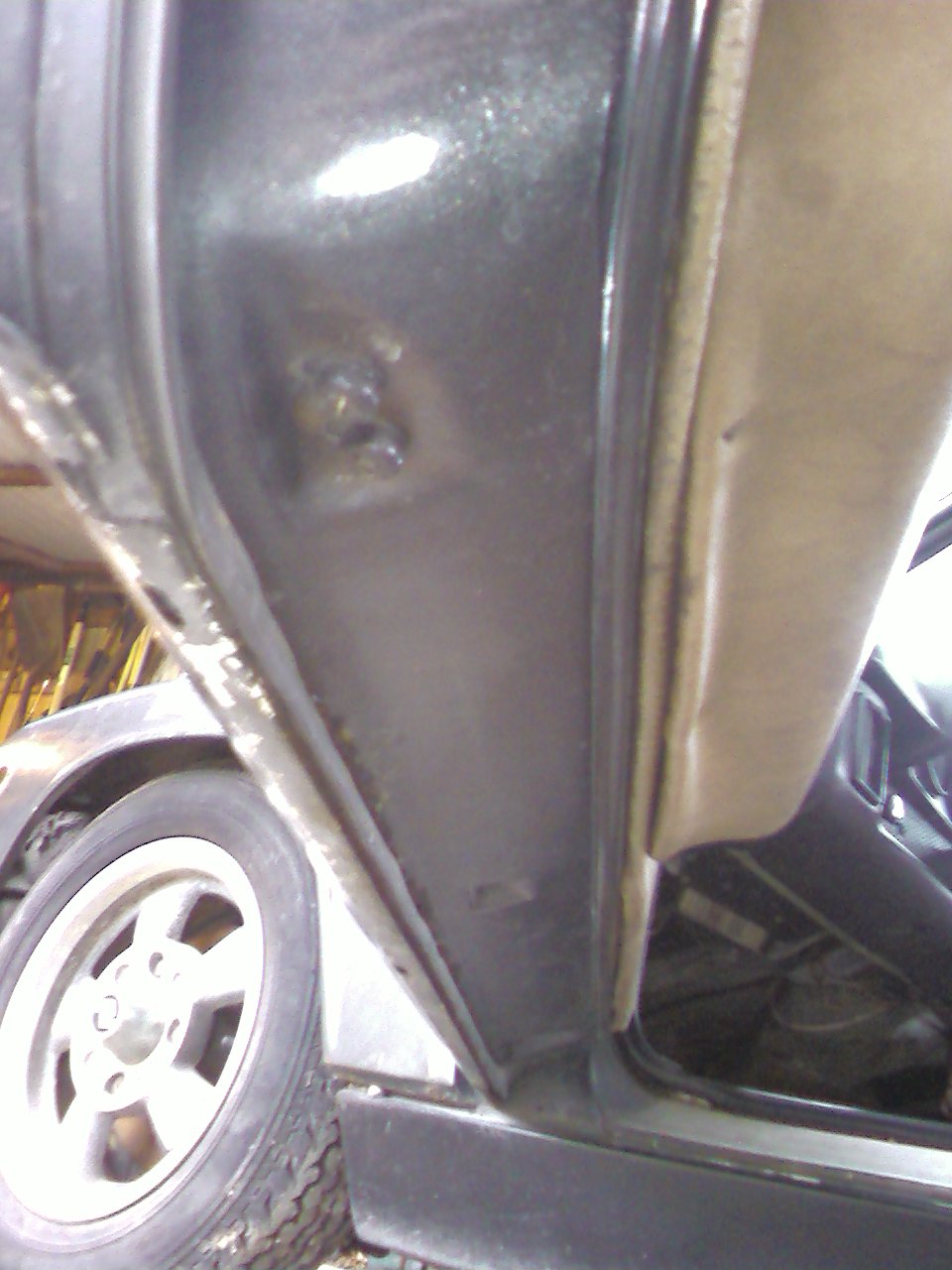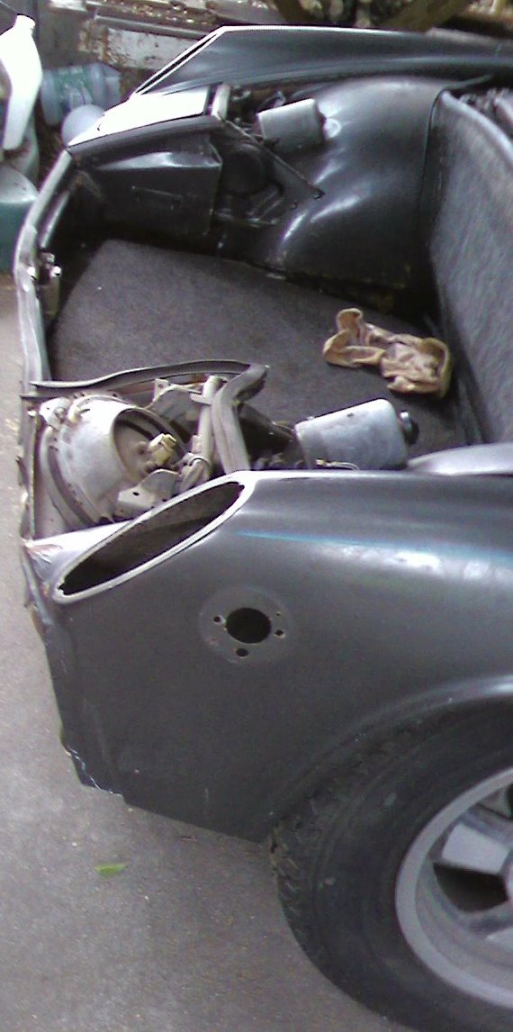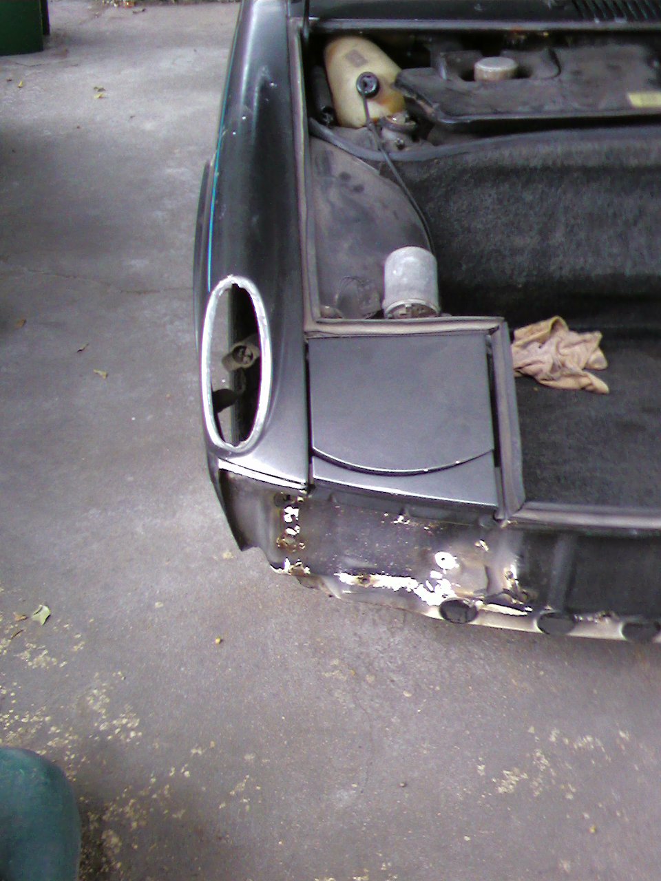 (IMG:style_emoticons/default/piratenanner.gif) Absolutely excellent study Tom, I think I will try to do mine. I know mine is a wadering-lost from CA car. Yours is a great project. It is nowhere near terminal; true or loose the rear lid. Replace the taillight steel section. True or replace the trunk rear portion of the floor. That's not but a few hundred and some weekend work, easy. Work from there. The front is the same. Eat a cow. You can do it. Just slice it, at one steak- at a time...ahhhh-good! (IMG:style_emoticons/default/beerchug.gif) (IMG:style_emoticons/default/poke.gif) (IMG:style_emoticons/default/beerchug.gif) (IMG:style_emoticons/default/laugh.gif) (IMG:style_emoticons/default/laugh.gif) (IMG:style_emoticons/default/rolleyes.gif) (IMG:style_emoticons/default/laugh.gif) (IMG:style_emoticons/default/beerchug.gif) (IMG:style_emoticons/default/smash.gif) (IMG:style_emoticons/default/popcorn[1].gif) (IMG:style_emoticons/default/sawzall-smiley.gif) (IMG:style_emoticons/default/beerchug.gif) Thanx.... Nice thing is, I was donated a wrecked racer shell which folded under the rear suspension with console damage, but pretty much everything I need in terms of F&R deck lids, L headlight/inner fender area, rear face panel & trunk floor & even the passenger floor/steering niche area (where my mystery rust hole appeared while in storage) are all there for the cutting! Most of this is well beyond my skill level & limited tool bin, so rather than my f***ing it up, I'll have a good shop familiar with 914 body & paint help me with that part. All I've got to do is get my daughter;s & wife's "extra" furniture out of the garage so I can get to it & start. Unfortunately, I have to do some business stuff first, (IMG:style_emoticons/default/dry.gif) then start moving stuff out to the new shed my son & I built this summer! |
