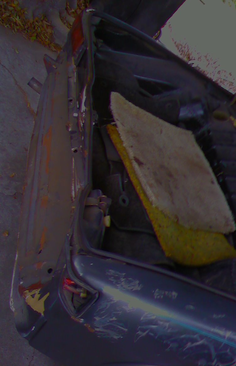 I know mine is a wadering-lost from CA car. Yours is a great project. It is nowhere near terminal; true or loose the rear lid. Replace the taillight steel section. True or replace the trunk rear portion of the floor. That's not but a few hundred and some weekend work, easy. Work from there. The front is the same. Eat a cow. You can do it. Just slice it, at one steak- at a time...ahhhh-good! (IMG:style_emoticons/default/beerchug.gif) (IMG:style_emoticons/default/poke.gif) (IMG:style_emoticons/default/beerchug.gif) (IMG:style_emoticons/default/laugh.gif) (IMG:style_emoticons/default/laugh.gif) (IMG:style_emoticons/default/rolleyes.gif) (IMG:style_emoticons/default/laugh.gif) (IMG:style_emoticons/default/beerchug.gif) (IMG:style_emoticons/default/smash.gif) (IMG:style_emoticons/default/popcorn[1].gif) (IMG:style_emoticons/default/sawzall-smiley.gif) (IMG:style_emoticons/default/beerchug.gif) |