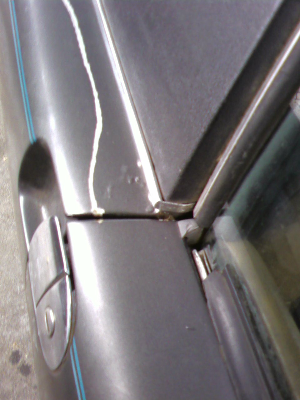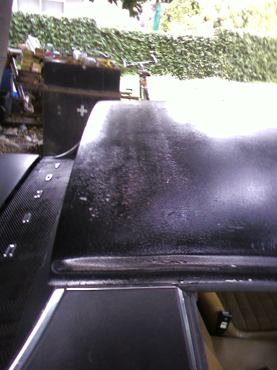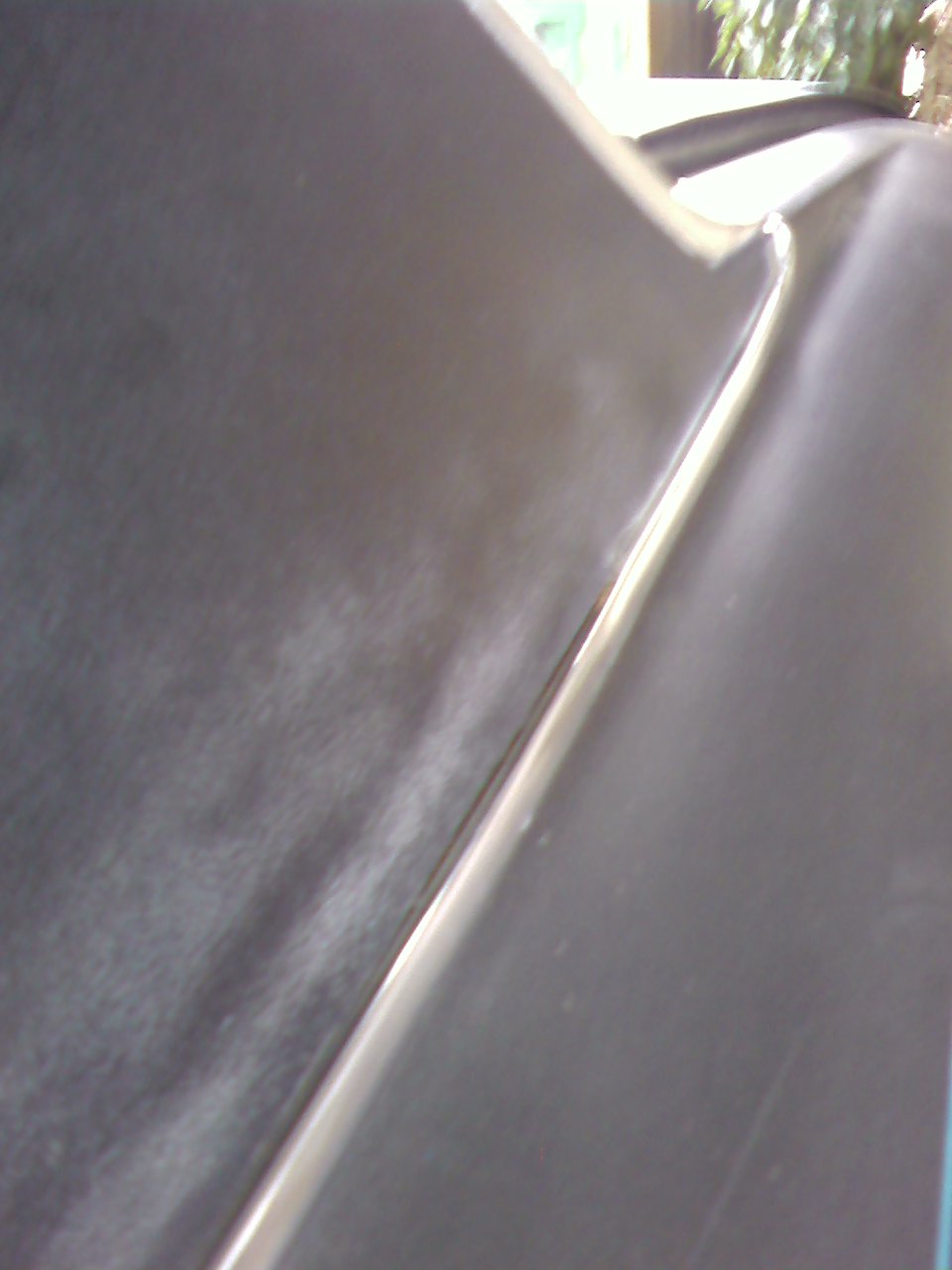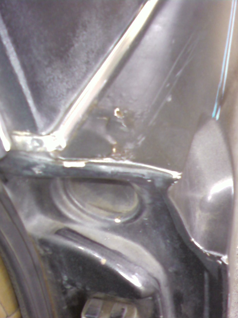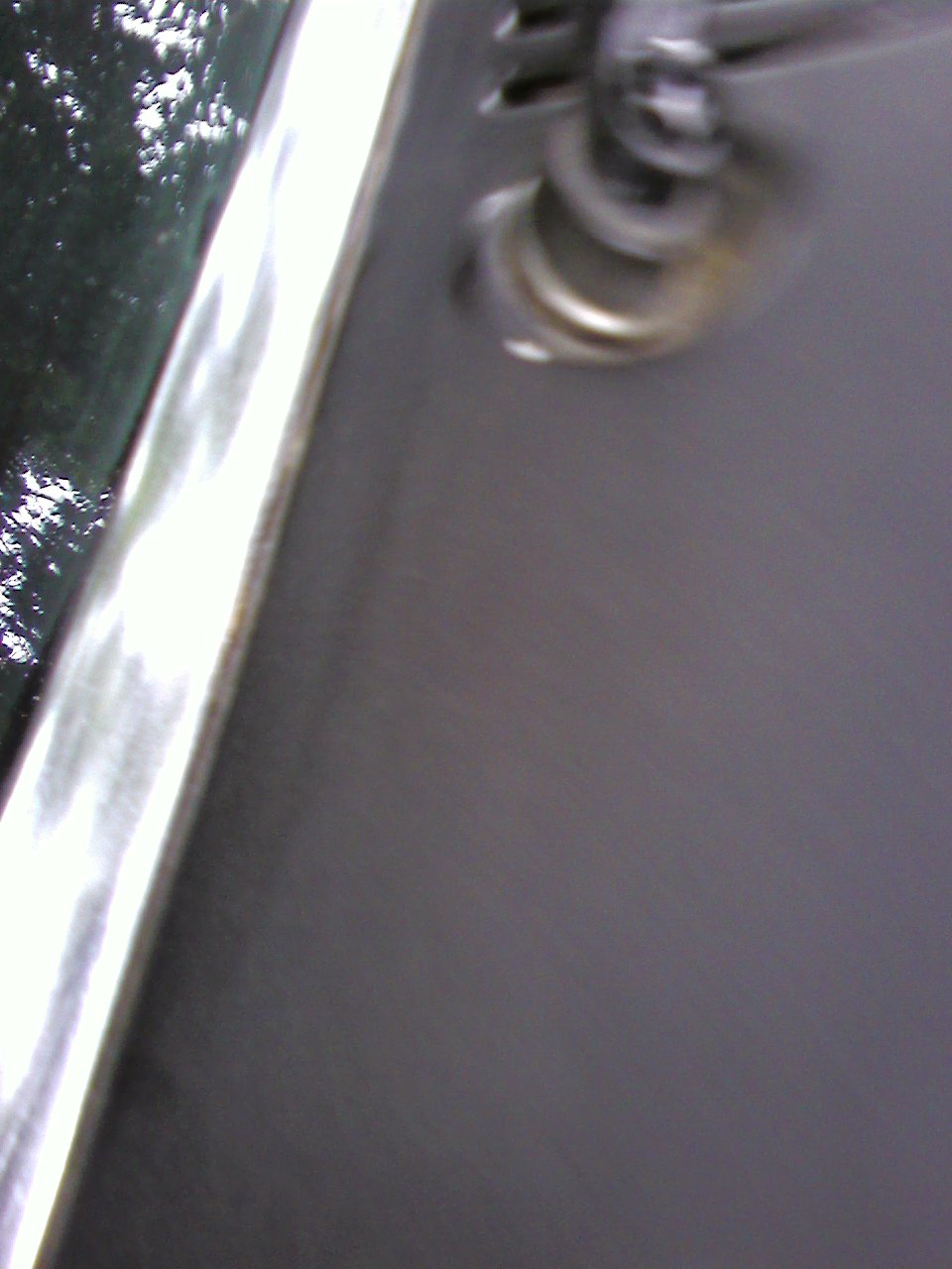 Rust spots & bubbles top-side - . Note the white Bondo at the rust bubble below, which was supposed to have been ground-out & "Leaded" back in in the 1980 Rust-oration, for which I was charged, but obviously NOT done properly! .. also a small bubble under the sail vinyl which is hard to see - sorry for the quality, but I was using my Lo-Rez cellphone camera to get pic files small enough to post here, & was losing light & fighting time with the rain coming in mid-afternoon! (IMG:style_emoticons/default/dry.gif) ... more ....... |