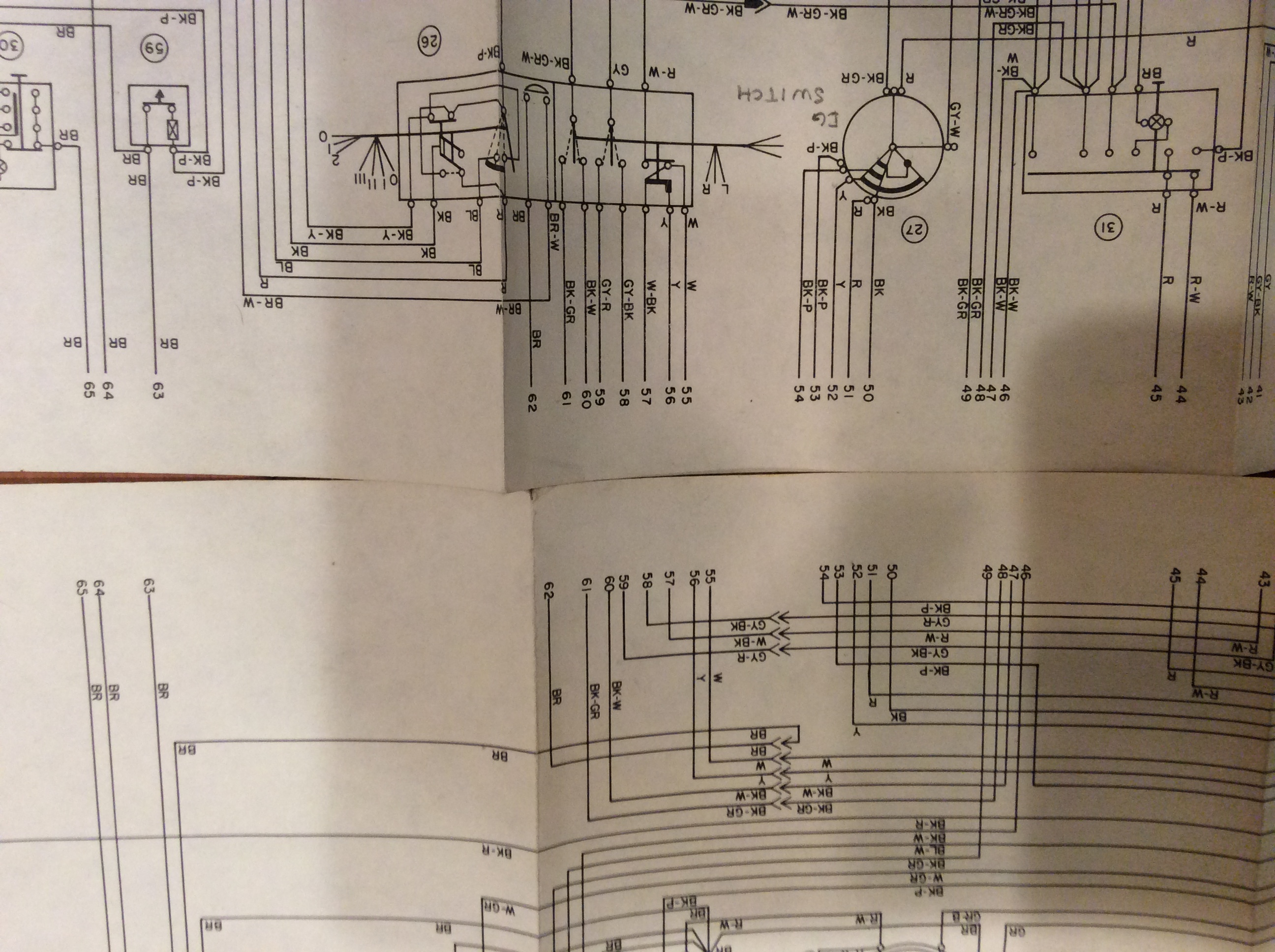 Not sure exactly what you are looking for but here are some pix of the steering column switch diagram. The one diagram shows the terminal numbers. It is not at all clear but it might get help. The others show the wire colors.