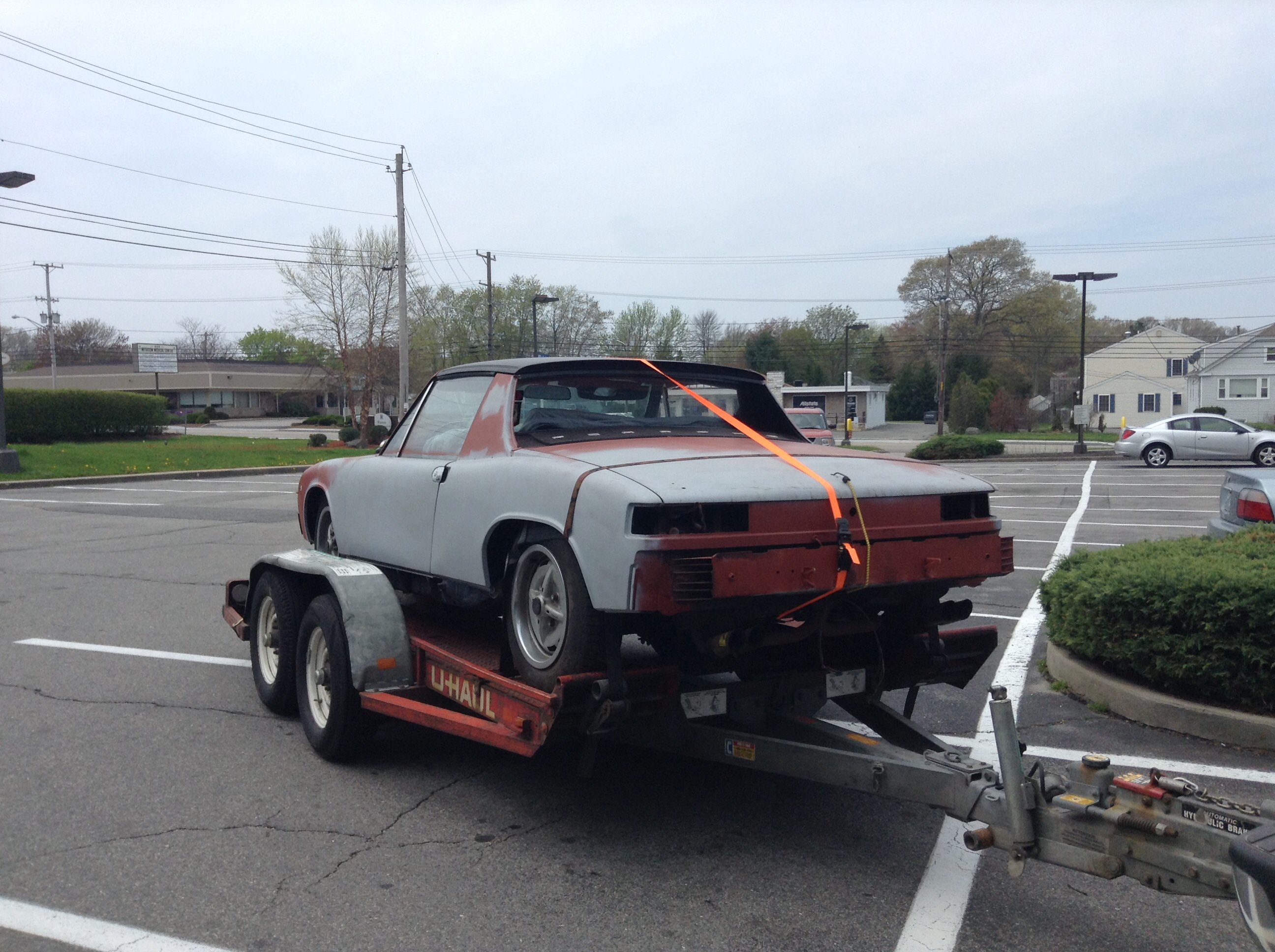 So, this (by the way, a very nice guy) started this project about 8 years ago, he had all the body work done, reupulstered interior, he bought everything you would need to build a new 914. All I needed was a battery and this car purred so smoothly it is unbelievable. My dad, has owned busses, Beetles, Ghias, 914s, a lot of air cooled wonders, so he knows a lot about them. He has/is helping me learn, he already taught me a ton, enough to feel confident to go out to the barn and make progress by myself. Thanks a lot, your the BEST DAD! My plan is to fix the small remaining little bits of work; welding e-brake pivot plate, seat belt attachment bolt, center console wiring, recover dash. then I will shoot it with gloss black Plasti-Dip(to preserve until I can afford a quality paint job) and reassemble. Since I got a lot of extra parts, I will be selling some. I will post a link in the classifieds to ebay, where I will be selling them. (as for the '74, that will be a father-son race car project.) By the way, I am paying for everything. Including the gas to pick it up. I will keep you all updated as the build progresses. And ask a few questions:) I'll post better pictures later |