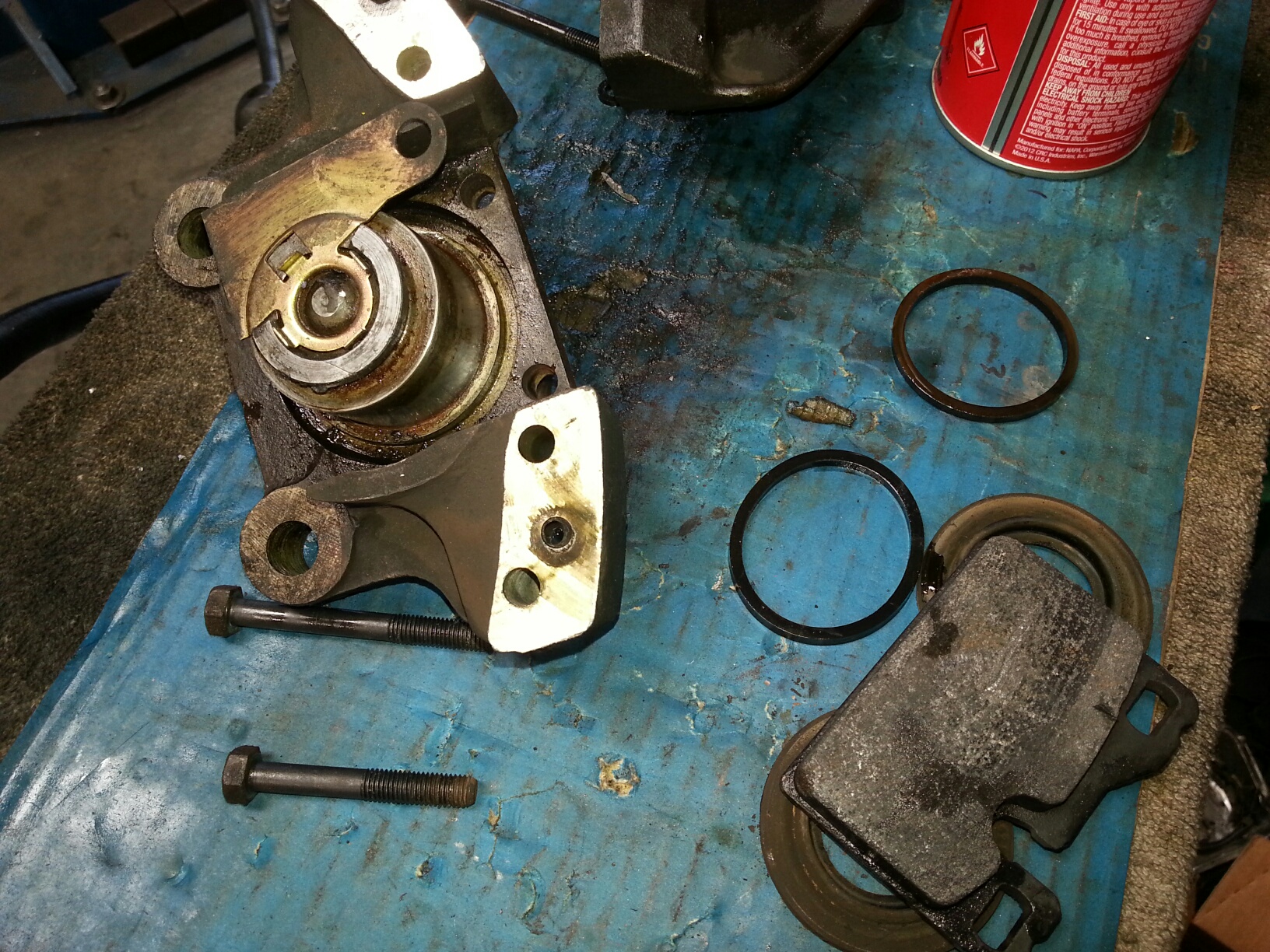 One of the brake was making an intermittent humming sound while driving. Turns out that the brake pistons were rather crudded up, so the outside left pad wasn't retracting back all the way. They cleaned up very nicely, and work perfectly now.