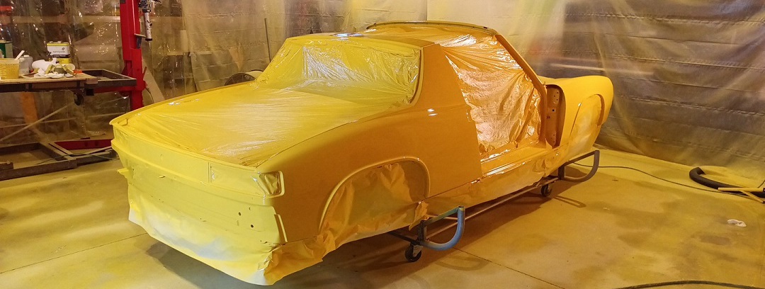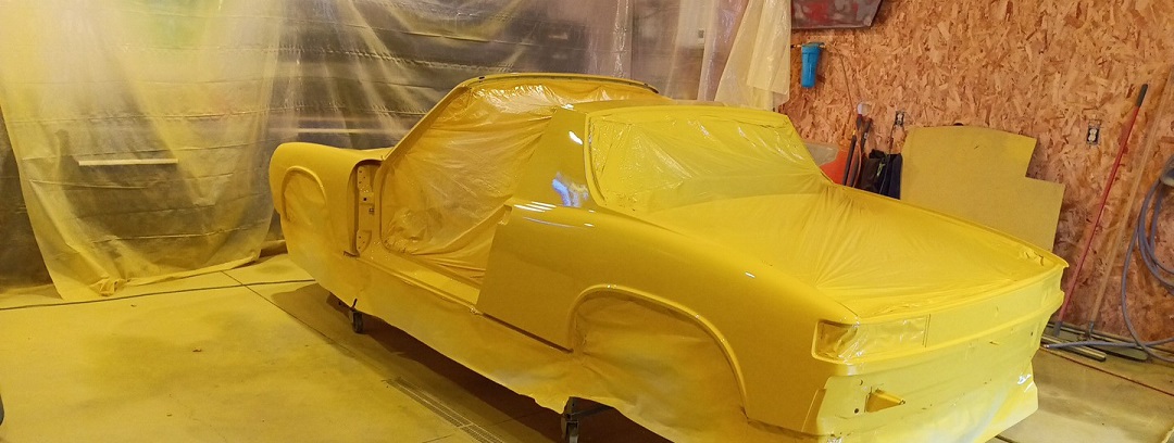 I tried to rent a booth from 3 bodyshop owners I know but they were backed up. Besides with all the parts and pieces, inside, under the car etc. it would have taken alot of production time from their businesses. So I spent like 60k on this garage and it is now yellow. The exterior of my overhead door is yellow, the concrete outside the overhead door is yellow. But the car is in paint the and polishing process starts over the next 2 weeks. Once I am done I will rent one of those big floor scrubbers and clean off what I can then paint the floor gray. I think if I am careful with thinner I can wipe the overspray off the overhead door. It's all part of keeping a promise. If I didn't enjoy the journey I would have bailed long ago.