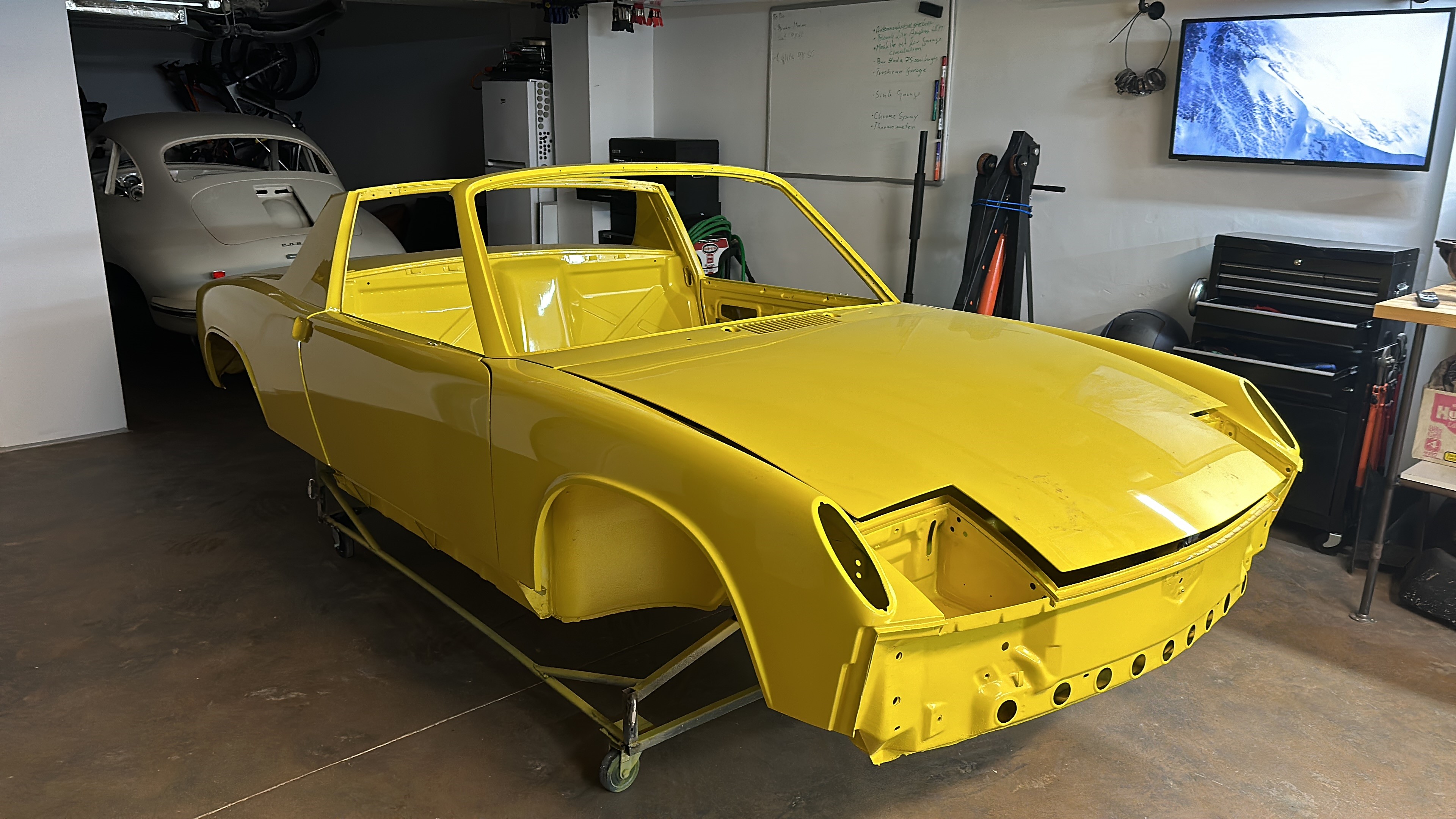 Very nice work! Can you share some details on your rolling cart? I’m see the loops on the sides. Does it allow you to turn the car on its side? I was able to put it on its side but it was very difficult. There are way better Ideas out there but it worked. A rotiserie was not an option as I had 1/2 the front clip removed. |