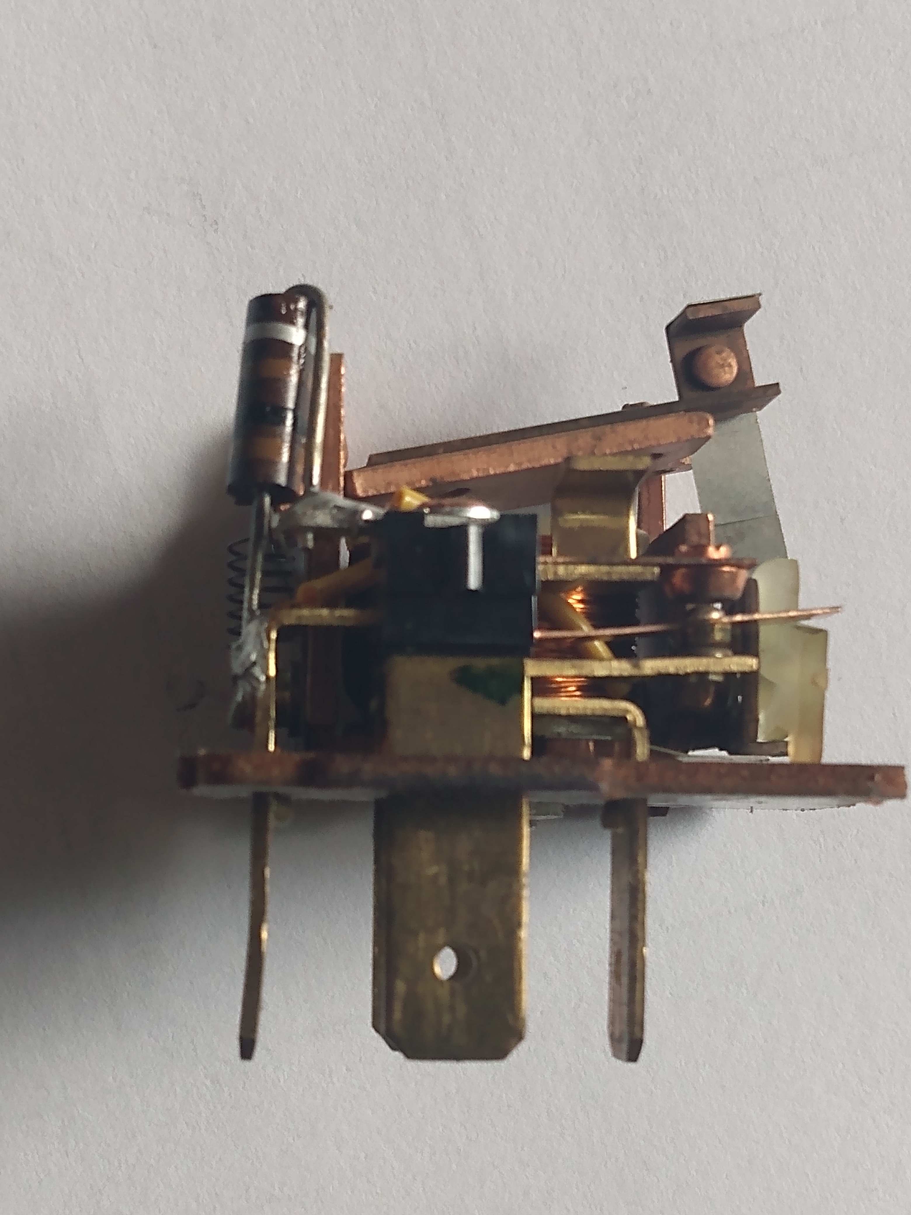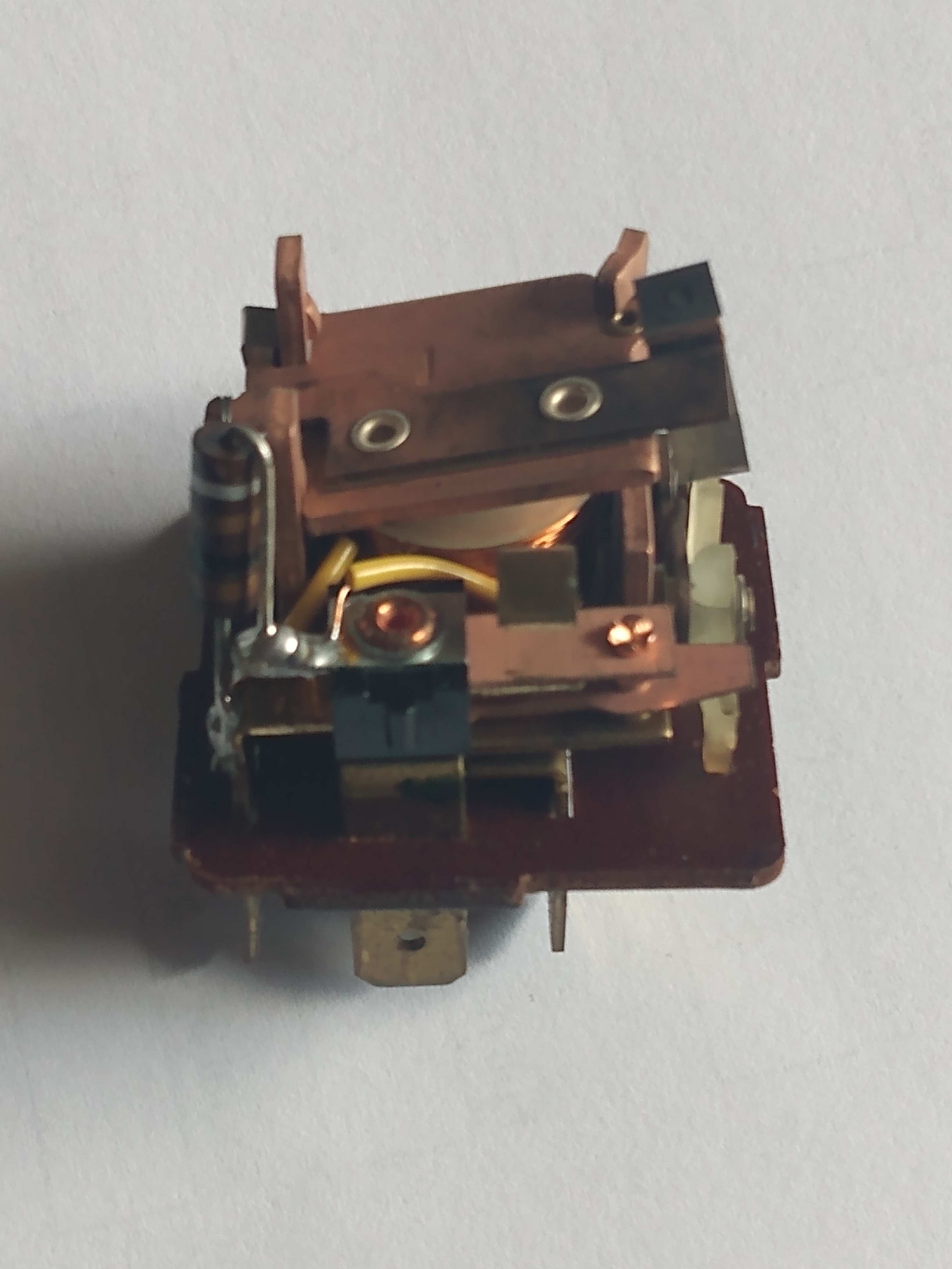 I removed the case on the old non-working relay. I’m not clear where you use the sandpaper Can you add an arrow or pointer to show the exact area to sand. I'm not good at marking up pictures so I'll try 'splainin'. First, are we sure the non-working relay is due to bad contacts instead of a bad coil? If it is a contact issue, we want to clean the little buttons on the strap piece. If you press down on the coil arm at the top, you will see the strap move, that's the one we are talking about. Ideally you want to use a 'points file' (remember those?) Thin metal strip with a very fine abrasive on it. We aren't looking to remove a lot, just buff off any corrosion/burnt surface. |