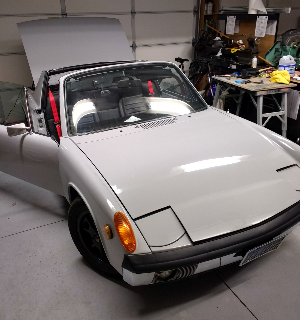 THANKS First of all, thanks to all who commented, helped and encouraged me, I really appreciate it. PAINT BOOTH Here are some pictures of my paint booth. This is a smaller version I'm using to paint a roof and some other non-914 items, but it is built the same way. I pulled air in thru furnace filters with box fans I got at Home Depot. The wood is 1-3/8" square stock. The corners are 1/4" plywood. I attached them with wood screws and heavy staples. I used 1/4-20 screws and wingnuts to attach all the panels to each other. I made 8' x 8' panels and covered each one with heavy plastic. I used staples to attach the plastic. ![]() ![]() ![]() I should have put paper of the floor. It didn't keep out all the dust, but it was good enough. COMPRESSOR I have a Craftsman 33 gal, 150 PSI, 2HP 8.6SCFM@40psi/6.4SCFM@90psi compressor. It worked fine for the painting. It was on most of the time while I was using the air tools. The SCFM rating is the most important spec, so keep that in mind. SPRAYGUN I used a HF spraygun (the $69 one). It worked, but I would buy a better one if I was doing this again. The HF gun felt like it was wearing faster. I have no real proof, but it just seemed that the parts were wearing out. Keep in mind, I took the gun apart every time I used it, and I did this a lot! The constant screwing and unscrewing, wiping, pulling the trigger, etc seemed to take a toll. However, everything I researched indicated that technique is more important that the equipment. In other words, a beginner with an $800 SATA gun could screw up the paint, whereas a pro with a cheap HF gun could do a really good job. SPRAYGUN SET UP I had a coiled 25' hose from the tank to 2 moisture filters to a 25' hose reel to a "pumpkin" moisture filter mounted on the inlet on the spraygun. I think I might get a better moisture filter, but I had no issues when spraying once I got everything dialed in. Read the previous posts to see what I did, it was quite the adventure! Spray at about 70-74 degrees F, 20-25 PSI, with proper technique. I used slow reducer (the kind most people use on hot days), because it gave the paint time to settle out. It just took longer to dry. SPRAY TECHNIQUE Practice and figure out what works for you. I watched lots of YouTube videos. I liked the Kevin Tetz ones. Pressure, distance from the surface, speed all matter. What worked for me was a little different than what some of the videos stated: I got closer and went a bit faster. I practiced on a hood with the actual paint I was going to use. It was more expensive, but gave me better insights into what worked. SURFACE PREP This is the most important part. When I was done, I had a few low and high spots that, had I fixed these beforehand, would not have shown up in the final cut and polish. I would spray a final primer coat on the car to enable me to see all the flaws and fix them before I went to final paint. I used a air DA sander, electric sander and sanding blocks (Dura-Block) for the initial sanding and body work. I used the Dura-Blocks and Soft Sanders (by Style-Line) and bought rolls of adhesive-backed sandpaper for color sanding. I used a TorqX polisher with Chemical Guys polishes. They have a YouTube channel that was helpful. I bought most everything at a local autobody supply place. They didn't have much on the shelf, but I discovered I had to ask and they had it in the back. COST Booth: $200 Paint gun and related (included compressor accessories, fittings, etc): $400 Paint and sanding (paper, paint, sanding blocks, etc): $1,500 Total cost: $2,100 Being able to say "Yeah, I painted my car myself.": Priceless |