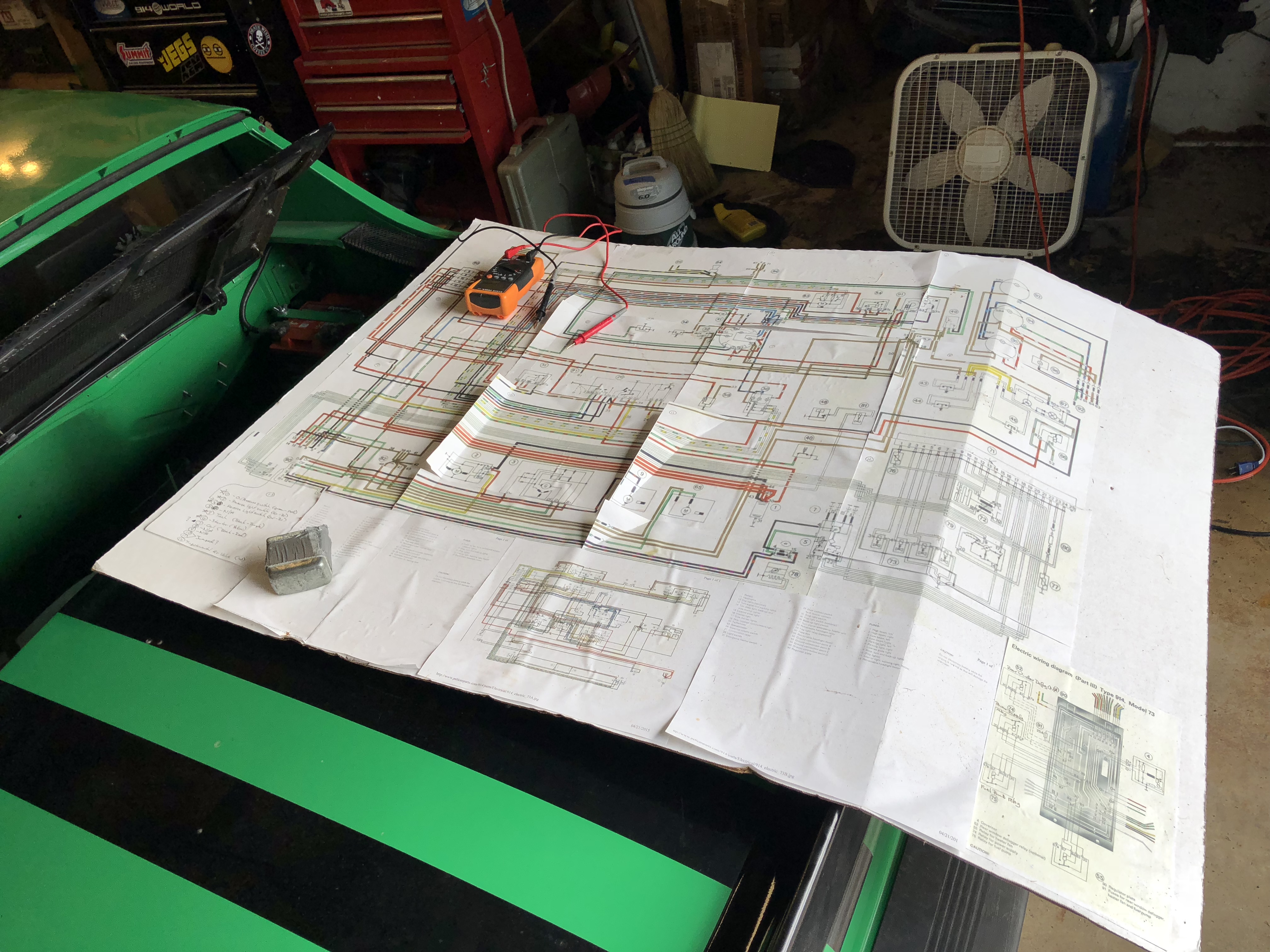 Electrician for the house will be here in a few minutes, but I've searched all the grounds from the cockpit back. Battery to body is pristine. Trans to body has no corrosion. Every place that grounds in the engine bay was tip-top. I need to look in the cockpit yet, but I suspect things will be good there too. The car is kept indoors and I don't have that many miles on the body since the restoration ended back in 2009/2010. If the ground that are exposed to the elements are good, I have to think the cockpit grounds will be good too.
