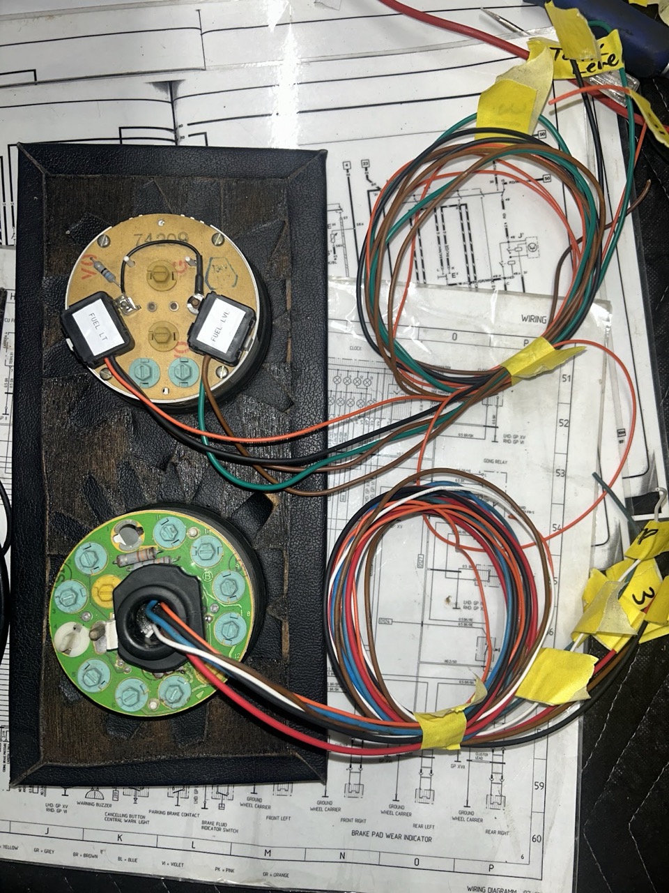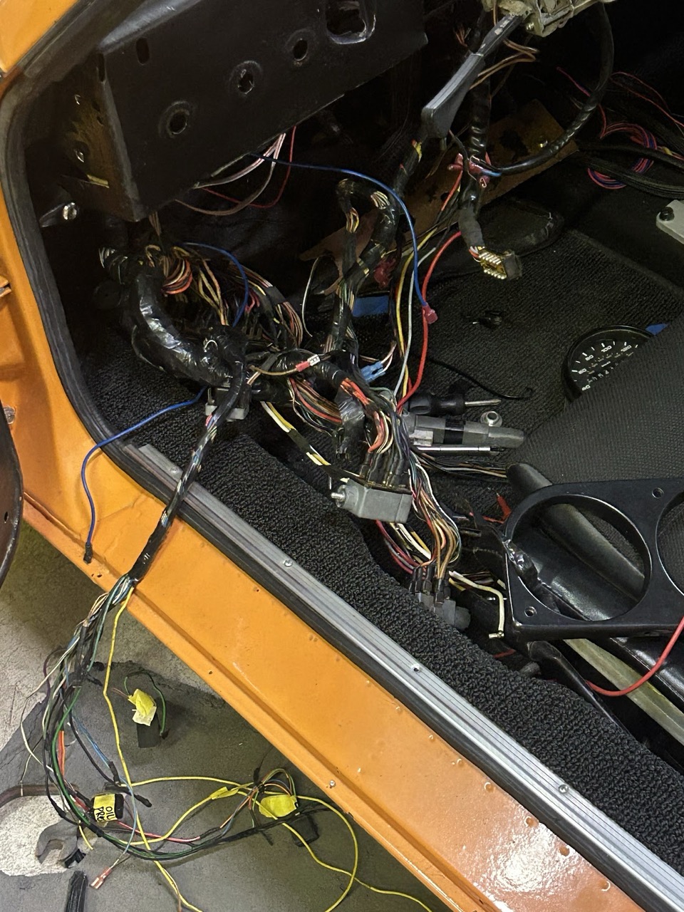 Everytime I Martin Mid-Engine makes an update on the Google-photos album they shared with me - I have a good day. Sharing with the group a few of the latest photos out of Oregon. With this update, the harness is 'wrapped' and focus moves to other areas of the car after the clean-up; Retesting the headlight motors, turn signals and lights, gauges and so on. As well, very grateful for this experience and expertise as the focus begins to center around the more-critical components like suspension, windshield and bumpers. Oh yeah, and I had a 'rip' in the dash-pad (IMG:style_emoticons/default/wacko.gif) Not to worry, new vinyl as well as dash-face vinyl.