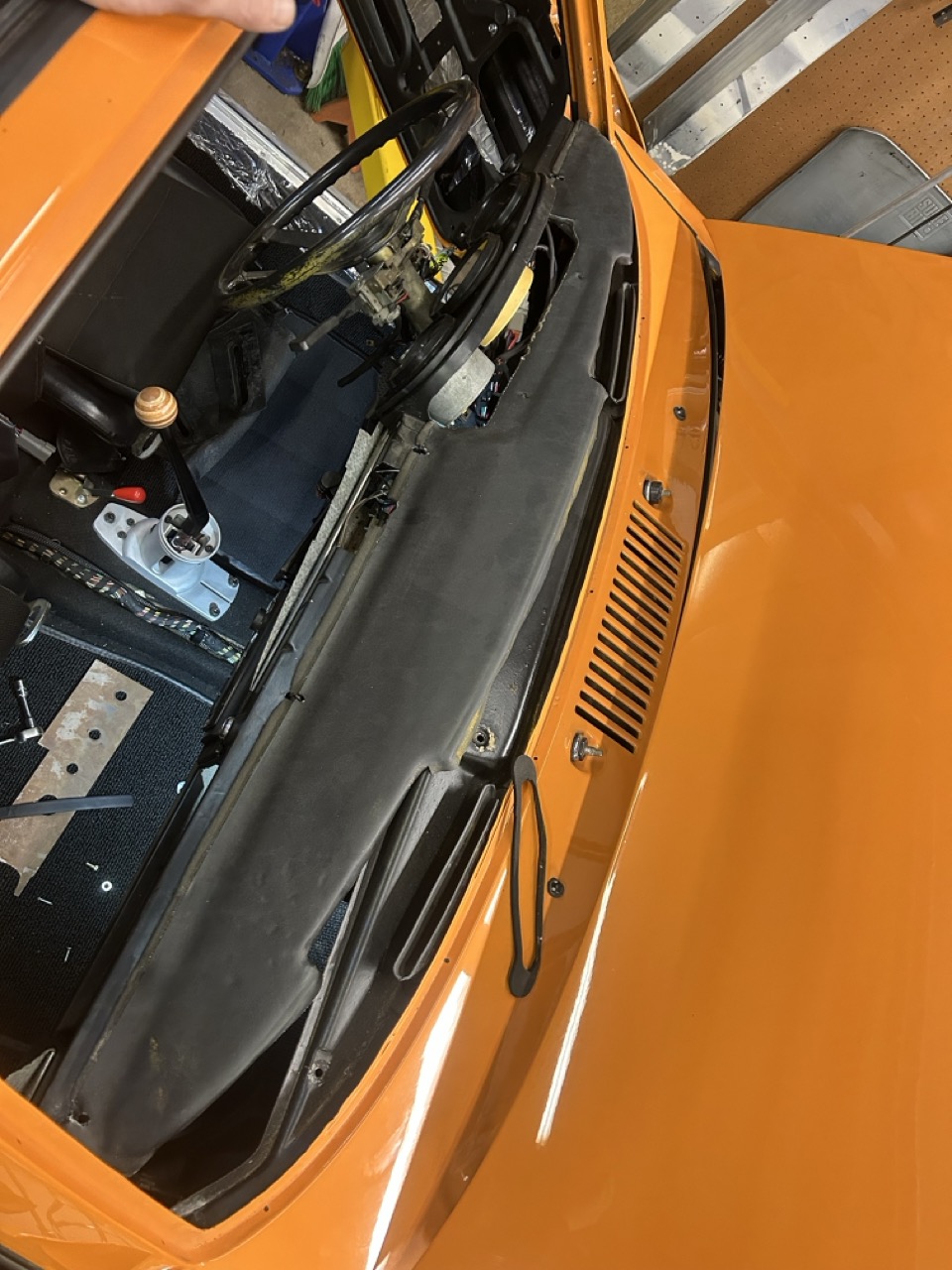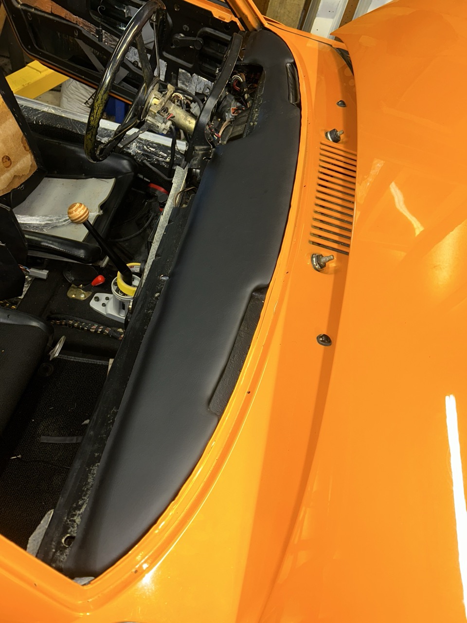 Old-dash / New-dash Old face-plates / New face-plates Sans windshield / New Windshield (IMG:style_emoticons/default/bye1.gif) What is the black on the pinch weld? Primer? Flattened butyl? |