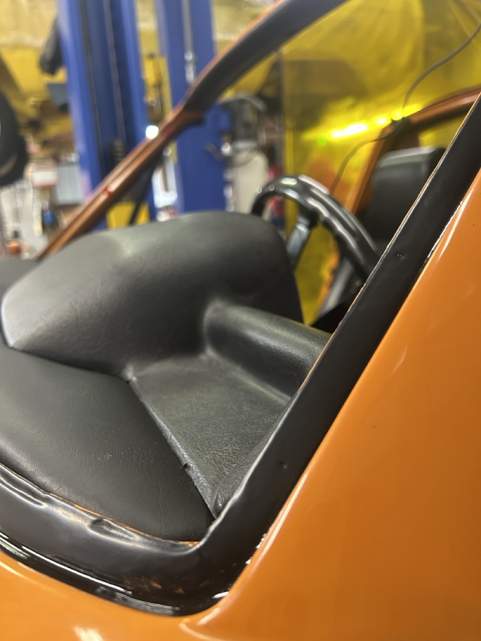 While these are small-rays of happiness, they sustain me until the next. Getting very close now, hoping everyone enjoys the photos as much as I do. For now, this post is all about interior shots and the very-nice workmanship going into the project. As well, including progress photos showing the height and wheel adjustment. I believe I mentioned it previously, though I did not like the way the wheels turned out (lighter than I wanted), though seeing them on the car and in the light.... I suppose I can wait a bit before painting them. They are certainly growing on me. Speaking with Ben earlier, we are in the home-stretch - more photos to follow. (IMG:style_emoticons/default/bye1.gif) |