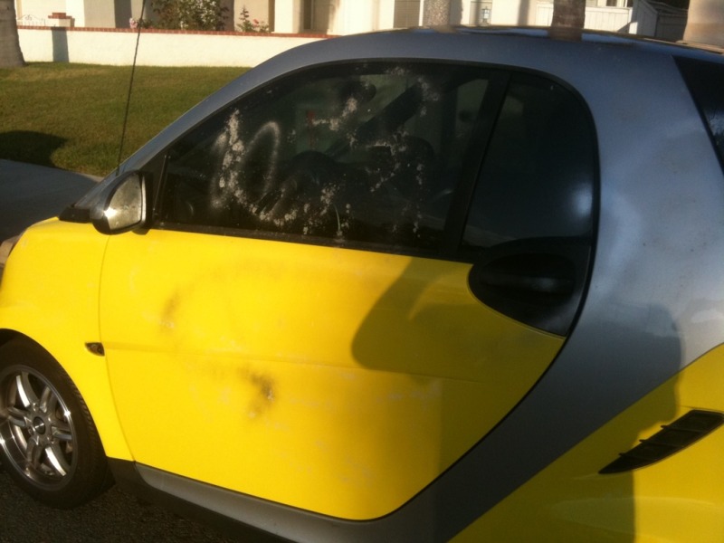 After our cars were vandalized last week, we put up security cameras that cover the entire house, and 1 of 2 entries to our neighborhood. At about 4am, you see a lifted truck pull up and park across the street, and about 3 seconds later, an SUV pulls up. After that, you see 3-4 guys saunter over and proceed to spray paint the hell out of the Smart car. No rush at all, and they even sit around by the cars for a few minutes shooting the breeze. After they tagged our Car, the Cops picked them up egging a house about 15 minutes later, and didn't catch on that they had been doing this and spray painting other cars. they took down their information, and released them to their parents. Fast forward to 10am the next morning when we see the car, call the cops, and see the video. We also found a receipt from Wal-Mart from Midnight, all crumpled up, showing someone purchasing spray paint, 5 dozen eggs, masks, eggs, etc. The Cops take the receipt, the video, information, and our case number from LAST week, as it's pretty obvious from the video that they where specifically targeting us. As of yet, the kids have only been cited for throwing eggs at cars, however, the evidence technician (CSI) has our tape, the Wal-Mart cashiers tape, and the Wal-Mart parking lot tape that show the same suspects in the same cars. Furthermore, the CSI has checked the tapes from Wal-Mart from last week, and it just so happens that the group was there as well. So as of right now, they are getting all the evidence together and getting ready to bring a case against these guys. Turns out, anything over $400.00 damage is a Felony offense, so in the mean time, we have to gather all our receipts for a 914 interior and door respray, new panels and body work on a Smart car, a new Ferrari hood and paint, and garage door damage. In the end, I'm glad they caught the guys, but ti's just another pain-in-the-ass to deal with. |