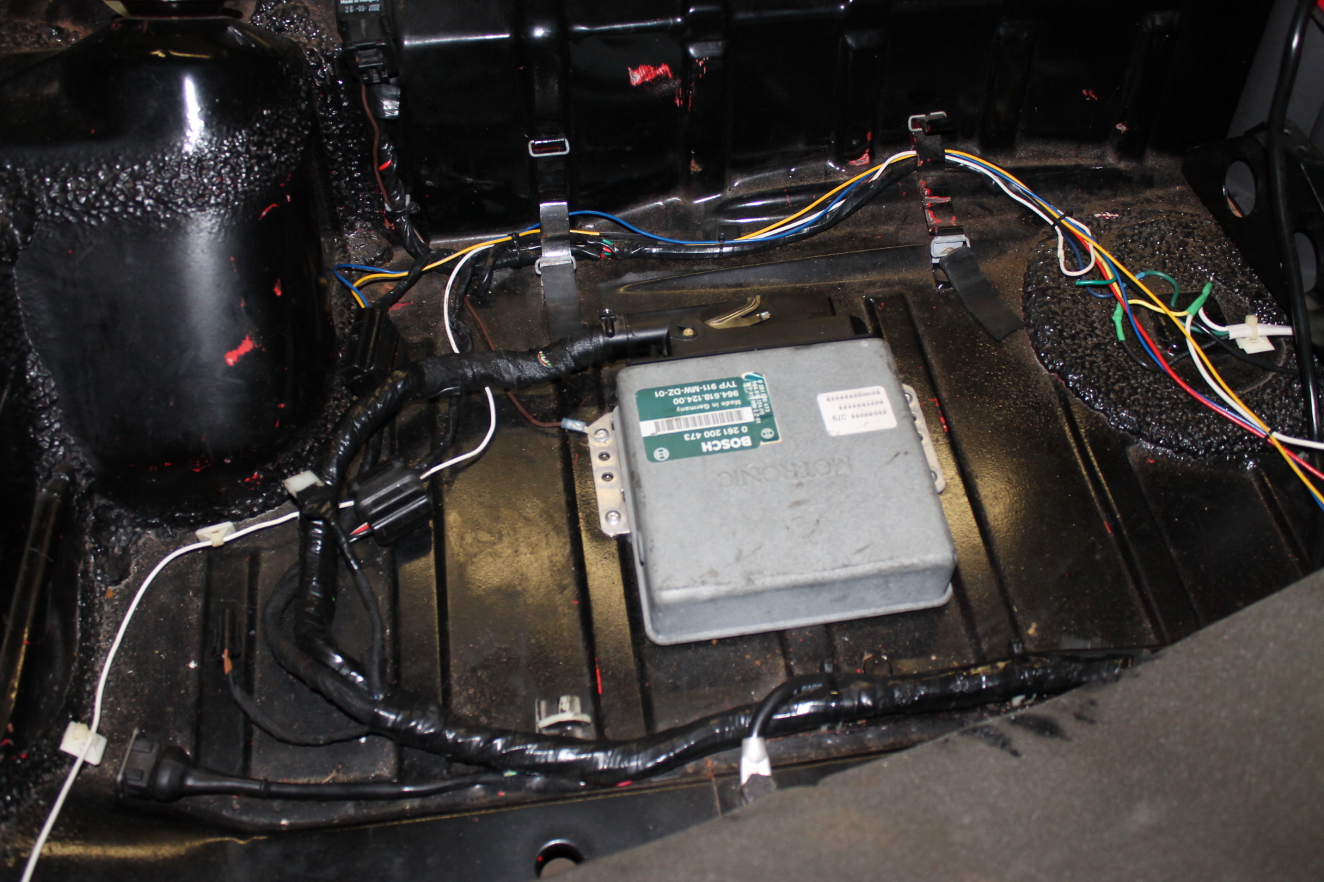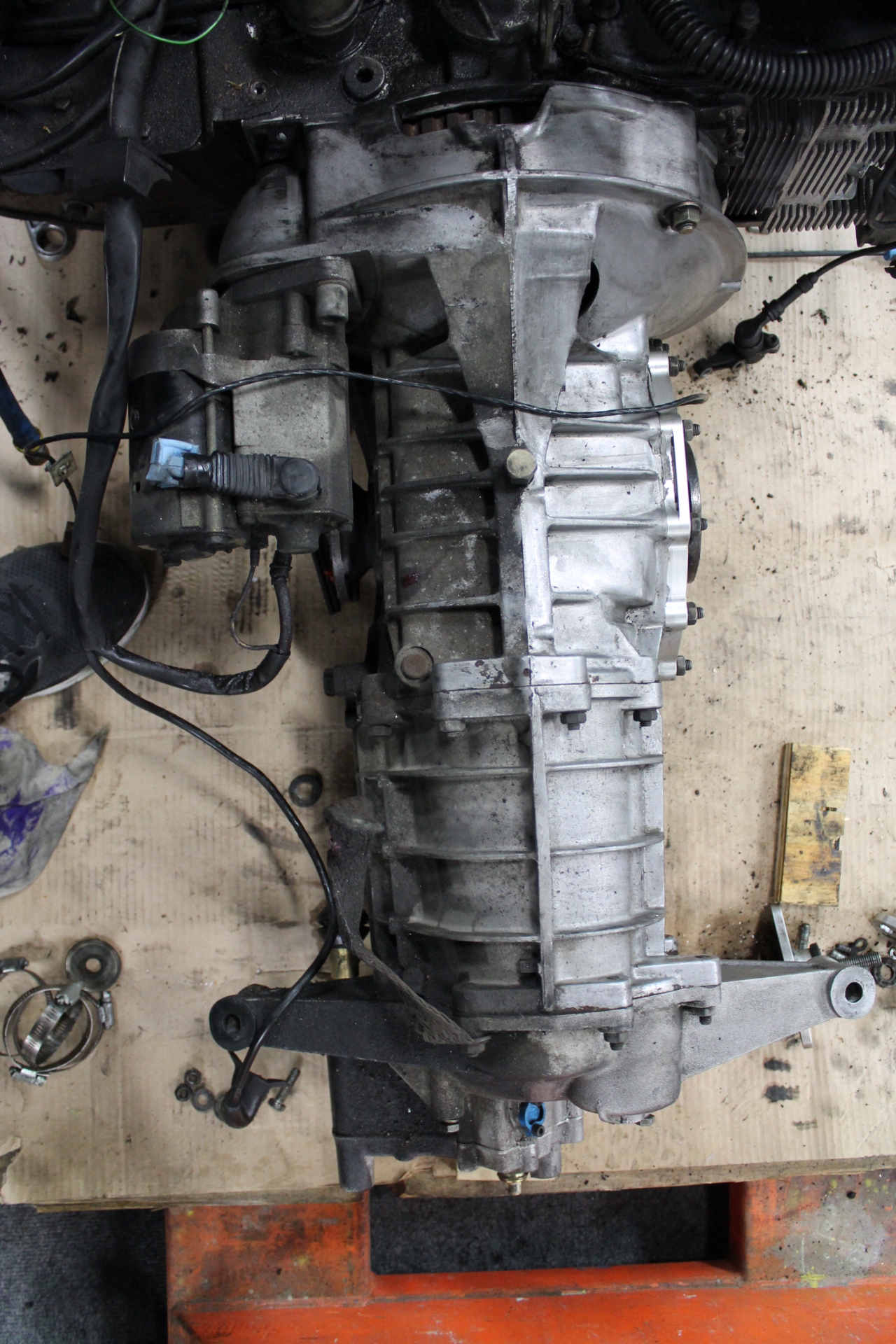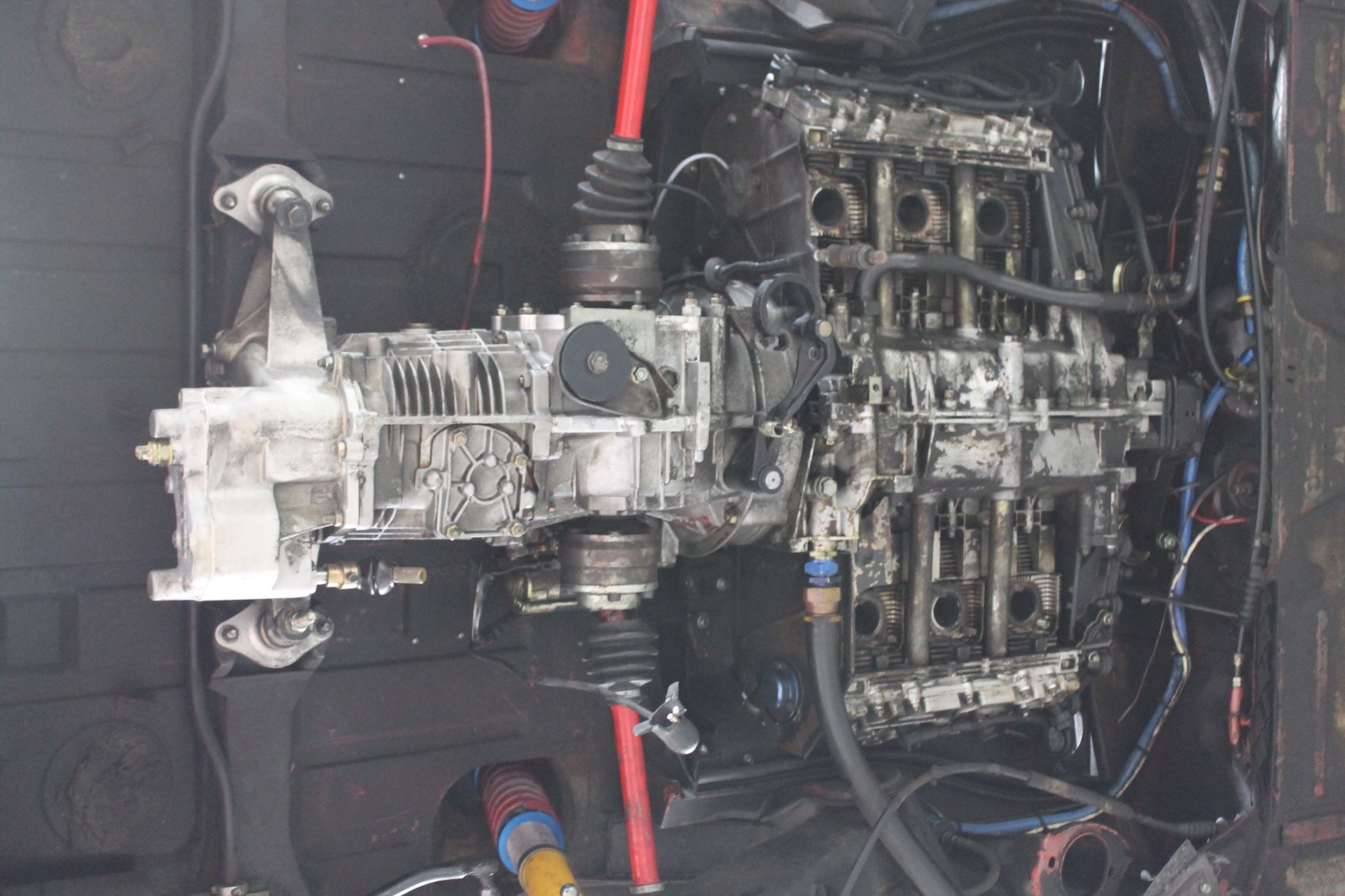 External breathers are necessary, unless you can run the engine breather line to the oil tank. Since you are changing to a stock 6 oil tank, the line from the center of the engine goes to the tank. Another breather line from the tank, generally went to the airbox on a CIS motor. I'm not sure if the same type of setup was used on the 3.6. Since the engine develops internal pressure (blow-by), the crankcase & oil tank must be vented .. whether to the intake of the engine or an external breather/catch-can. And the VAF in the picture is upside down. Richness or leanness of the fuel mixture is determined by the ECU. The VAF measures the airflow to the engine and sends the signal to the brain that determines the length of pulse to the injectors. The distance from the VAF to the engine shouldn't make a tremendous difference ... it's only air. Un-metered air after the VAF (intake leaks) will adversely effect mixture. Awesome Ron, I will be running a stock /6 tank, so I'm going to do exactly that. Connect the line from the center of the engine to the stock tank, and then the other to one of the breathers. Essentially, if I can eliminate one of the three breathers, I'm very happy. Now, it still remains to be seen if all this can be done, because it all depends on whether or not I can get rid of the modified tank up front. Furthermore, I'm not sure what the blue canister with the silver top in this photo is? It does have a lead to it, maybe a sensor of some kind? |