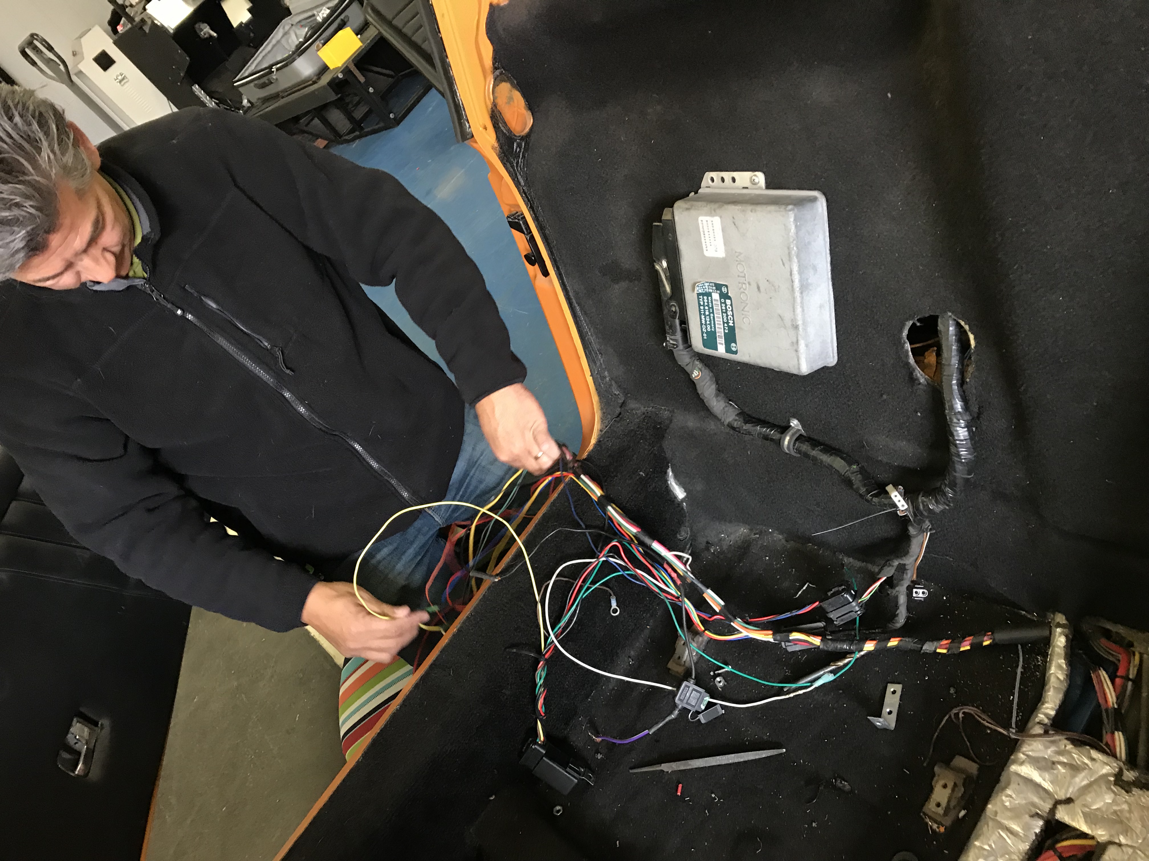 Nice to have you back That is a lot wiring to get your head wrapped around! Glad to see forward progress. Thanks guys. Not updating as much, but still trying to get in a few hours everyday. My new goal is to have the car done for Rennsport in September. For reference, the below pictures show the wiring and car from which the 3.6 came. Our biggest challenge so far is integrating it into the stock 70' harness in not only a 'clean and hidden' way, but also one that is pretty easy to access is there are any future upgrades. I'km thinking the amp / sound equipment will also go in this area, but thats secondary once the car is running. I was originally going to take a similar approach to the following photos; putting the relays, 12v point, ECU, etc. there. After looking through a bunch of builds, blogs and progress threads, professional and otherwise, it seems as though under / behind the passenger seat is the preferred place. ![]() ![]() ![]() |