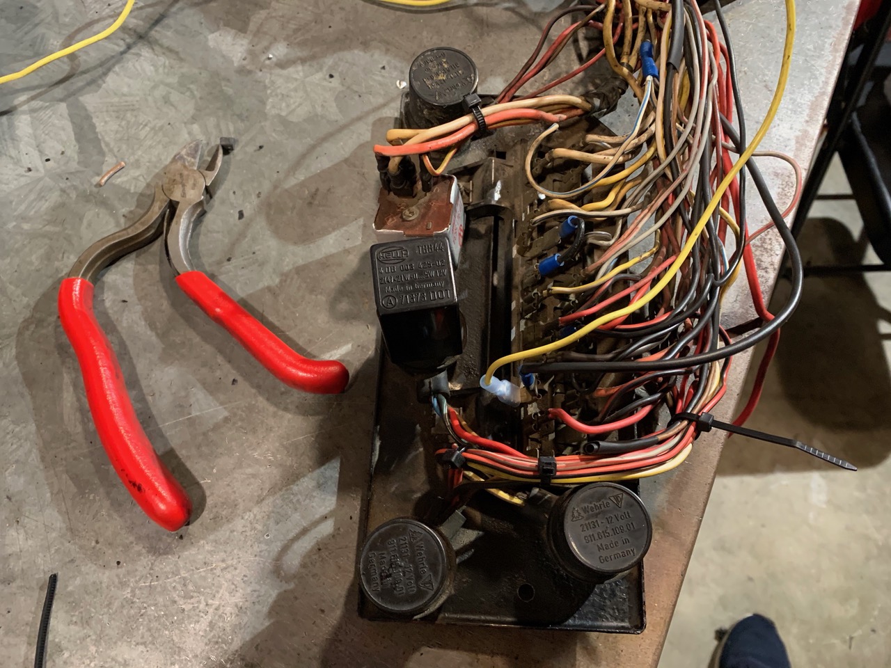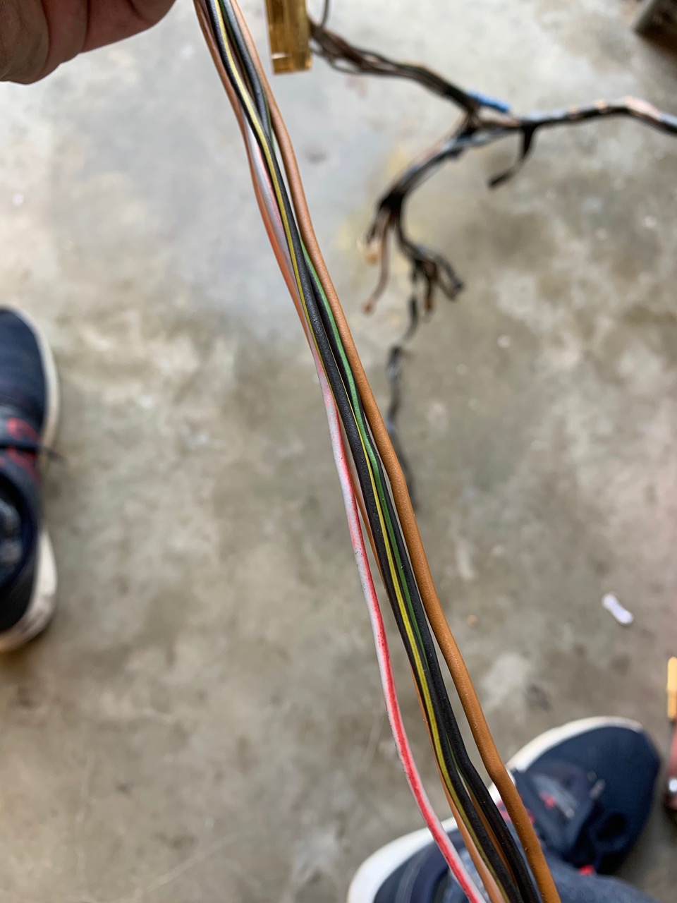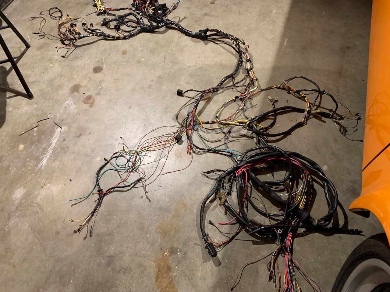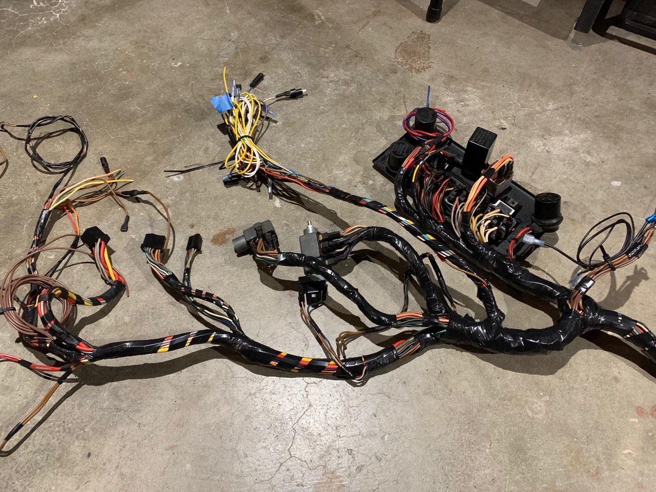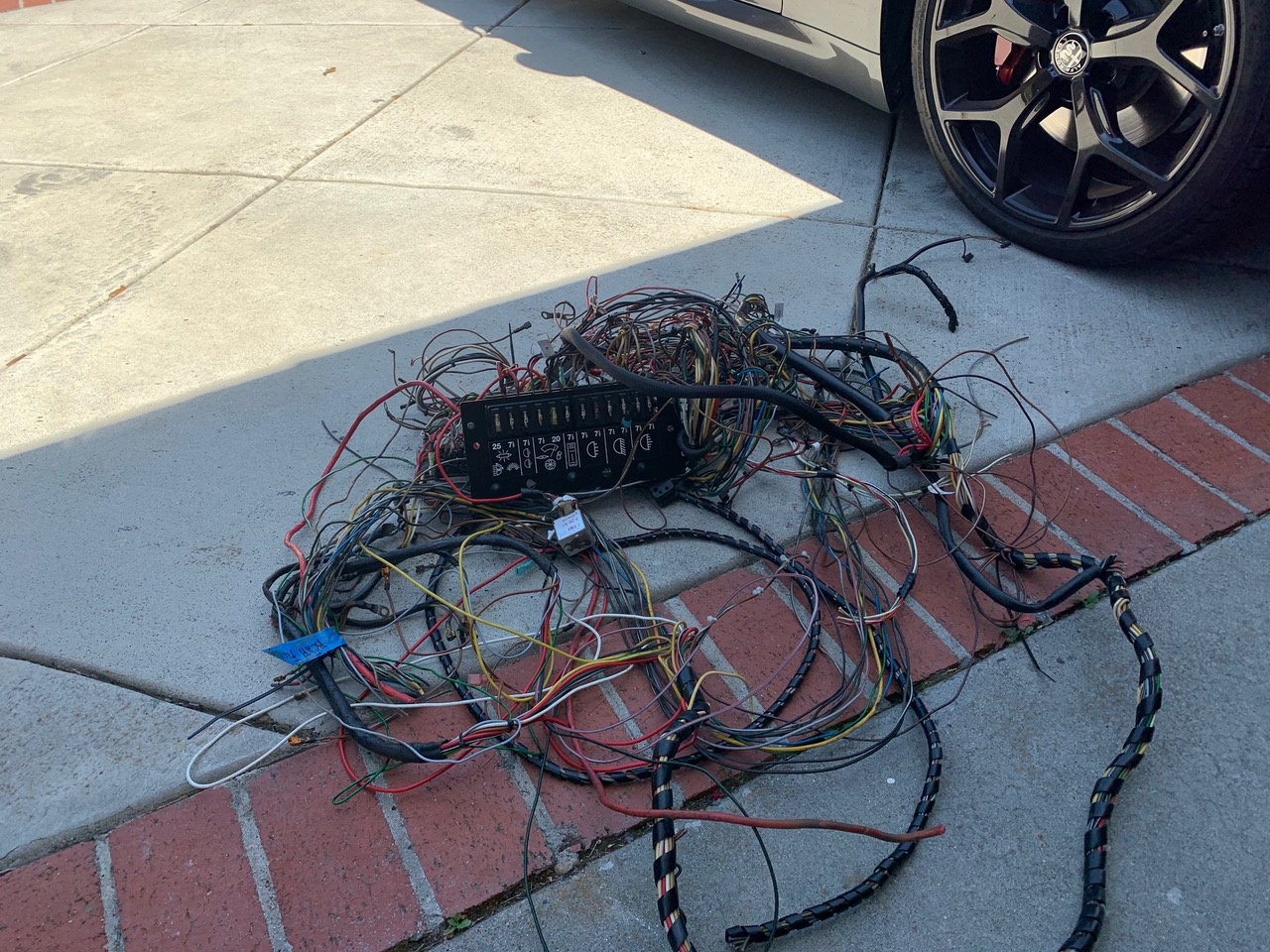 For all of you dealing with a wiring 'rats nest' where you don't even know where to start, find a car with an acceptable harness, and dig in. Rip it out, put it in your car, and move on. Learn from my mistake. This one cost me several years, and much frustration. ![]() While intimidating, this only took about 3-4 hours to remove. An additional 3-4 sessions of 2-3 hours were spent cleaning and sorting wires, re-soldering and re-taping. While not completely done (going with cloth tape or safety sheathing in the front/rear trunks), this is finally at the point I can pull pout the existing harness and start running this on my own, and testing devices. |