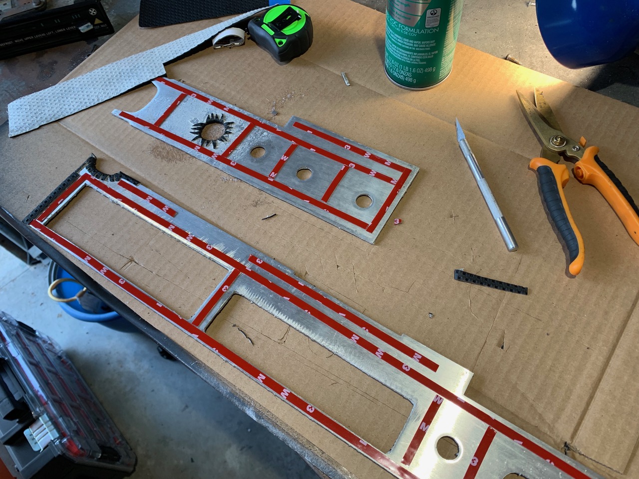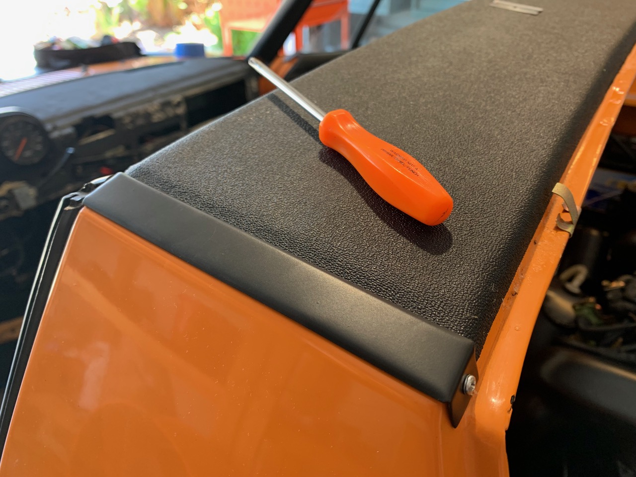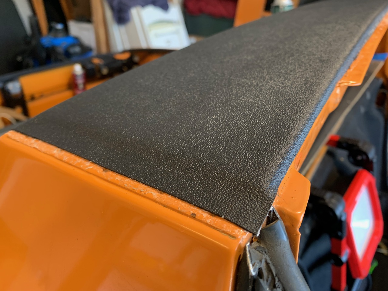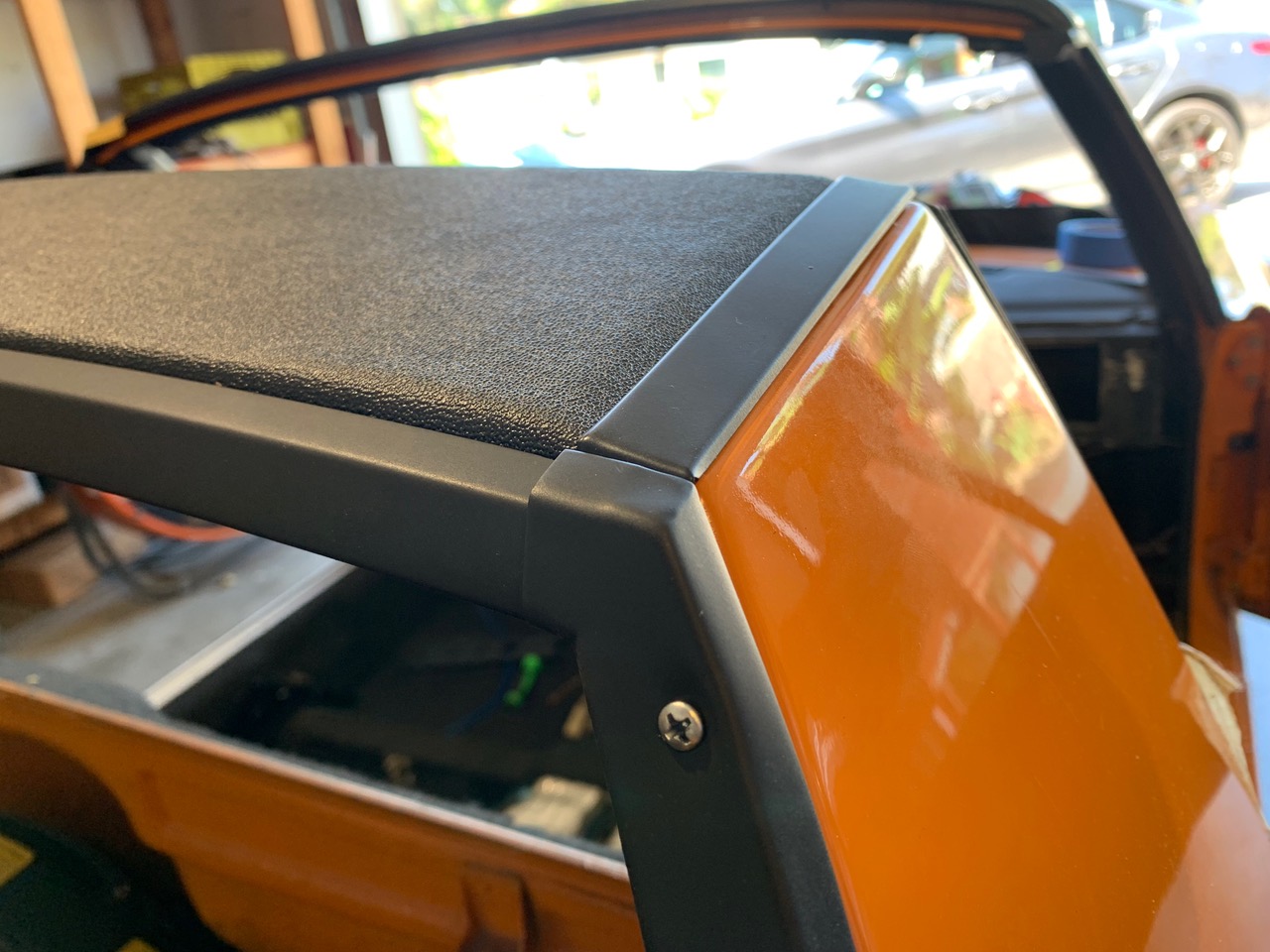 My most recent work, the roll-bar vinyl and trim. I'm doing a short summary write-up on this for those out there that also have this on their 'to-do' list, as it is not necessarily 'difficult', though it can go wrong in a hurry, be very frustrating, cost-time, and be demoralizing. If you're interested or planning to do the same; Before you go any further read this write-up done by Eric Shea Sail Panel Vinyl Installation. Have you read it? Good, now read it again. After reading, you'll be familiar with the general process and have an idea of all the supplies needed. As a note, 914Rubber stocks the vinyl material and I recommend using 3M-90 spray adhesive. It's forgiving and easy to use.