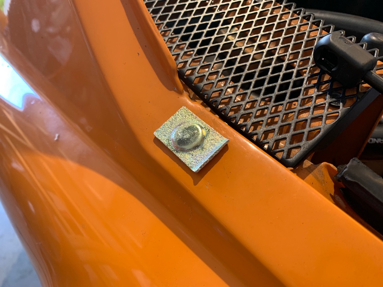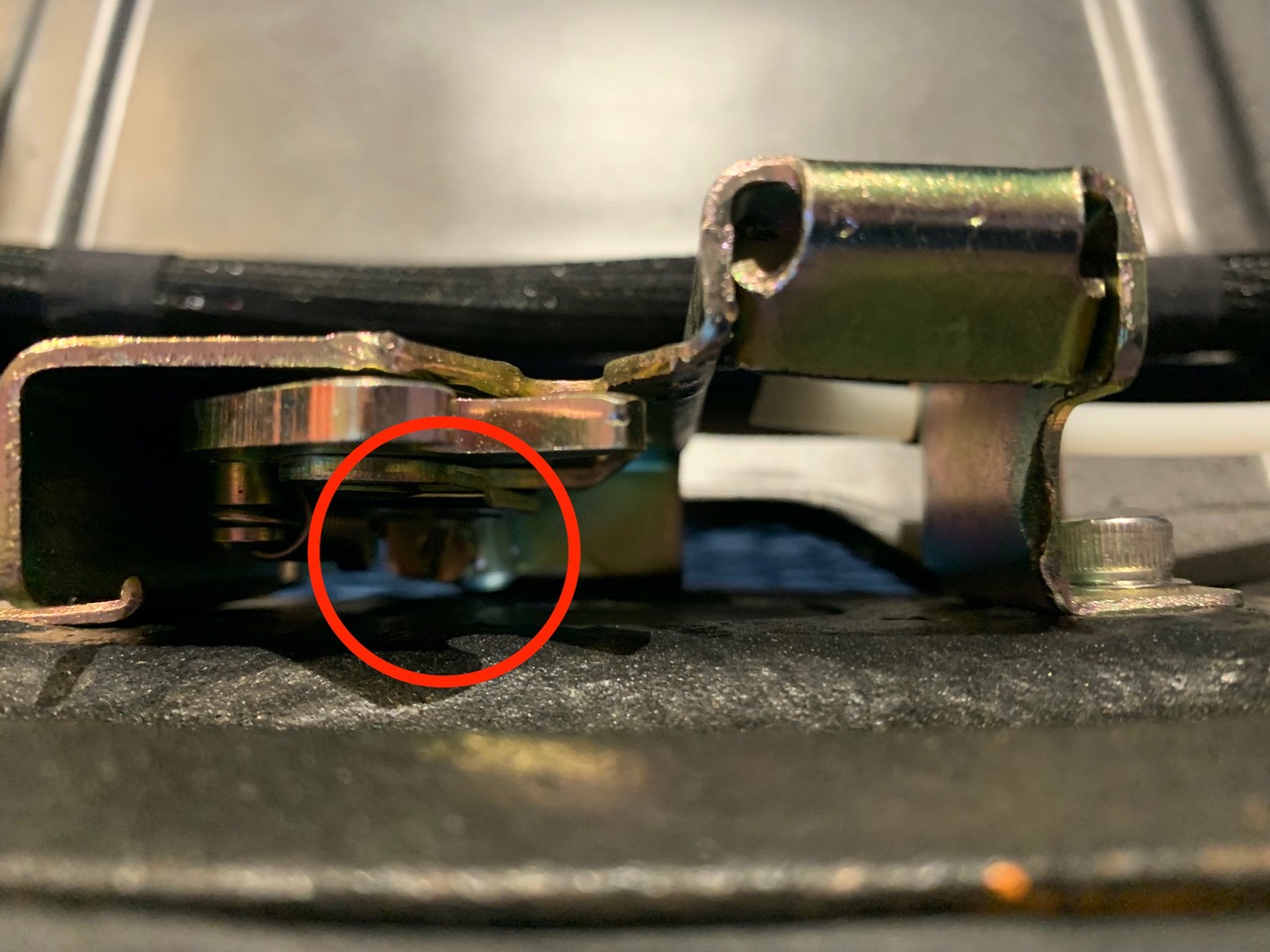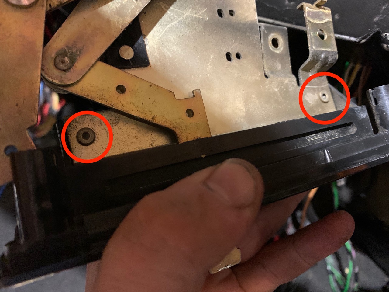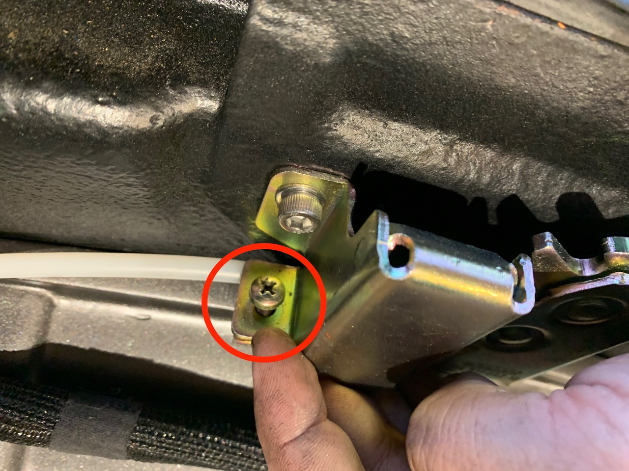 For the first step, I don't have a picture, you need to make sure you can access the bottom of the handle to remove 1x flat-head screw (you'll see it in the last-photo). This means you might have to remove your speaker-grilles or anything blocking the bottom of the handle. It's pretty short, and only needs a few turns. Next, move to the front trunk and loosen the bolt that holds down the pull-wire, located inside the mechanism that locks the front-trunk. Straightedges the wire a bit, as much as you can, so it won't 'drag' inside the wire guide. Next, loosen the Phillips-screw that holds the wire-guide on the outside of that same mechanism. Now, move to pull the handle out of the slot. You only need to pull it out about 6-8 inches. From here, you'll notice that the handle is 'theaded' onto the release wire. Note more-or-less where it is so you don't have to re-adjust when you install the handle. All you need to do is rotate it a few-times, and it will disconnect. In the last photo, you can see the screw from the first step. (IMG:style_emoticons/default/bye1.gif) |